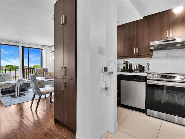 Bienvenue à la «Villa du Golf», une copropriété qui est adossée au Club Golf Saint-Lambert et bénéficie d'un emplacement paisible à proximité des services, écoles et transports vers Montréal. Située au 5e étage, l'unité offre une aire de vie lumineuse grâce à une grande porte-fenêtre menant à une terrasse avec vue panoramique. Cuisine rénovée avec comptoir-lunch, salon de bonnes dimensions, chambre spacieuse avec garde-robe double, salle de bain avec bain-douche et espace laveuse-sécheuse dissimulé. Garage intérieur (#18), rangement à vélos, immeuble en béton avec excellente insonorisation, caméras de sécurité et deux ascenseurs. (55275220)