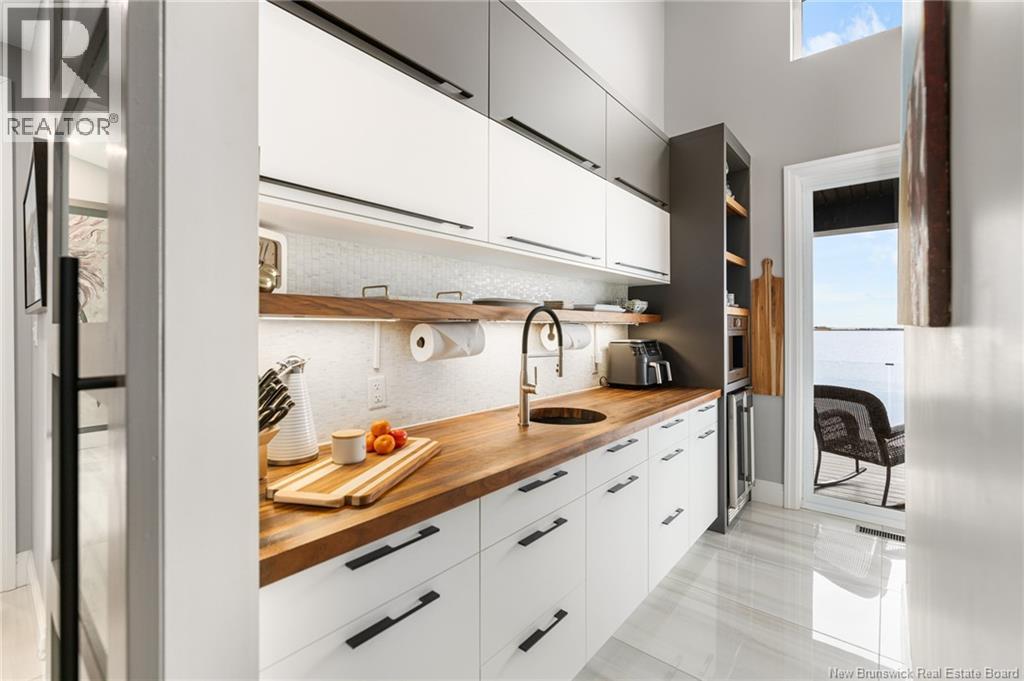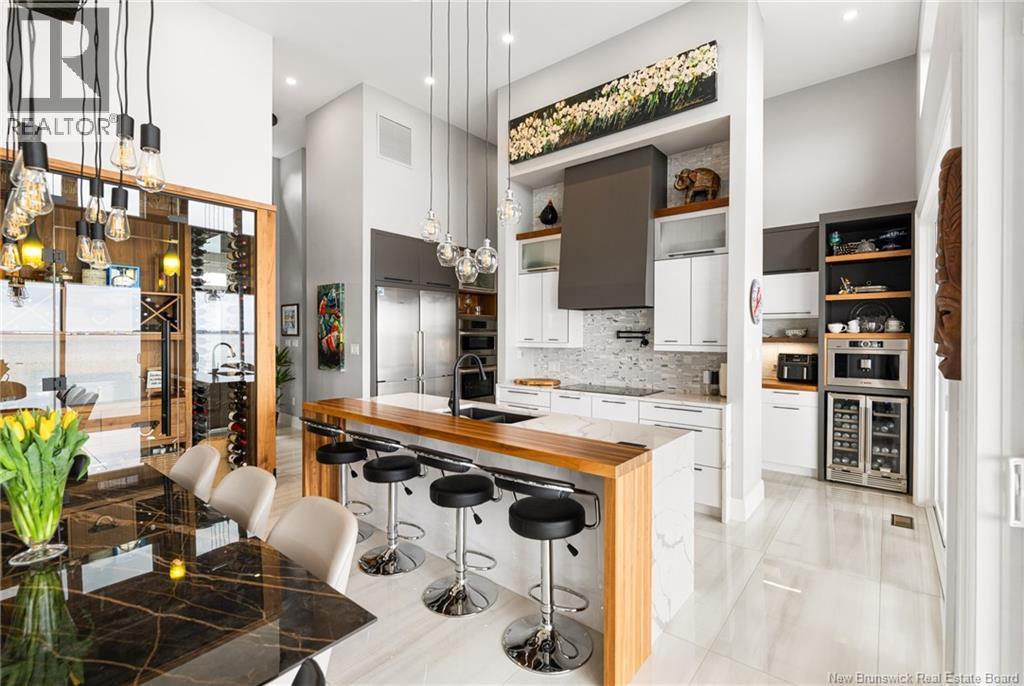 This stunning waterfront home is located in one of Shediacs most sought-after areas. Situated on a quiet cul-de-sac next to a bird sanctuary, it offers breathtaking views of the Bay of Shediac with incredible sunrises and sunsets. With over 4,000 sq. ft. of beautifully finished living space, this custom-built coastal home blends elegance, comfort, and functionality. Step into the grand foyer and enjoy refined finishes, including porcelain tile flooring throughout the main level, a custom walk-in wine cellar, and a chefs kitchen with bespoke cabinetry and a walk-in pantry. Sunlight pours in through oversized windows and glass doors, showcasing water views from every room. Soaring ceilings Through-out the home, a sleek fireplace in the living room, and a sunroom with a wood stove add warmth and charm. The primary suite is a true retreat with a sun-filled terrace, walk-in closet, and spa-like ensuite featuring a soaking tub and dual vanities. Three spacious bedrooms and 2 full baths and powder room on the main floor, with a fourth bedroom and ensuite on the lower level. Enjoy the extra-large heated 2.5-car garage, a large composite deck with seamless glass railing, hot tub, and private steps to the shoreperfect for kayaking, paddle boarding, or simply relaxing by the sea. This Modern Home feels like it's sitting on its own island. Don't miss this rare opportunity to call this house in Shediac yours. (29451036)