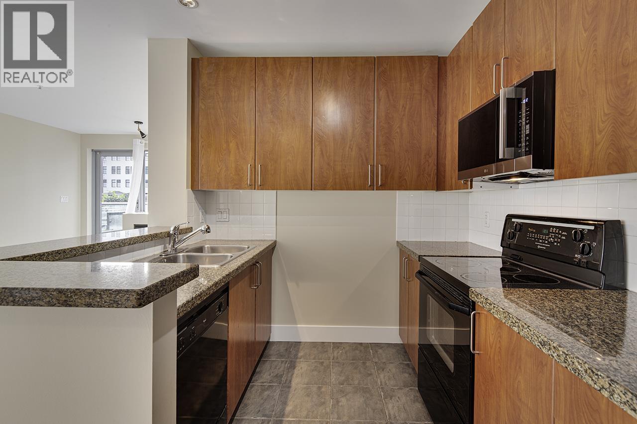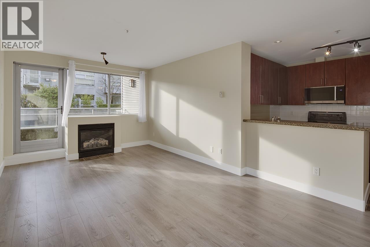 Welcome to this fabulous 2-bedroom, 2 full bathroom condo at Outlook. On the cooler, quiet S/E corner with only 1 common wall. The kitchen has granite counters, new microwave hood fan and lots of cabinets that extend to the full 8´3 ceiling height. The spacious living and dining area has a gas F/P and opens to a 73 sq. ft. south facing balcony with plenty of room for your furniture and BBQ. The large den has room for storage and home office. Immaculate, move-in ready with new quality laminate flooring and freshly painted throughout. One parking spot (locker & 2nd parking for rent). Your dog or cat are welcome. Well managed, boutique, concrete building in a great location by the new Arbutus Subway station with coffee shops, restaurants and stores outside your door. Open House Saturday Feb 7th 2-4PM. (32404015)