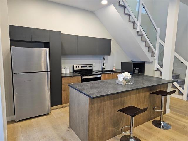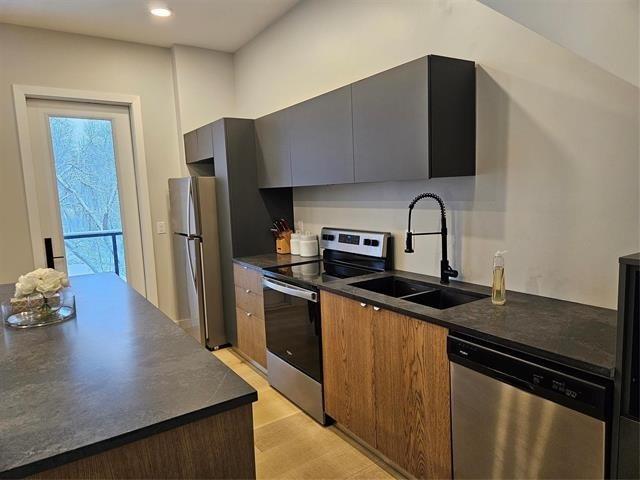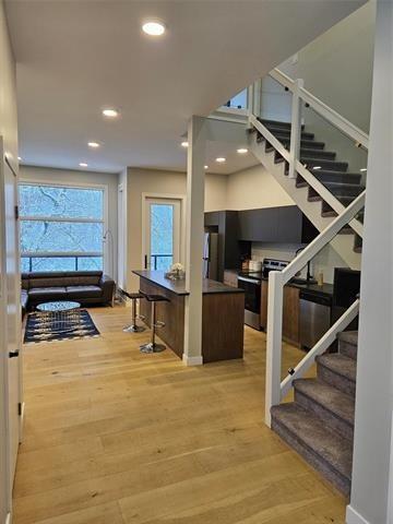 2D//Winnipeg/Riverfront! Modern open-concept 3-bedroom, 2.5-bath home with two balconies offering breathtaking views of the river and a golf course. The stunning main floor features an open layout with the living room, custom Italian kitchen by M-Concept .The custom dual-tone kitchen boasts quartz countertops and stainless-steel appliances. High-end finishes include beautiful engineered hardwood flooring and large porcelain tiles throughout. Master bedroom overlooking the Seine River, Custom tile shower plus a walkout balconies to enjoy the lush greenery. The home has 9-foot ceilings and a gorgeous glass staircase leading to the owner's suite, which has its own deck access and a full ensuite. A cozy reading nook with massive windows and an abundance of mature trees complete this picturesque property. (231919964)