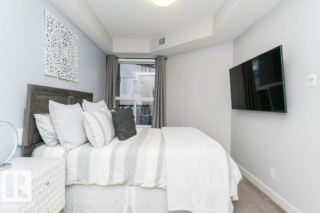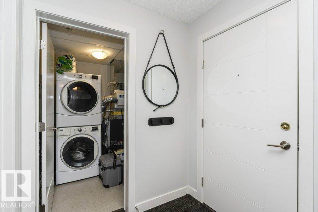 Lovely, show home condition 2 bedroom, 2 full bathroom condo in amazing location. 1 block from 124 street & Unity Square shopping + 4 minute walk to future 124 ST LRT station! Perfect for anyone looking for convenient central living in a modern building with great proximity to amenities. FULLY UPGRADED, featuring A/C, underground parking, hardwood flooring, granite counters throughout, & stainless-steel appliances. Best parking in the complex w/ HUGE tandem heated underground stall providing TWO full parking spots. Open concept living with spacious kitchen & huge island & pantry. Master bedroom easily fits a king bed & features large his & her closets with custom closet organizer. Both the ENSUITE & 2ND BATHROOM are FULL baths, each with 6 ft of counter space. Second bedroom is perfect for an office, nursery, or guest bedroom. In-suite laundry room w/ storage space & private balcony w/ gas connection complete this home. Awesome rooftop patio for residents to enjoy the sunny summer days. COME SEE! (33790173)