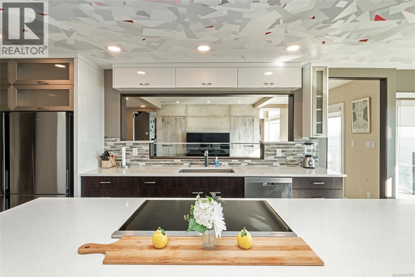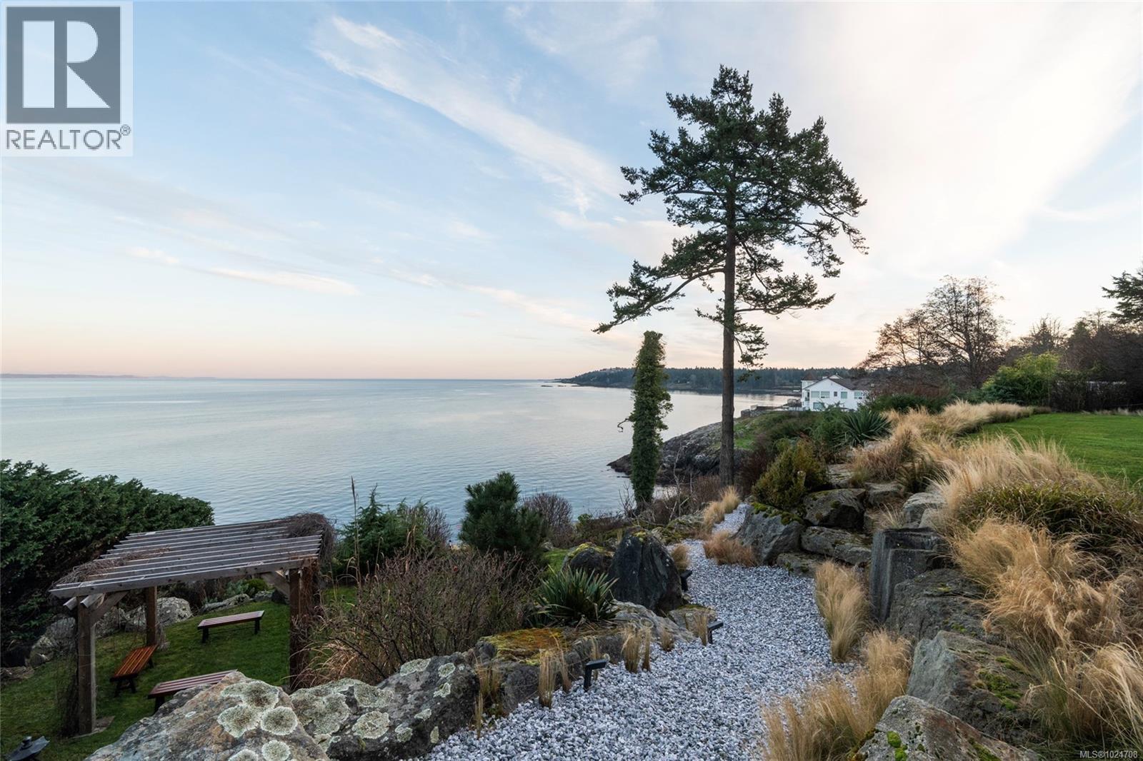 Set on 1.15 acres of private, low-bank oceanfront, this gated Saanich estate offers an extraordinary combination of scale, privacy, and immersive coastal living. A secure entrance welcomes you with manicured landscaping and a cascading waterfall, creating a serene arrival and tranquil soundscape throughout the home. Inside, the residence is filled with natural light, featuring floor-to-ceiling windows that frame sweeping ocean views from nearly every principal room. The home offers eight bedrooms and seven bathrooms, including a spacious primary suite with large windows overlooking the water and a spa-inspired ensuite complete with a jetted tub. The thoughtfully designed kitchen features quartz countertops, modern appliances, a built-in pantry, and multiple gathering spaces, including a breakfast bar with ocean views and a breakfast nook set beside the waterfall. A formal dining area also overlooks the water, ideal for entertaining. The main level includes a nanny or guest suite with separate entrance, while the lower level offers a media area, sauna, and indoor hot tub. Multiple balconies and outdoor sitting areas are positioned throughout the property to take in the views, including a unique oceanfront landing pad and patio perched above the water—perfect for whale watching. Private stairs lead directly to the shoreline, offering easy access for kayaking, paddleboarding, or enjoying the oceanfront lifestyle. The grounds are beautifully landscaped with mature plantings, pathways, and a gazebo, creating a peaceful, park-like setting. A rare offering where privacy, nature, and refined coastal living come together in one of Saanich’s most desirable waterfront locations. (30342983)