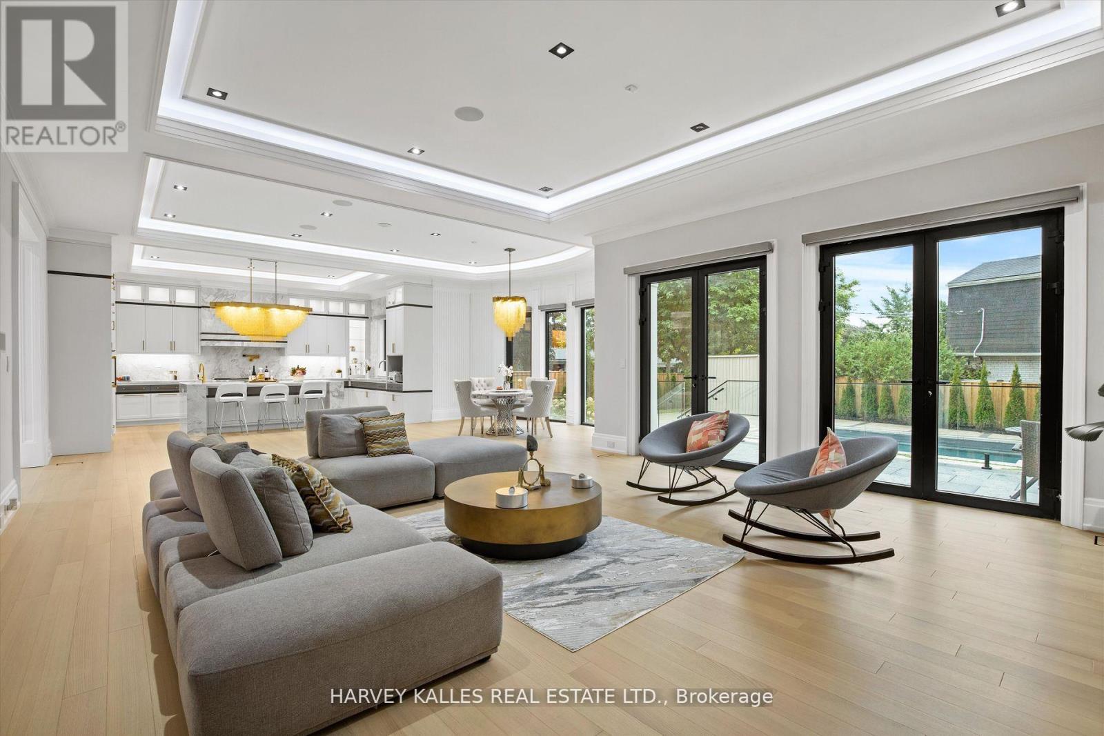 Exceptional opportunity in the prestigious St. Andrew-Windfields enclave! This newly built masterpiece offers over 6,000 sq.ft. above grade of refined living with soaring ceilings, elegant finishes, and abundant natural light throughout. The main floor features a grand foyer, glass staircase, and open-concept layout with a chef's kitchen, oversized island, butler's pantry, high-end appliances, and a family room with walkout to a south-facing yard and inground salt-water pool. Upstairs, a private office and 4 bedrooms each with ensuite, including a lavish primary suite with 7-pc spa ensuite, heated floors, and custom dressing room. The lower level offers radiant heated floors, rec room, theatre, 1 guest suites, gym, and sauna. Additional highlights: heated driveway, walkway & porch, elevator, home automation, and heated bathroom floors. Ideally situated near top schools Harrison P.S., Windfields JHS, York Mills C.I. as well as The Granite Club, Donalda Club, Bayview Village, and major highways. (42071915)