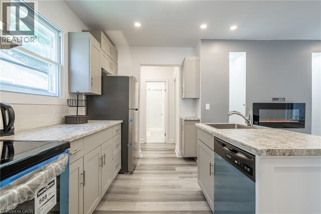 Welcome to 90 Margery Road, a beautifully renovated two-storey home in the heart of Welland, offering exceptional flexibility for homeowners and investors alike. Extensively updated in 2022, this property features both modern cosmetic upgrades and major big-ticket improvements, including enhanced insulation, new shingles, plumbing, and electrical. This 4-bedroom, 2-bathroom home offers a bright open-concept main floor with updated flooring, pot lights, custom blinds, and abundant natural light. The modern kitchen features premium countertops, white subway tile backsplash, sleek grey cabinetry, stainless steel appliances, and a functional island with a large sink. A formal dining area with an electric fireplace flows into the spacious living room, ideal for entertaining. The main floor includes a bedroom with built-in wardrobe and semi-ensuite access to a 3-piece bathroom with glass walk-in shower, offering in-law or secondary suite potential. Upstairs features three generous bedrooms, a second 3-piece bathroom, and a roughed-in kitchen, creating the opportunity to convert to a duplex or independent rental unit. Situated on a large lot with a covered front porch, private backyard, and one parking space. Conveniently located near schools, the Welland Canal, Highway 406, and Seaway Mall—perfect for first-time buyers, families, or investors seeking modern living with income potential. (70120388)