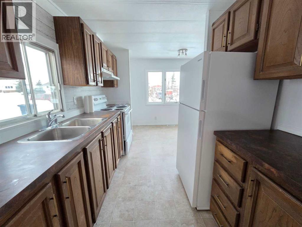 This lovely mobile home is ideally located just steps from the school in Clairmont and has been freshly painted, making it truly move-in ready. A large porch addition provides extra living space, while the functional kitchen and spacious living area create a comfortable layout. The home offers three bedrooms and a good-sized full bathroom.Outside, you’ll find a fully fenced yard complete with a deck—perfect for BBQs and relaxing. Numerous updates have been completed over the past 5 years , including the roof resealed (2025), new interior paint (2025), new heat tape under the home (2025), home re-levelled on its blocks (2025), new washing machine (2025), refrigerator (2022), new fencing (2022), new furnace (2021), and new hot water tank (2021). (31601904)