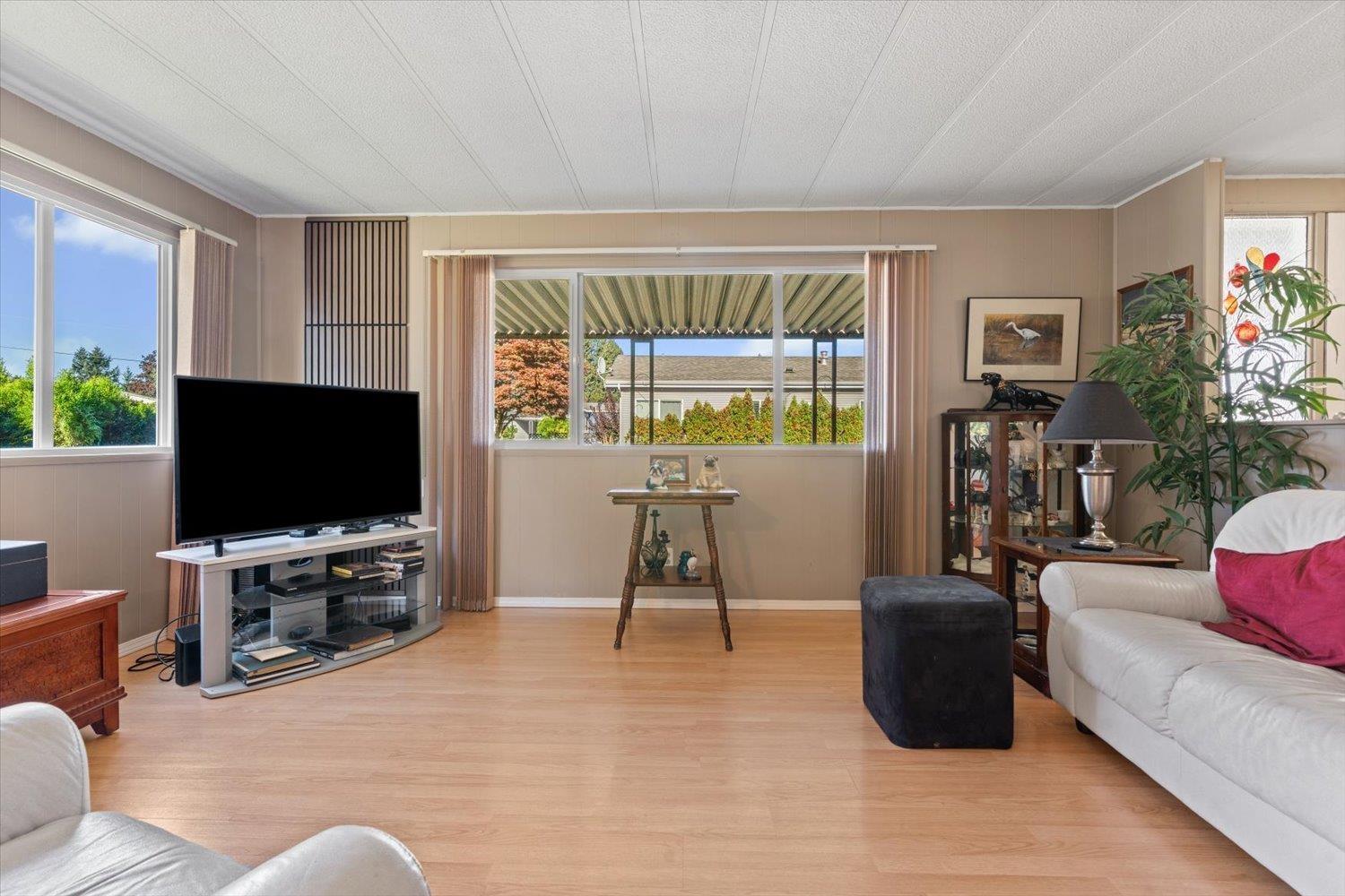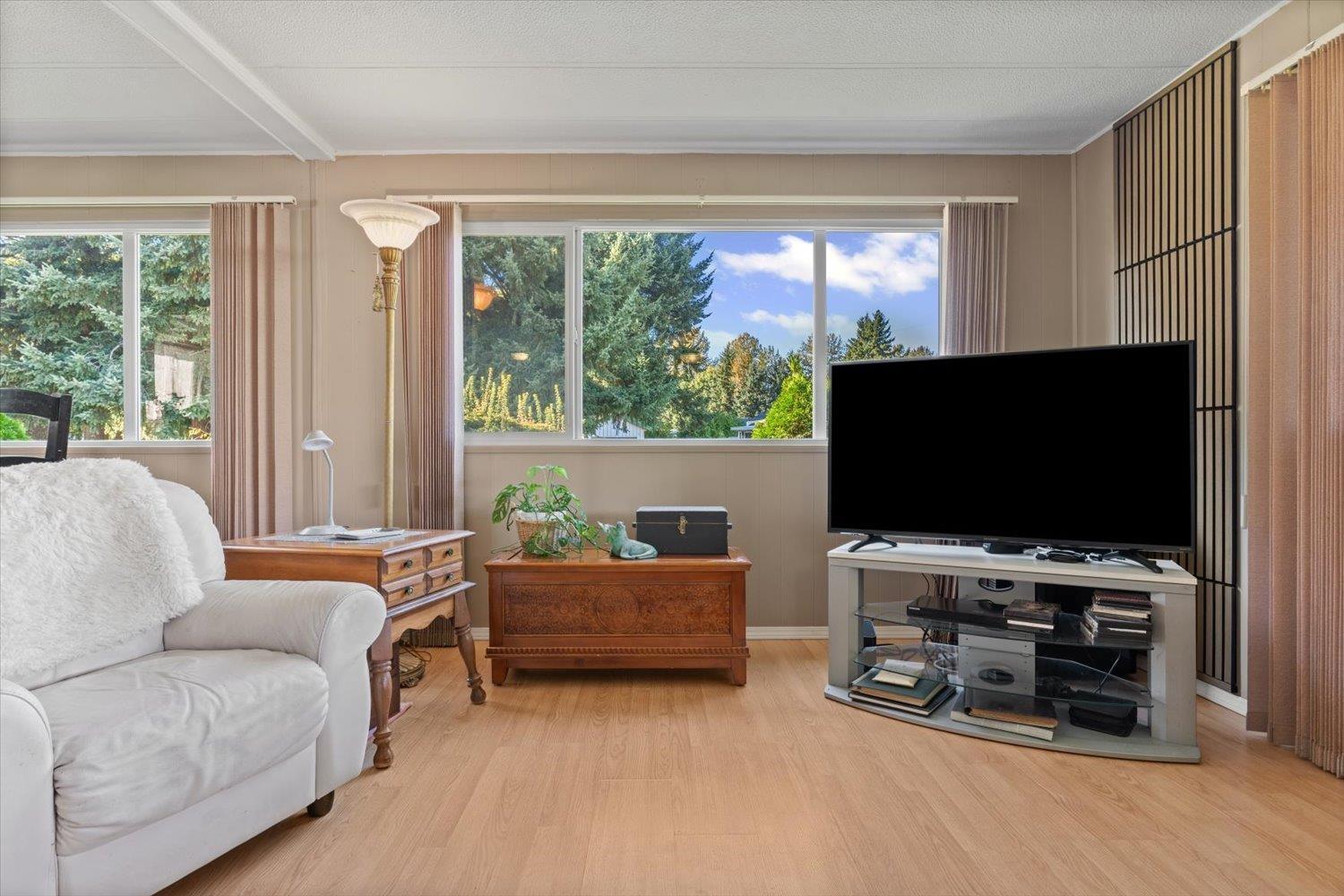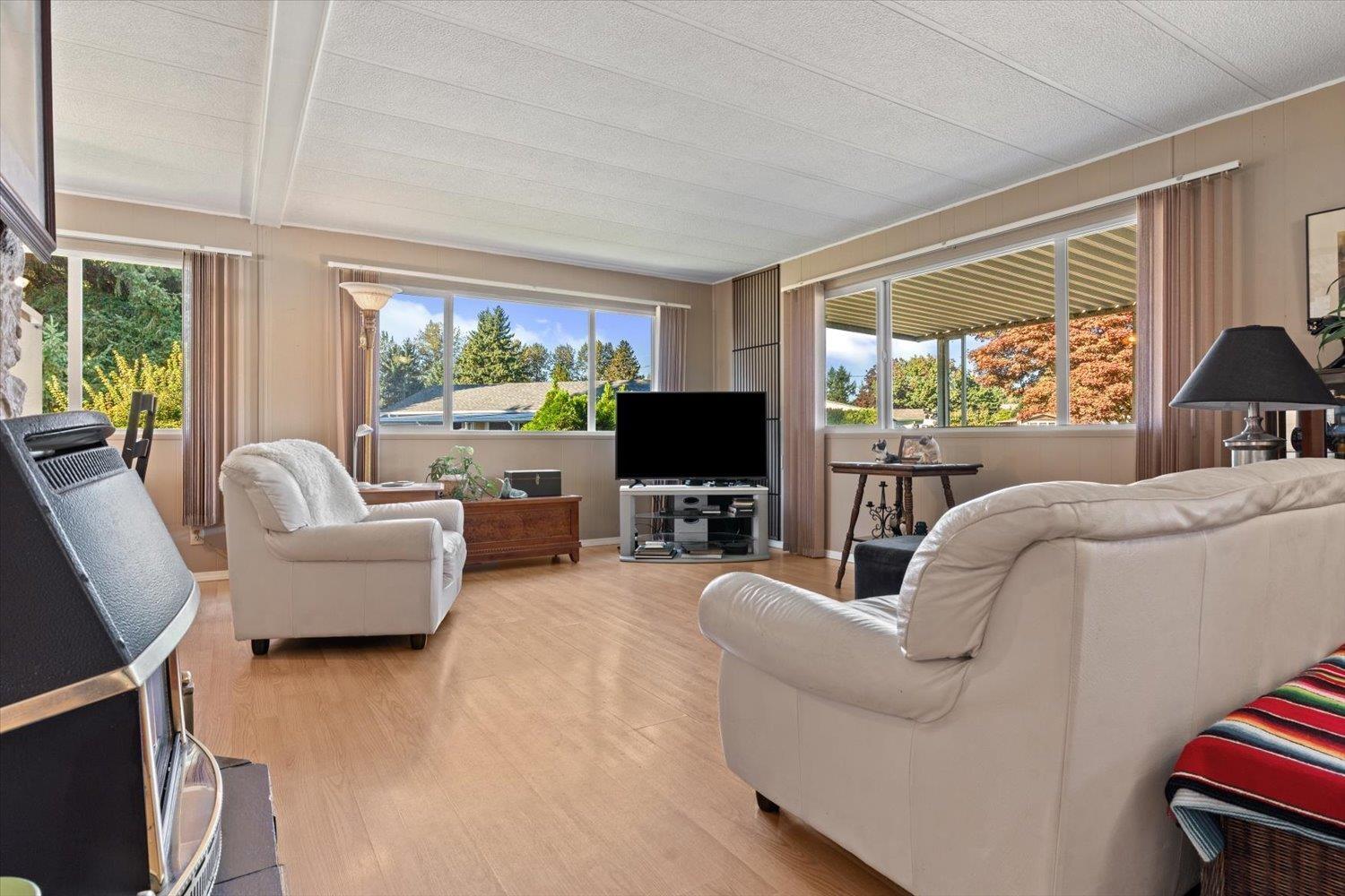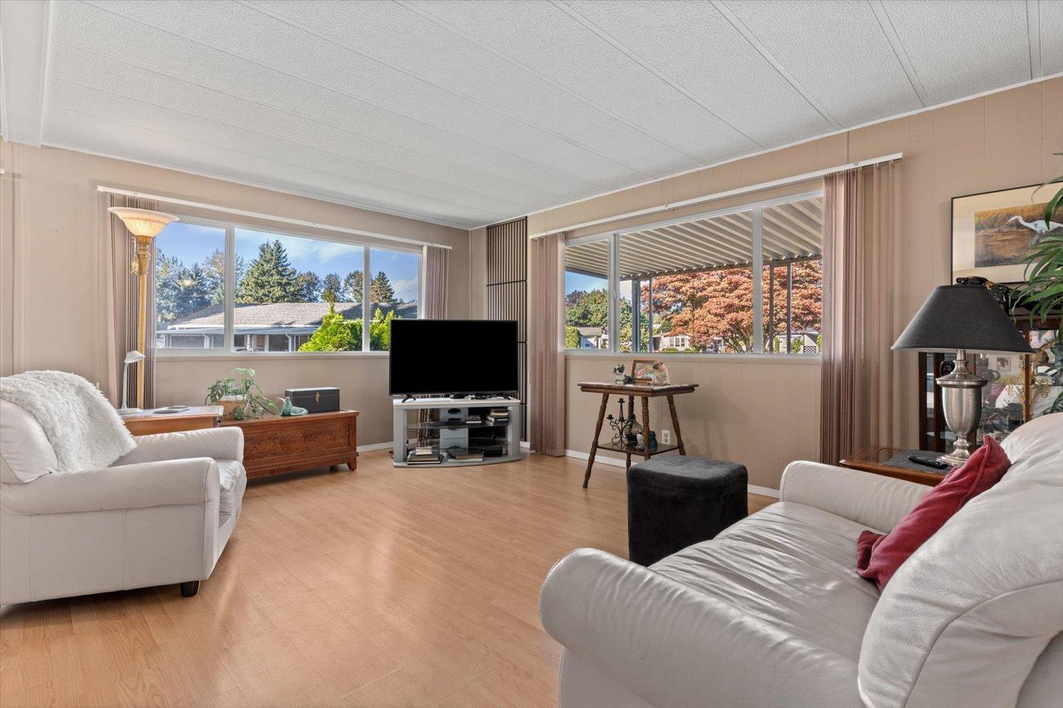 Welcome to Paradise Park, one of Abbotsford's most welcoming and secure 55+ communities, where you can enjoy the freedom of detached living without the confines of a condo. This well kept double-wide offers 2 bedrooms, 2 baths, and a bright, comfortable layout full of natural light. Lots of exterior updates in the past few years for true piece of mind! Step outside to your enclosed patio and spacious yard with two sheds and space to garden or relax. With manicured grounds, friendly neighbors, one small pet allowed, and a price suited to a senior budget, this is easy, independent living at its best. (32403902)