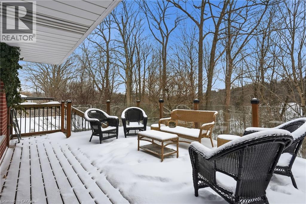 RARE OPPORTUNITY! Nestled on a quiet street w/ seamless access to both Ancaster & Dundas, this charming home offers a rare blend of functional living & a private connection to nature. Backing directly onto the prestigious Dundas Valley Conservation Area, the property is a sanctuary for local wildlife, where deer & birds are your most frequent neighbours. The main floor radiates character w/ its original hardwood flooring & a cozy gas fireplace, featuring 3 spacious bedrooms & updated 3-pc bath. Step through the patio doors onto the expansive deck (2018) to enjoy panoramic views of the lush greenery - the perfect spot for morning coffee or evening relaxation. The home is designed for versatility, boasting a full walk-out basement that serves as a complete in-law suite w/ stairs down from the front of the house as well. This lower level includes a 4th bedroom, a second 3-pc bath, & a rustic wood-burning stove that adds warmth to the living space. With its own set of patio doors leading to a professional interlock brick patio, the suite offers true independence & easy access to the outdoors. Practicality is woven throughout the property, from the shared laundry facilities to the impressive parking capacity, including a 2-car garage & a large driveway that fits 3 vehicles. Significant investments in the home’s infrastructure provide lasting peace of mind. The kitchen was tastefully updated in 2011, while the mechanical systems are well-maintained w/ the furnace & A/C installed in 2013. Most notably, the shingles were replaced in 2023, ensuring the home is protected for years to come. Baseboards provide a secondary heat source in the basement. Whether you are looking for a multi-generational family home, investment property or a peaceful retreat that feels miles away from the city while being minutes from every amenity, this property delivers an unmatched lifestyle in one of the region’s most beautiful settings. You must see the view to truly appreciate this opportunity! (70121004)