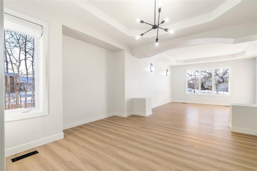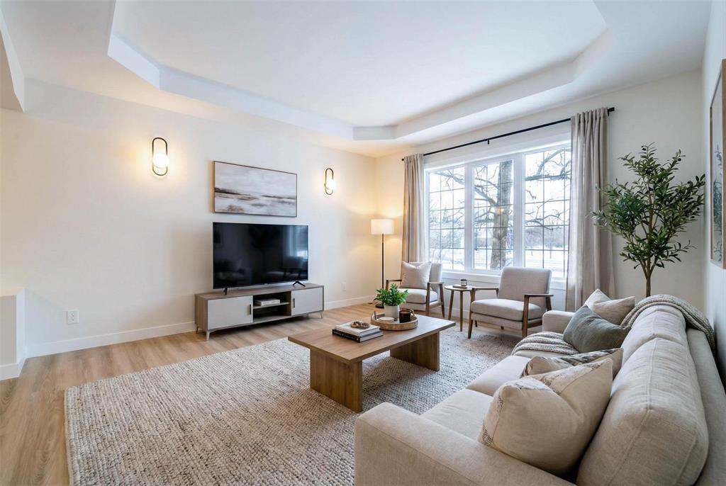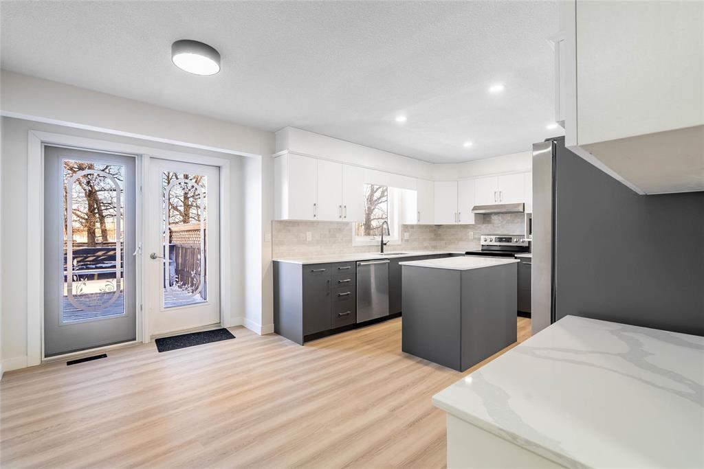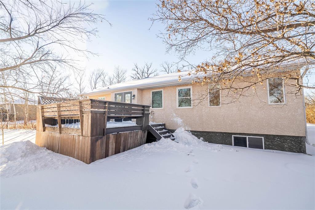 R16//Kleefeld/Showings start Feb 7! Sprawling bungalow in the heart of Kleefeld! Immaculately updated throughout, this beautiful home offers over 1,400 sq ft on the main floor. Step into the updated kitchen featuring quartz countertops, stylish backsplash, soft-close cabinetry, & stainless steel appliances. Enjoy the updated flooring, fresh paint, & modern trim throughout the home. The grand entryway provides plenty of storage & convenient main-floor laundry. The 24x28 double attached garage comes complete with fresh paint offering direct access to basement! The kitchen includes space for a cozy breakfast nook, while the large dining area seamlessly connects to a bright & spacious living room perfect for gatherings. This smart layout includes two generous bedrooms, with the primary featuring a walk-in closet & a 4-piece ensuite. Both bathrooms impress with tiled tub surrounds & quality finishes. The fully finished lower level offers even more space with brand-new carpet, two additional bedrooms (windows may not meet egress), another 4-piece bath, a corner gas fireplace, & ample storage. Beautifully treed property with towering oaks, a 14x16 deck, shed, & firepit area CALL TODAY! Some photos virtually staged. (231920328)