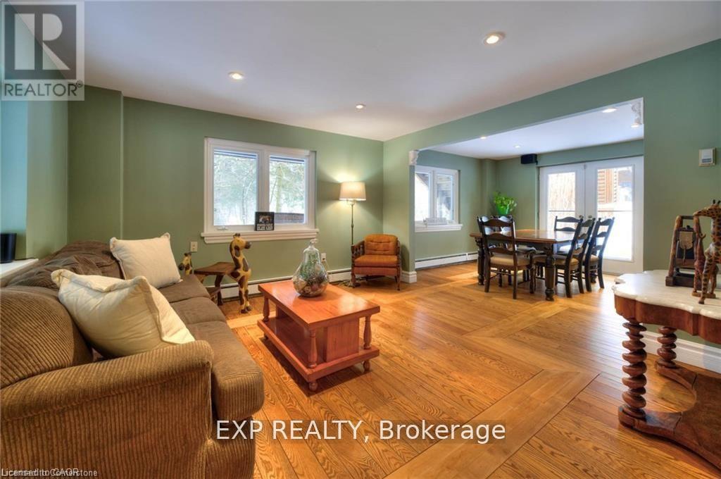 Discover unparalleled privacy on this remarkable, stress melting, 8 acre retreat, where nature and lifestyle blend seamlessly in your private escape a place the owners describe as their very own resort. With no neighbors in sight, you'll enjoy the tranquility and seclusion of this amazing oasis creating a feeling of being worlds away yet close enough for everyday convenience. This property offers an exceptional living experience, surrounded by walking trails perfect for year round adventures, close to snowmobile trails and many off road adventure opportunities. The options for this property are only limited by your imagination, from potential hobby farm, ATV trails, housing an existing business, start your own or just enjoy the beauty of nature. The centerpiece of this property is the stunning four-bedroom, three bathroom (2+1) one of a kind custom side split home. A striking spiral staircase takes center stage, adding architectural charm. The natural light floods every corner, creating a warm and inviting ambiance. While the top floor balcony invites you to savor your morning coffee amidst trees and picturesque views. The expansive primary suite offers abundant storage and space with endless potential to create your own spa like ensuite. Entertain effortlessly in the spacious living areas or take the gathering outdoors to the above ground heated pool deck and bar. Car enthusiasts and hobbyists will marvel at the shop with a double car garage in addition to the 400 sqft workshop and similar size stable area that can be used as additional storage or to keep animals. This is more than a home, its a private sanctuary where you can immerse yourself in nature and create unforgettable memories. Whether you're exploring the trails, hosting friends and family, or simply unwinding in your own oasis, 5794 Tenth Line is truly unlike any other. (42072384)