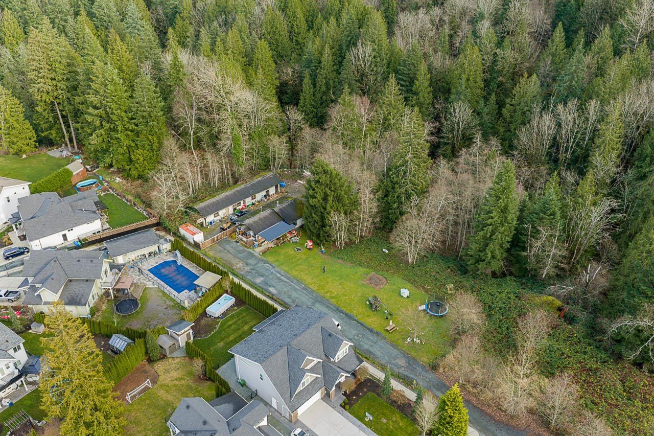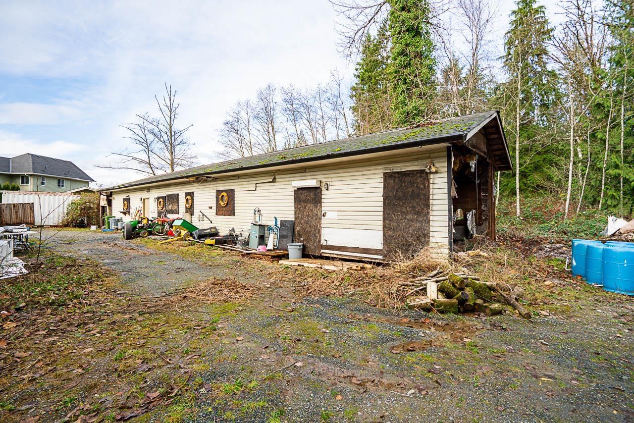 Rare opportunity to own a unique 2,400 sq. ft. 3-bedroom home on 2.89 acres of flat, usable land"-ideal for hobby farming or potential future development. Tucked away at the end of a quiet dead-end road and just down the road from a new development in progress. The finished basement offers two additional bedrooms, a large rec room, and a dedicated media room. Bonus 1,600 sq. ft. outbuilding features garage space, 200-amp service, a roughed-in suite, and an acoustically treated recording studio. Peaceful and private setting bordered by a ravine and year-round spring-fed creek. Please check with city for potential subdivision yield. (32404745)