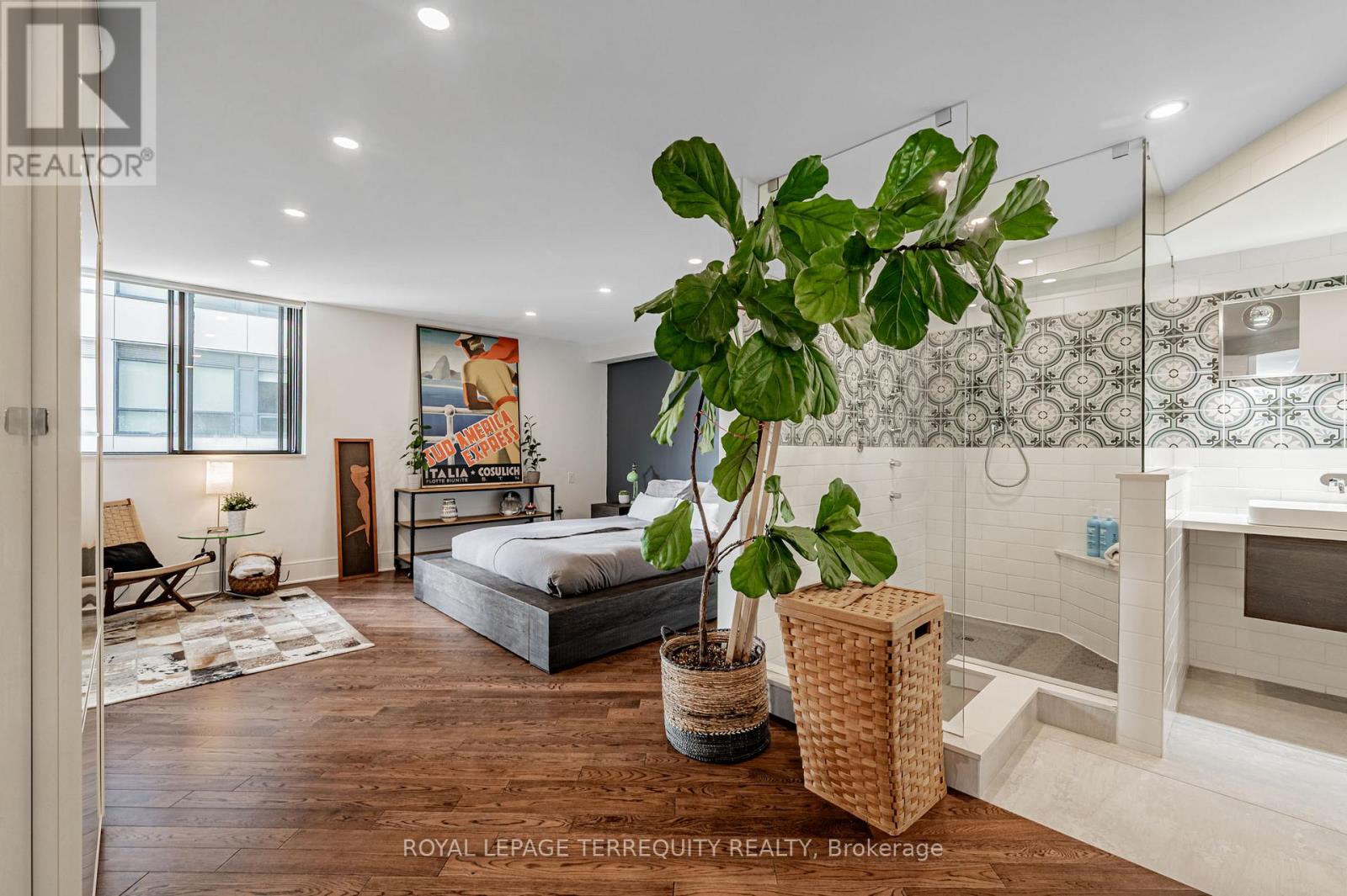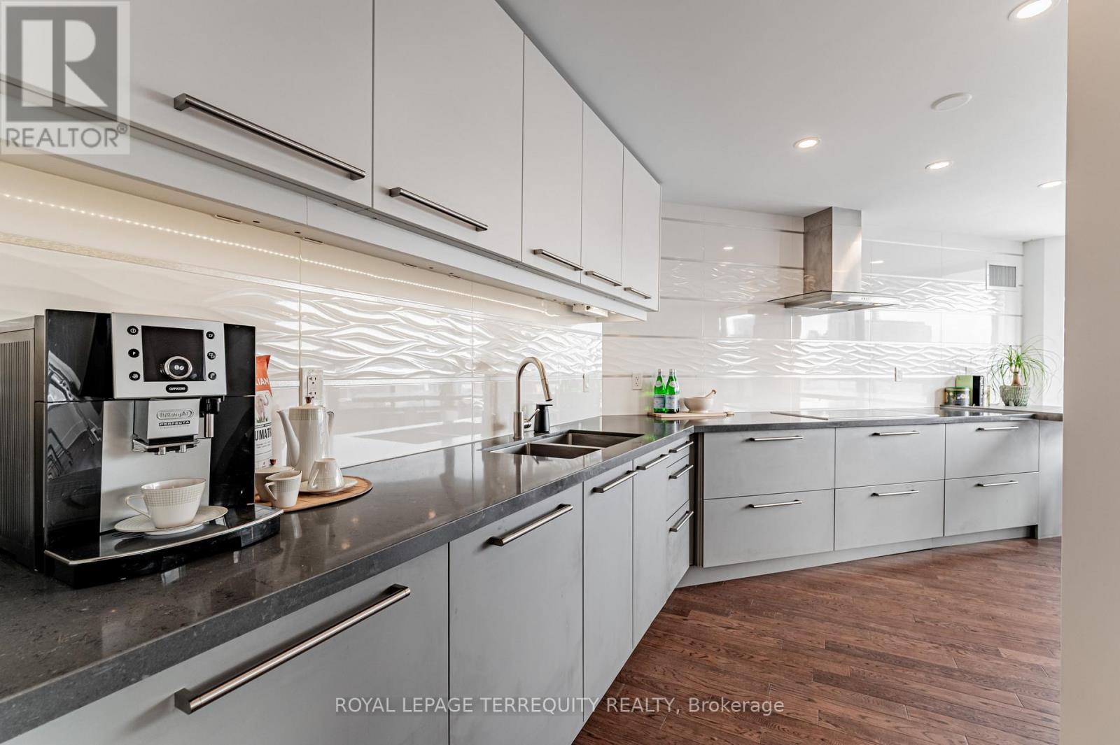 An exceptional downtown residence offering space, privacy, and finish rarely found in condo living. Welcome to Jarvis Gardens: a boutique building, known for long-term ownership and limited turnover in the heart of the city, featuring a fully renovated 2-bedroom, 2-bath home designed for long-term comfort and everyday ease.This suite offers 1,300+sq. ft. of interior space with a split-bedroom layout providing true separation of living areas. The open-concept living and dining space is filled with natural light and opens to a large southeast-facing balcony with open city views, ideal for entertaining in luxury or quiet evenings at home.Engineered hardwood flooring runs throughout, complemented by heated tile flooring at the entrance, and clean, contemporary finishes. The kitchen features quartz countertops, premium integrated appliances, a breakfast bar, and a custom laundry area offering quartz counter tops, additional prep space, large sink and storage, a highly functional upgrade.The primary bedroom includes balcony access, custom integrated closets, and a renovated ensuite with heated floors, double vanity, and oversized glass shower with multi-jet shower heads. The second bedroom is generously sized and located beside a full bathroom, suitable for guests, a roommate, or home office use.Jarvis Gardens is a quiet, well-managed pet friendly building with only 44 suites and just 4 units per floor. Amenities include rooftop terrace with garden plots, gym and yoga studio, sauna, party room with walk-out patio and BBQ, and on-site superintendent. Parking and large ensuite storage included.Steps to St. Lawrence Market, Financial District, TTC, parks, cafés, and daily essentials. This is downtown living without compromise, offering space, quality, and a layout designed to grow with you. (42072750)