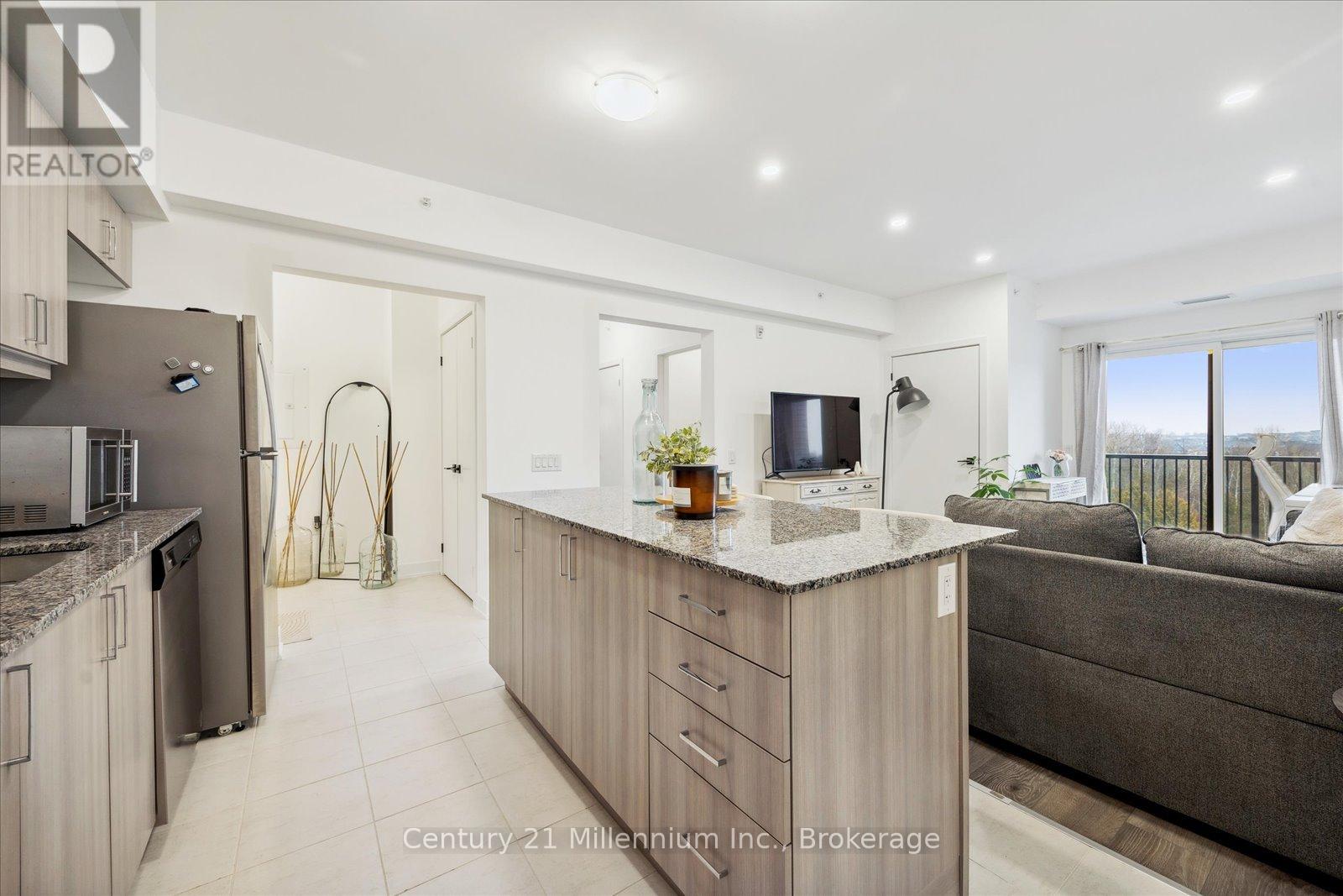 Welcome to this well-designed one-bedroom condo in the Chili One building, offering a functional layout and beautiful finishes well suited to a variety of buyers. The open-concept living area is bright and practical, flowing into the kitchen with clean lines and ample workspace on the kitchen island. A private balcony provides a comfortable spot to enjoy some fresh air throughout the day. The bedroom offers a generous closet, and in-suite laundry adds everyday convenience. The unit was designed with wheelchair accessibility in mind, featuring wider hallways, lowered light switches, and a bathroom that is larger than what is typically found in one-bedroom units within the building. One outdoor parking space is included and is conveniently located close to the building entrance, making day-to-day access easy. Residents of the building enjoy access to a range of amenities, including an on-site playground, a shared chef-inspired kitchen and lounge area, outdoor BBQ spaces with pizza ovens, and a fully equipped gym. Located in Barrie's desirable south end, this condo is close to parks, shopping, restaurants, Highway 400, and the Barrie South GO Station. Unit is available February 15th and beyond. Tenant to pay utilities (water included). (42073500)