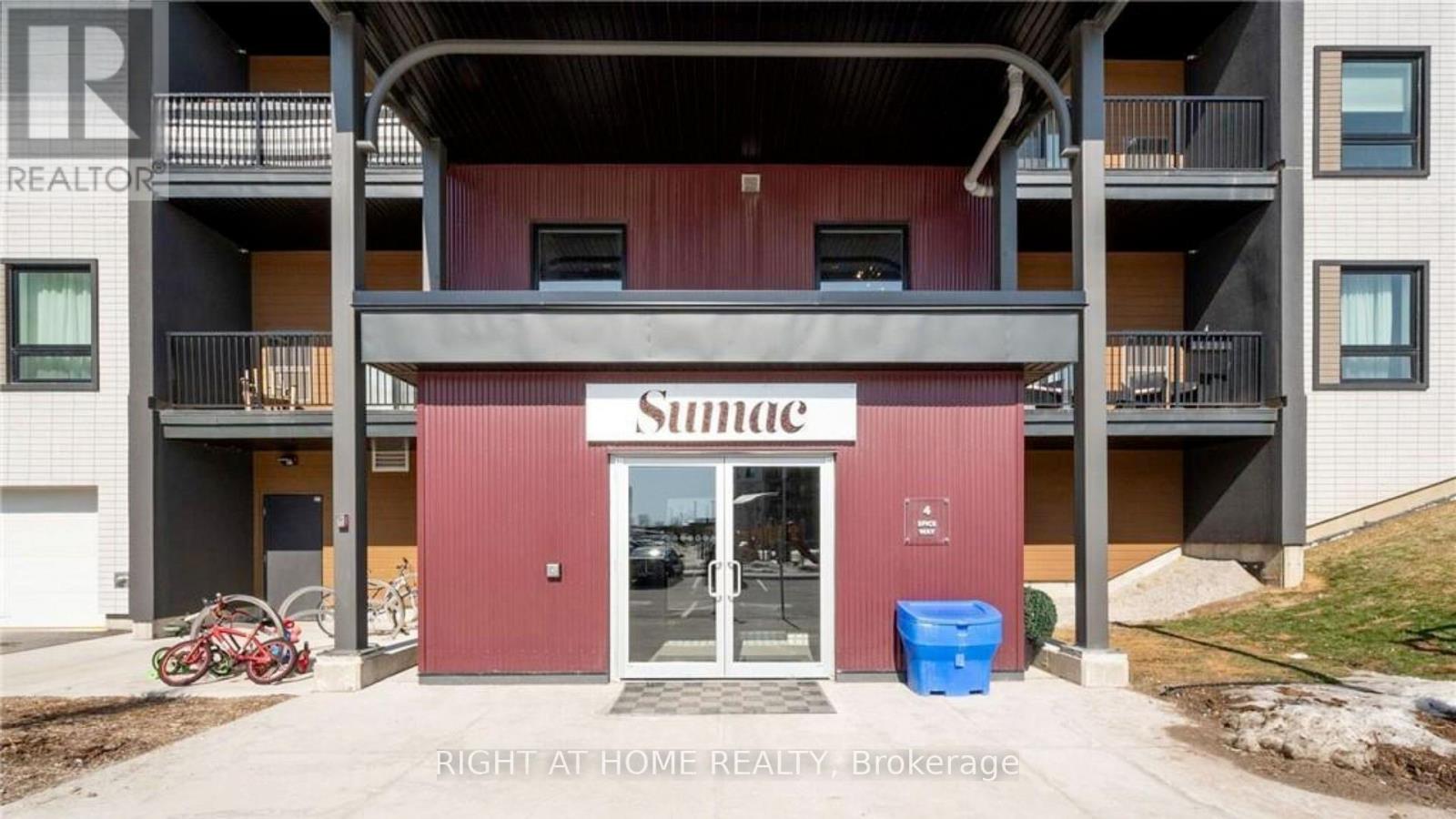 Welcome to 4 Spice Way, Barrie - Sumac Condominium Community, where elevated design meets a vibrant community inspired by food, culture, and connection! This stunning 1 bedroom plus den condo features a bright, modern open-concept layout with an excellent floor plan and no wasted space. Loaded with upgrades, the unit offers large windows, a spacious primary bedroom with ample storage, and a sleek modern kitchen complete with stainless steel appliances and a functional island providing additional counter space and dining area. The den makes a suitable smaller second bedroom, or is perfect for a home office! Enjoy the large north facing balcony with gas hookup and unobstructed views. Life at Bistro 6 is about more than just your condo - it's about community. Residents enjoy chef-inspired amenities, including an outdoor kitchen, community gym, yoga space, spice library, and access to scenic walking trails. You're just minutes from the GO station, Park Place Shopping Centre, Tangle Creek Golf Course, and vibrant downtown Barrie, making this an unbeatable location for commuters, professionals, and anyone who loves having everything within reach. Complete with ensuite laundry, kitchen appliances, all electrical light fixtures, and a top-floor balcony view, this thoughtfully designed condo is move-in ready and waiting for you to call it home! This beautiful unit is a must-see! (42073751)