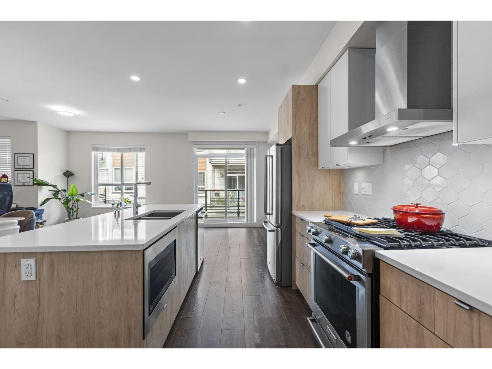 Tired of cramped condos and dark spaces? Look no further! Step into this bright and modern corner 2 Bedroom + Den/Flex & 2 Bathroom condo in Willoughby Heights that has an ideal floor plan! Featuring 11' vaulted ceilings, open-concept living, and oversized windows, this home is perfect for young professionals, families, or those looking to downsize. The kitchen offers quartz countertops, stainless steel appliances, & ample storage. Bedrooms on opposite ends of the suite providing privacy, and the covered balcony is ideal for relaxing and for morning coffees. Includes 2 side-by-side underground parking stalls and a large storage locker. Steps to Willoughby Town Centre, Carvolth Exchange, Hwy 1, all schools, parks, and shopping. Building has a party room and elevator. Pet & rental friendly! (32405254)