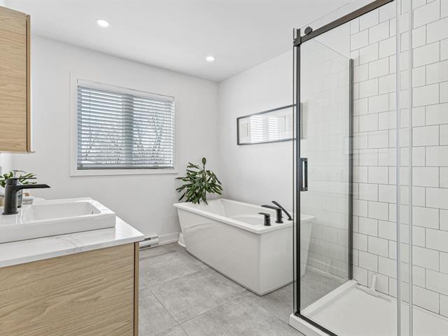 Stunning corner unit built in 2020, tastefully designed and filled with natural light thanks to large windows. Located in Longueuil close to all services. Three bedrooms on the upper floor, two full bathrooms and a powder room. Finished basement with independent entrance, ideal for a home office or family space. Heat pump, fenced yard with patio. Turnkey property in a sought-after area. (40054768)