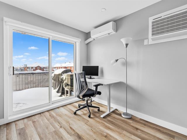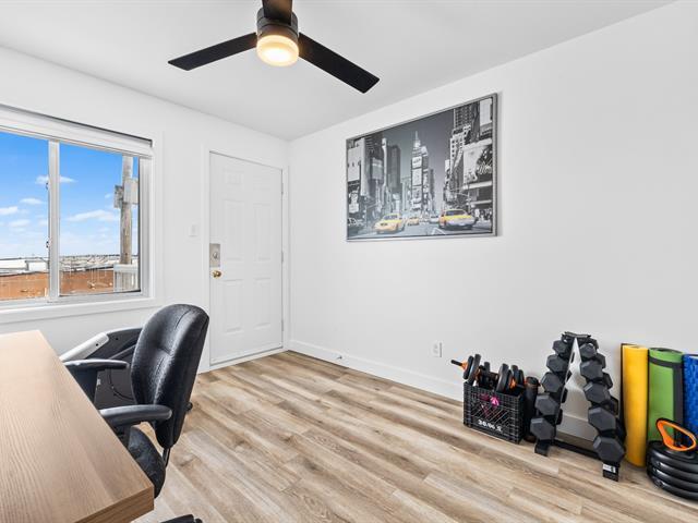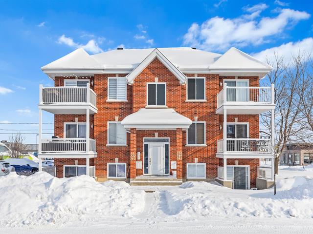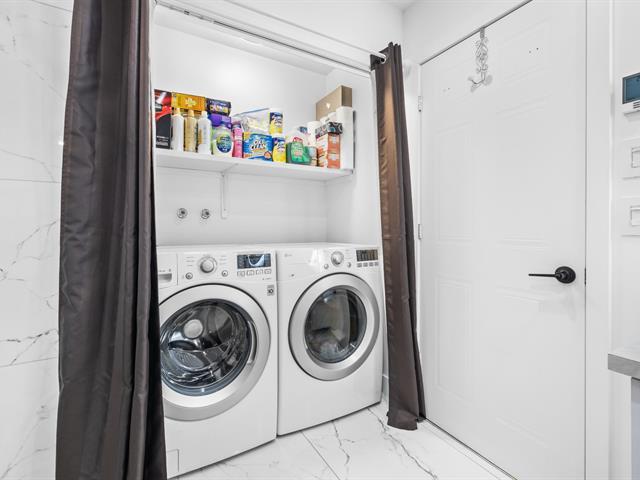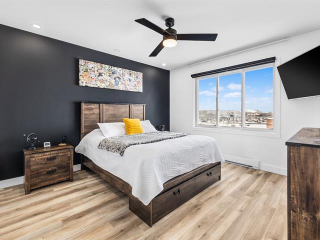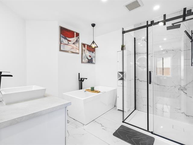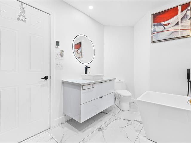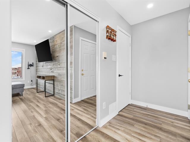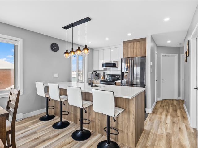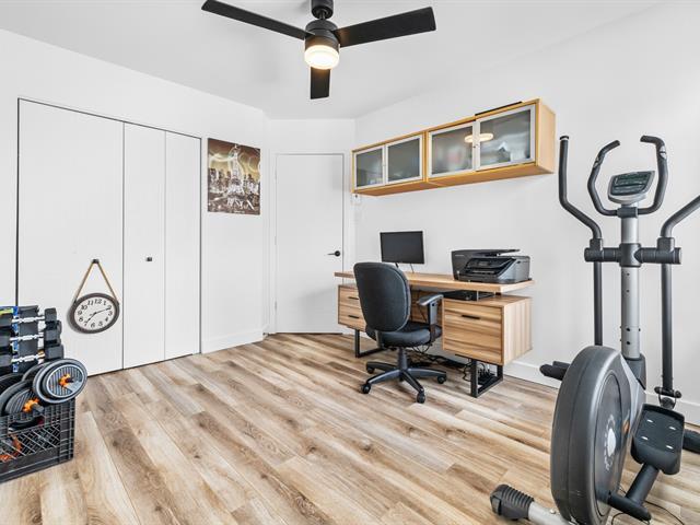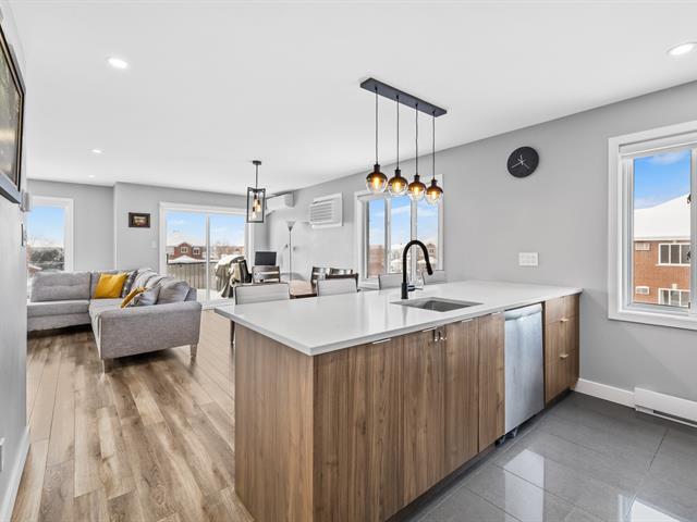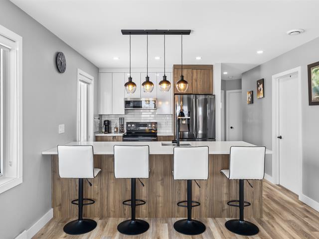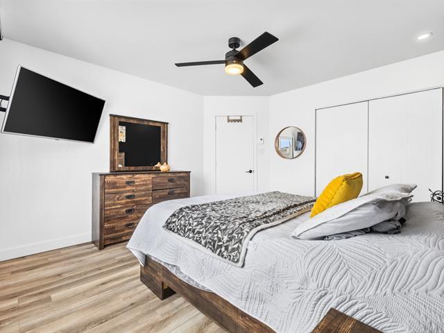 This renovated condo offers two bedrooms and features a modern kitchen with quartz countertops. The floors have been replaced, and the bathroom has been updated with a separate shower and freestanding bathtub. A new heat pump, air exchanger, and water heater will be installed in 2024. Large windows and a bright, open-plan living space. Enjoy a large covered terrace, perfect for summer evenings, and a convenient outdoor shed for storage. Located within walking distance of gas stations, a shopping center, and restaurants, this turnkey condo is a must-see. (46839004)