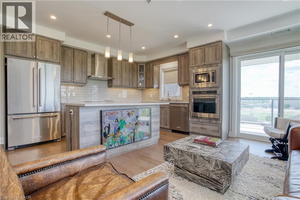 STUNNING TWO-BEDROOM & TWO-BATHROOM AVAILABLE FOR LEASE! Welcome to 403-245 Grey Silo Road, a luxury condo located inside the Trailside at Grey Silo Gate building. A quick walk to RIM Park, the Walter Bean Grand River Trail, and Grey Silo Golf Course, and just a few minutes' drive from all amenities. The modern condo features engineered hardwood flooring and upgraded features throughout. The kitchen boasts ample cabinetry, stone countertops, a glass subway tile backsplash, a large island, and high-end, built-in Kitchenaid appliances. The bright living room flows off the kitchen and features glass sliding doors leading onto the massive wrap-around balcony. The principal bedroom features a large window, two closets, and a three-piece ensuite with a tiled walk-in shower. This unit is complete with a second bedroom, a four-piece bathroom, in-suite laundry with front loading machines, two parking spaces; one underground and one surface, and a locker. Enjoy the sunshine or entertaining guests on the rooftop patio, equipped with a barbeque and ample seating and lounging areas. Don't miss out on this incredible home! (70122543)