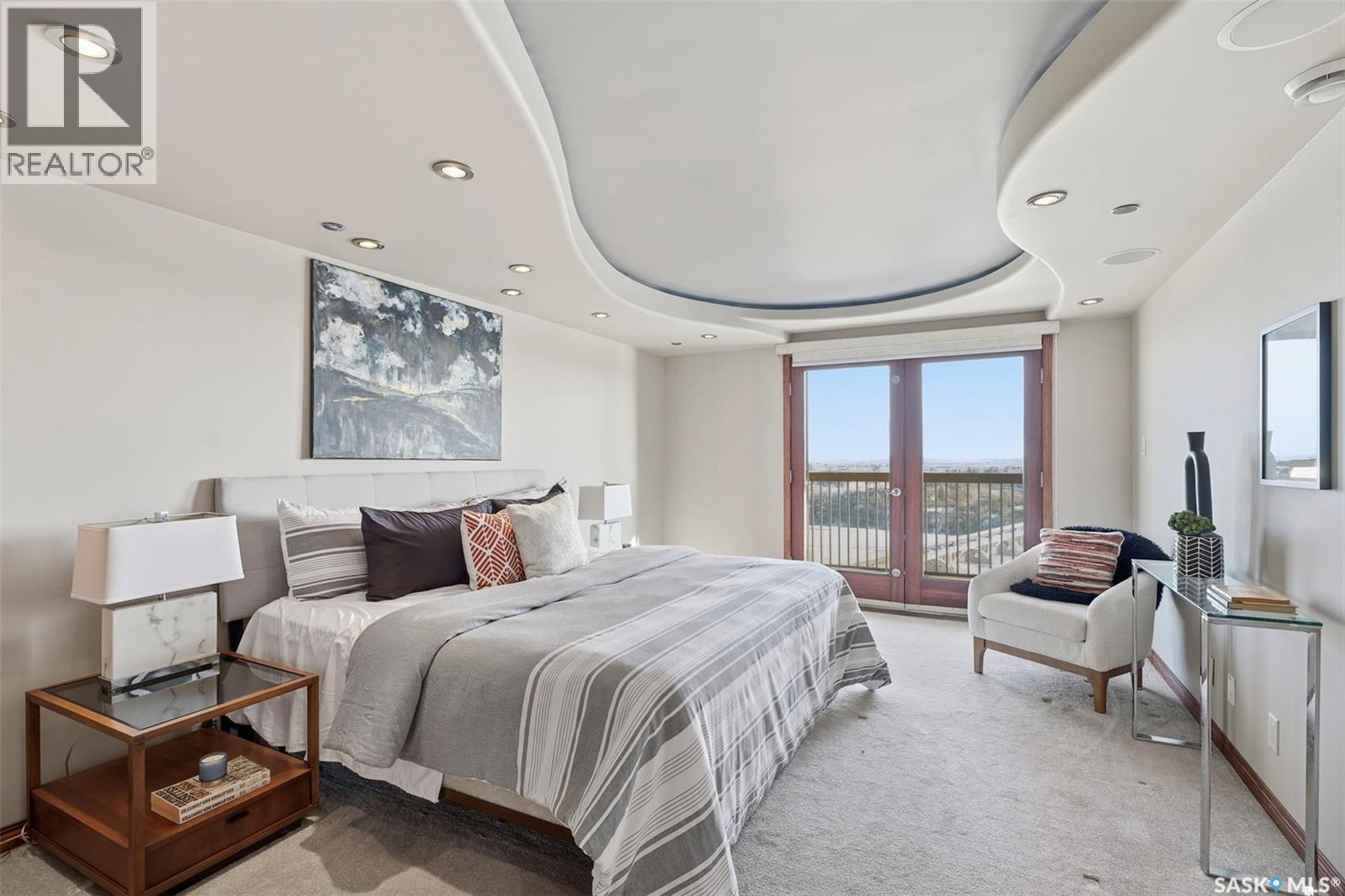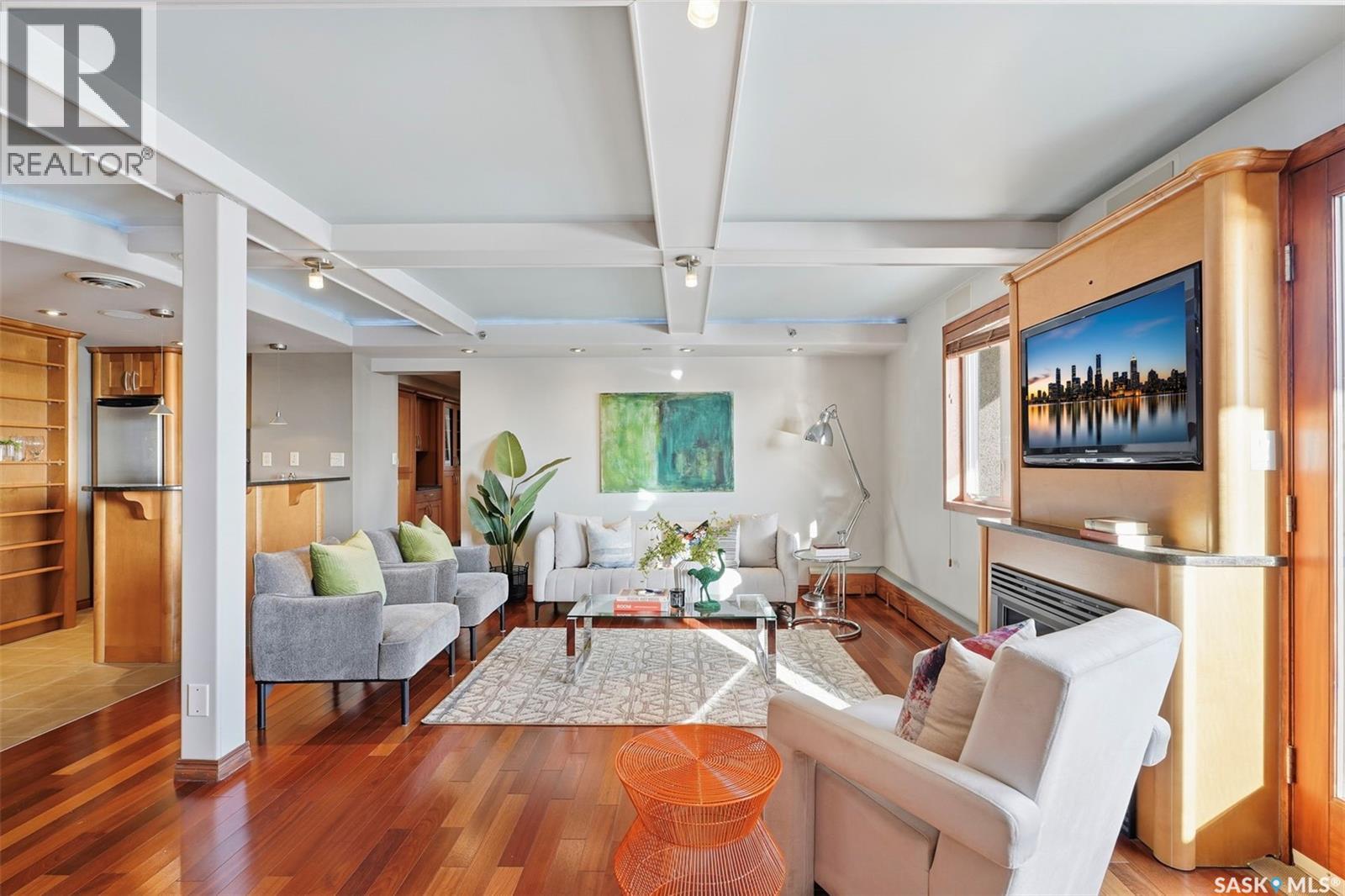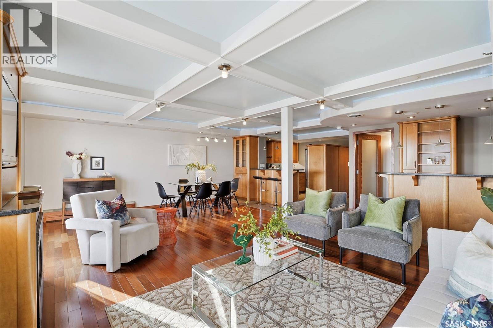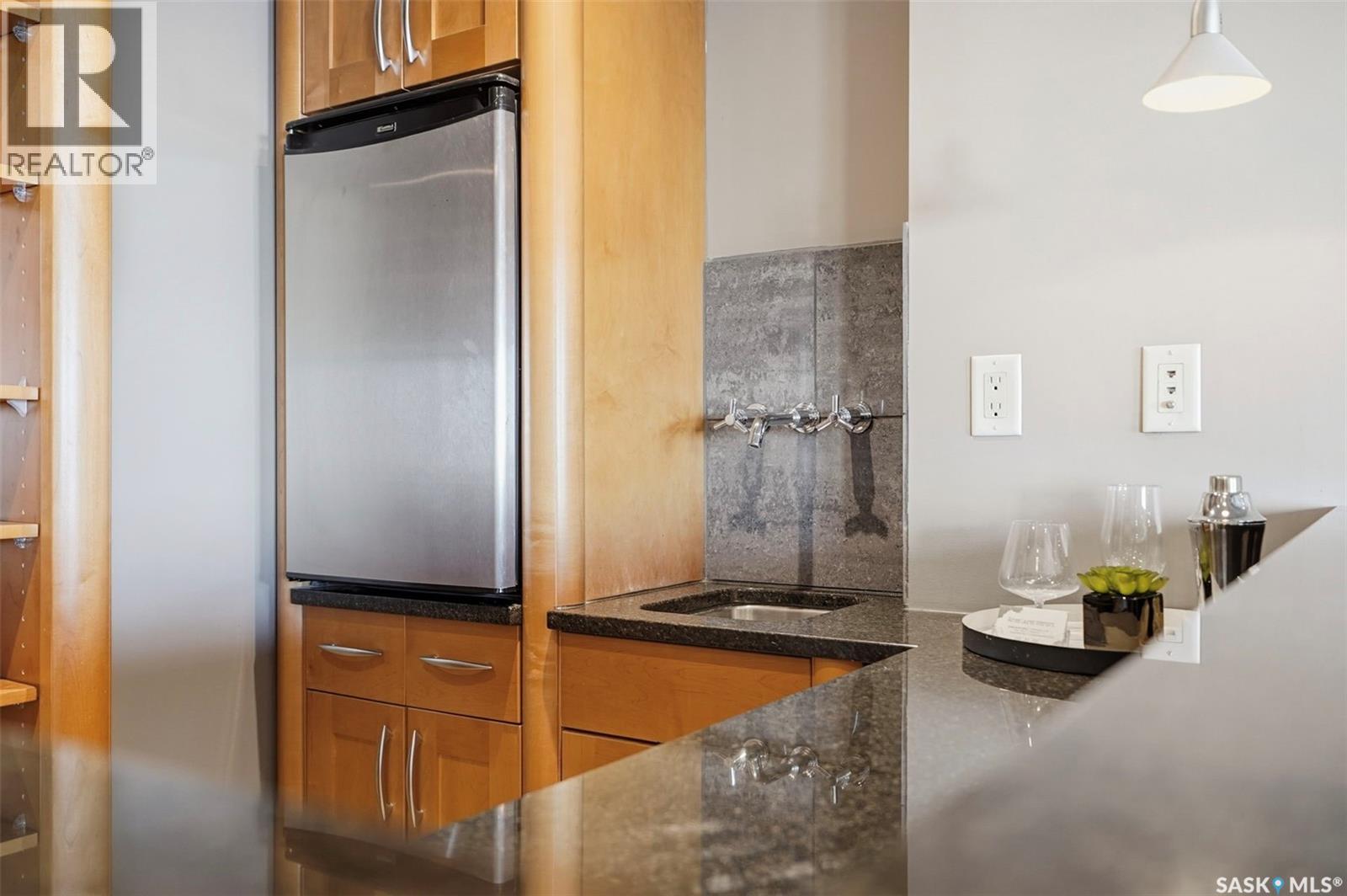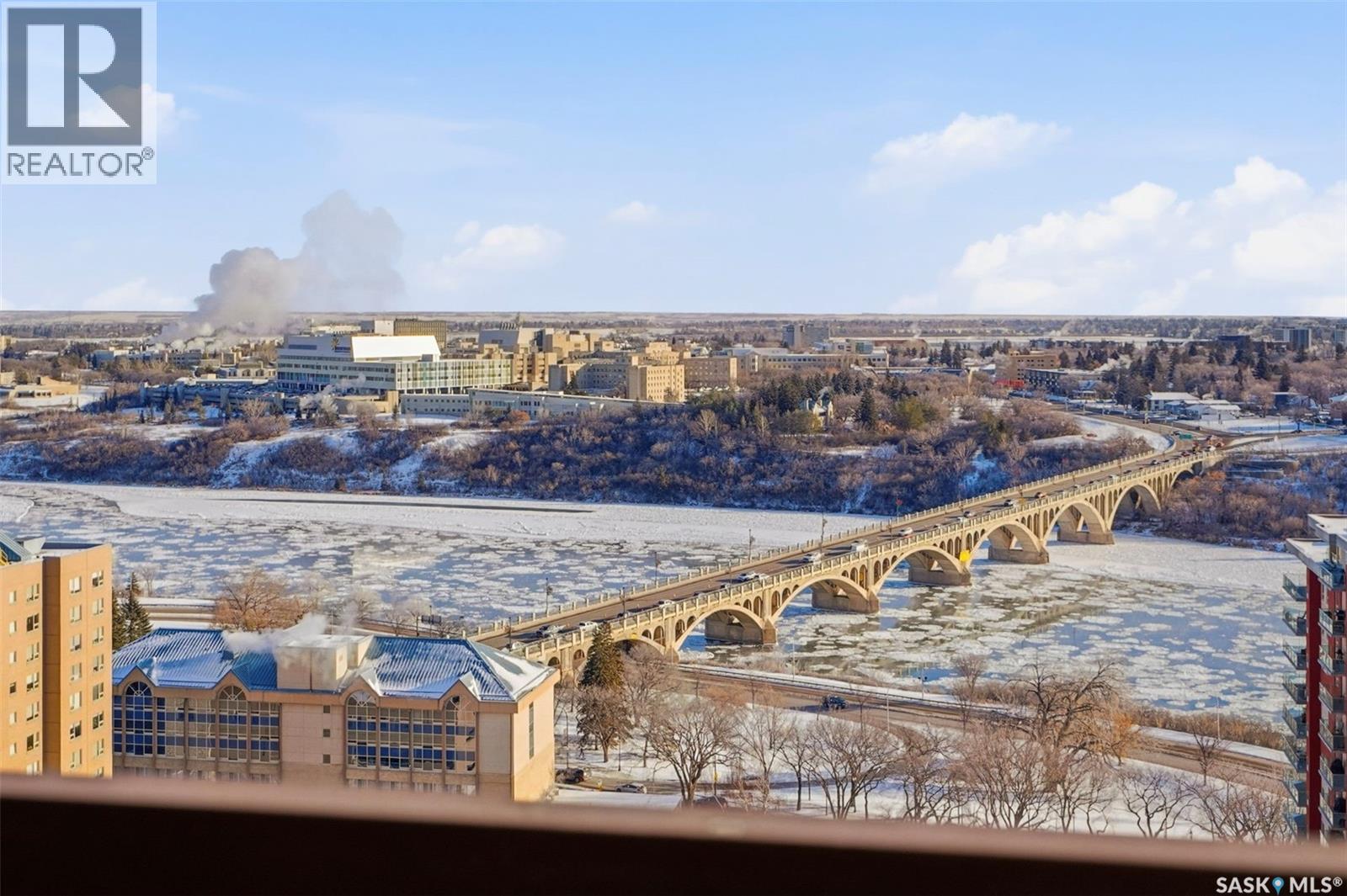 Penthouse-Style Double Unit with Unmatched River & City Views Welcome to 2505 – 311 6th Ave N, an extraordinary penthouse-style residence in one of downtown’s most reputable and highly sought-after buildings. This rare double unit, professionally combined, offers one of the largest and most unique floorplans in the entire tower—completely customized and truly one of a kind. Step inside to discover expansive living spaces wrapped in unreal river and skyline views from every window—hands down some of the best views in Saskatoon at this height. The luxury continues with gleaming Brazilian hardwood floors, granite throughout, a stunning custom wet bar, and an elegant fireplace anchoring the open-concept living room. The spacious dining area flows seamlessly to a second balcony spanning over 20 ft, perfect for entertaining. The dream primary suite features a spectacular 5-piece ensuite, complete with a jetted soaker tub, a large mist & rainfall shower, and dual sinks. Through double patio doors, the primary opens onto another private 22-ft deck perched on the 25th floor—your own serene retreat in the sky. The unit offers 2 bedrooms, a dedicated office, an additional 3-piece bathroom, and in-suite laundry. Custom maple cabinetry provides exceptional storage throughout. This rare offering includes two underground parking stalls, side by side—a true luxury in the downtown core. Residents enjoy access to outstanding building amenities, including a hair salon, convenience store, racquetball court, fenced green space, weight room, dry sauna and much more. A property of this caliber must be seen to be fully appreciated. Experience penthouse-style living with unparalleled views in the heart of Downtown Saskatoon. (29347669)