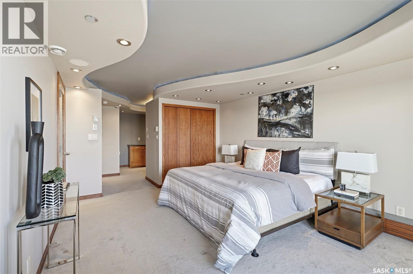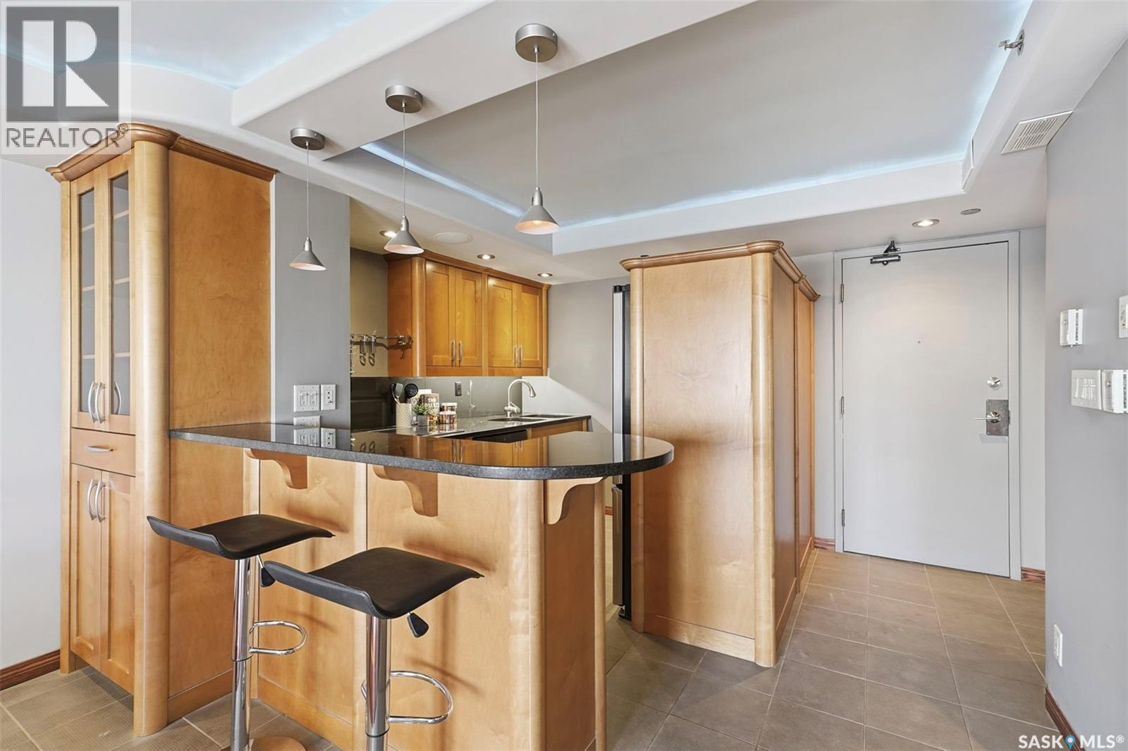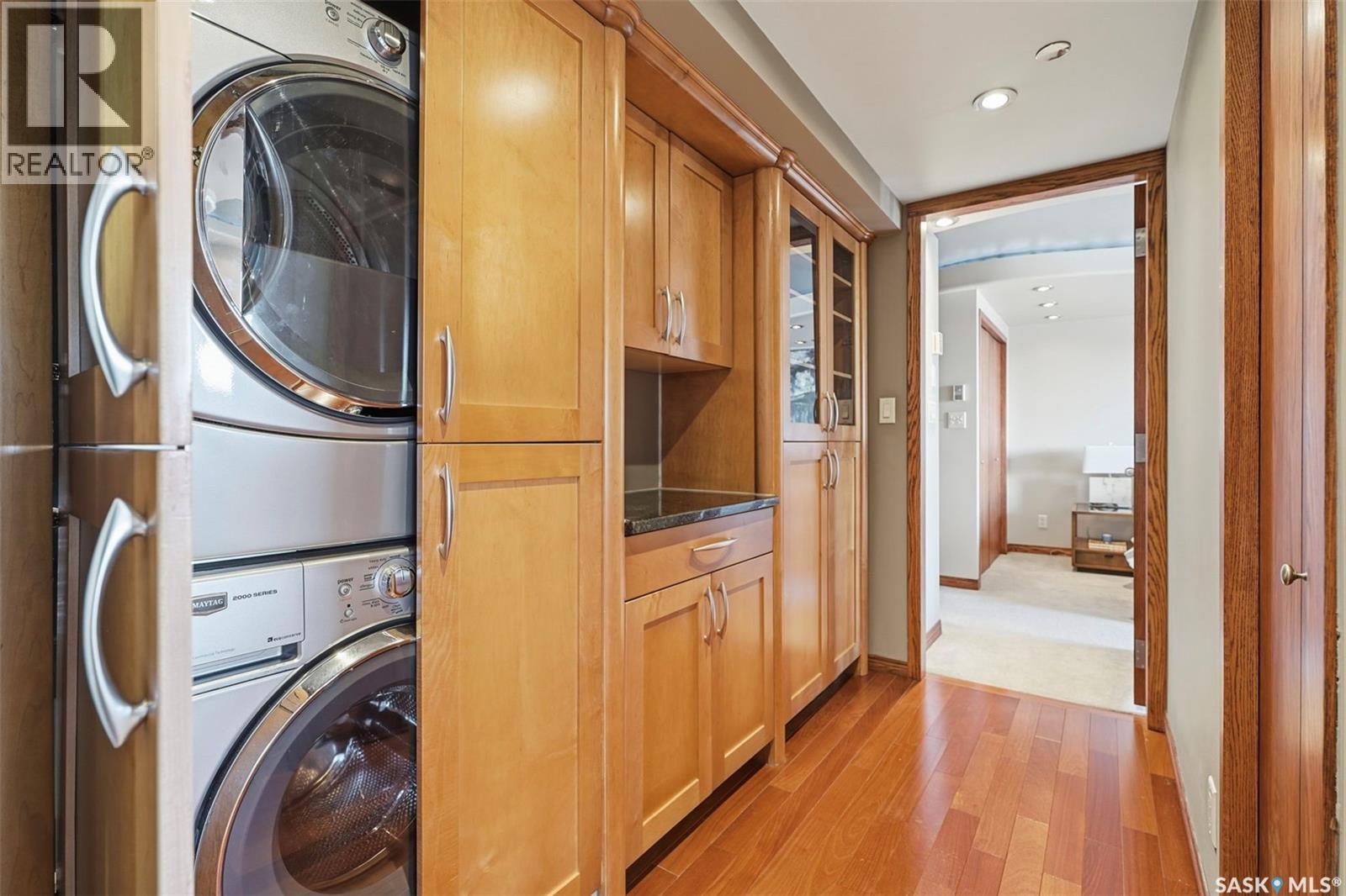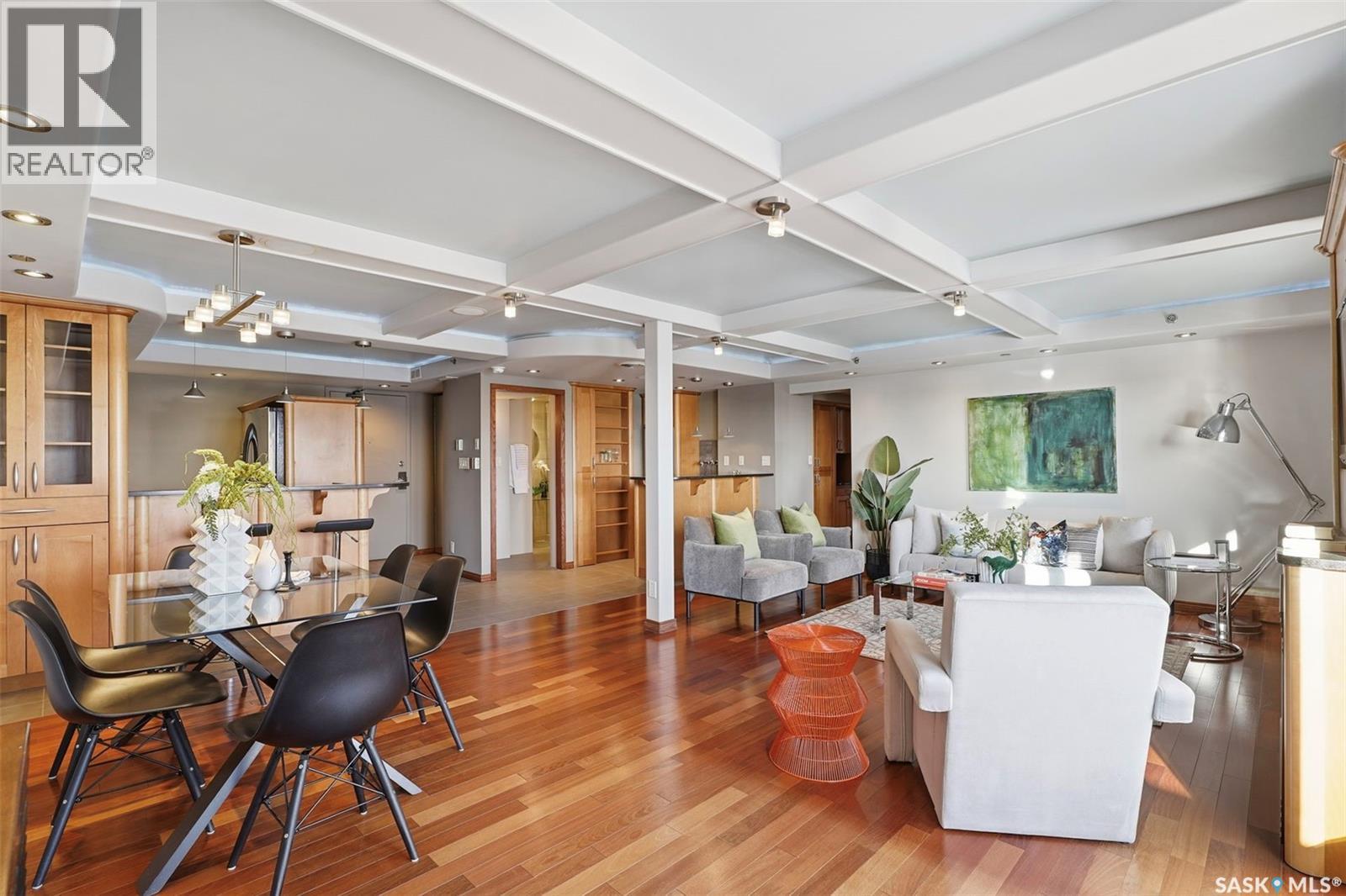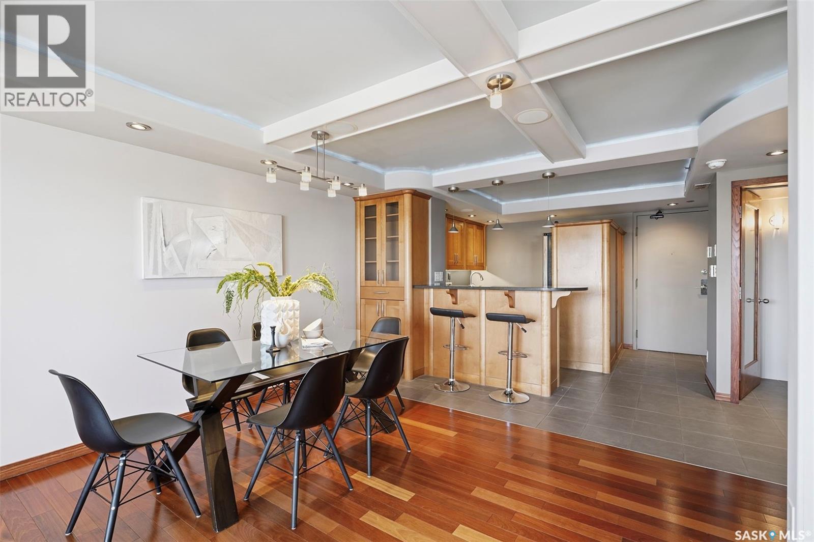 Penthouse-Style Double Unit with Unmatched River & City Views Welcome to 2505 – 311 6th Ave N, an extraordinary penthouse-style residence in one of downtown’s most reputable and highly sought-after buildings. This rare double unit, professionally combined, offers one of the largest and most unique floorplans in the entire tower—completely customized and truly one of a kind. Step inside to discover expansive living spaces wrapped in unreal river and skyline views from every window—hands down some of the best views in Saskatoon at this height. The luxury continues with gleaming Brazilian hardwood floors, granite throughout, a stunning custom wet bar, and an elegant fireplace anchoring the open-concept living room. The spacious dining area flows seamlessly to a second balcony spanning over 20 ft, perfect for entertaining. The dream primary suite features a spectacular 5-piece ensuite, complete with a jetted soaker tub, a large mist & rainfall shower, and dual sinks. Through double patio doors, the primary opens onto another private 22-ft deck perched on the 25th floor—your own serene retreat in the sky. The unit offers 2 bedrooms, a dedicated office, an additional 3-piece bathroom, and in-suite laundry. Custom maple cabinetry provides exceptional storage throughout. This rare offering includes two underground parking stalls, side by side—a true luxury in the downtown core. Residents enjoy access to outstanding building amenities, including a hair salon, convenience store, racquetball court, fenced green space, weight room, dry sauna and much more. A property of this caliber must be seen to be fully appreciated. Experience penthouse-style living with unparalleled views in the heart of Downtown Saskatoon. (29347669)