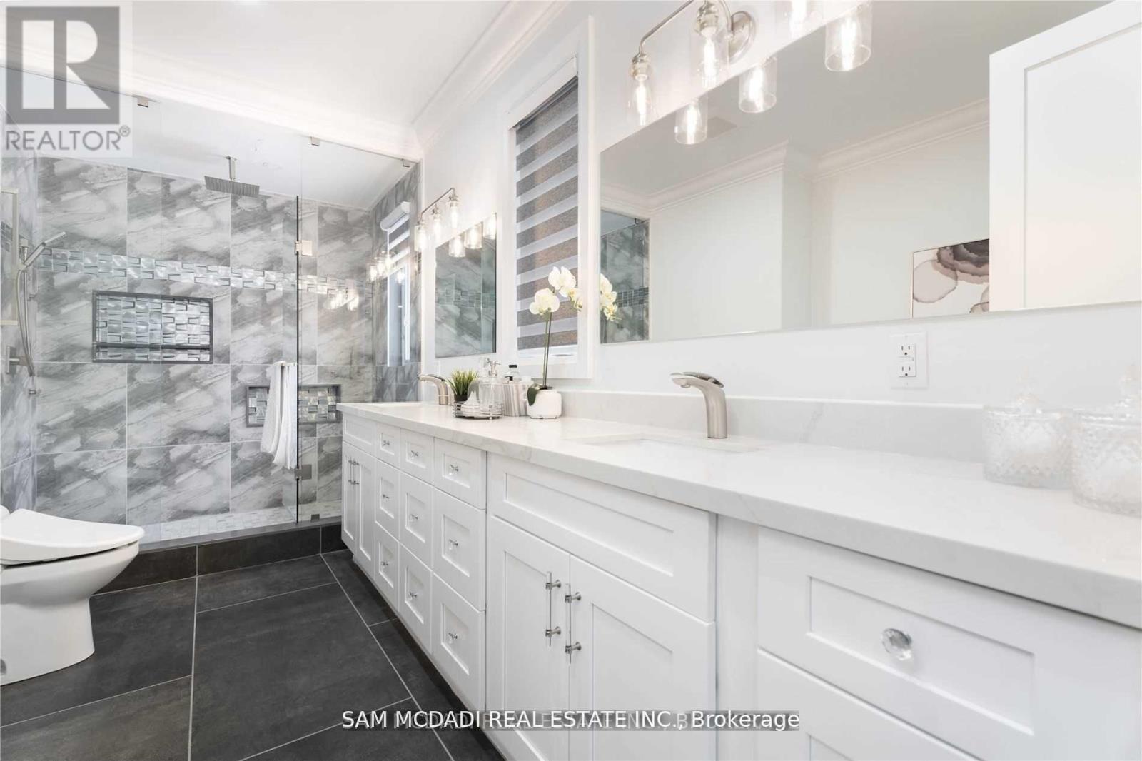 Architecturally refined w/ modern functionality, this exceptional Lorne Park estate offers approximately 6,500 sq. ft. of luxurious living space with soaring 10-ft ceilings on the main and lower levels. Thoughtfully designed for modern living and upscale entertaining, the home features integrated surround sound, 5+3 bedrooms, 8 bathrooms, radiant heated hardwood and porcelain tile flooring, and a seamless open-concept layout that beautifully unites all principal living areas.A dramatic 20+ ft grand foyer makes a stunning first impression, flowing into an elegant dining room highlighted by coved ceilings, ambient LED pot lighting, and a sophisticated wet bar with built-in cabinetry, quartz countertops, and a marble backsplash. This space transitions effortlessly into a chef's gourmet eat-in kitchen, fully equipped with a large centre island, oversized sink, premium stainless-steel appliances, a built-in Sub-Zero refrigerator, and direct access to a sun-filled family room with walk-out to the backyard.The main level is completed by a private bedroom with a 3-piece ensuite, a stylish powder room, and a practical mudroom with interior garage access. The second floor is dedicated to private living, featuring a lavish primary retreat with a generous walk-in closet and a spa-like 5-piece ensuite boasting a waterfall shower, heated porcelain floors, and his-and-hers vanities. Two additional bedrooms each include their own 3-piece ensuites, along with a convenient laundry room and a nanny's suite with a separate entrance. Designed to impress and entertain, the lower level offers a spacious recreation room with built-in shelving, a secondary kitchen, three additional bedrooms, and its own separate side entrance from the mudroom. Set on an expansive deep lot backing onto Glen Road, this remarkable property also delivers outstanding future value, presenting a rare opportunity to sever the lot into two separate parcels. (42074612)