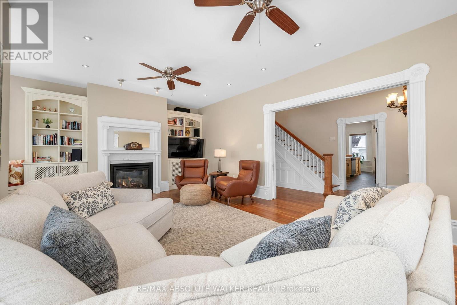 Welcome to this stunning 19th-century home, beautifully reimagined to honour its historic character while offering all the comforts and functionality today's family desires. Set in a picturesque village setting, this one of a kind property boasts over 4,000 sq ft of spacious living, filled with timeless period details throughout.Original transom windows, soaring 9-foot ceilings, and exquisite original mouldings and trim work create an atmosphere of elegance and charm at every turn. Thoughtful renovations seamlessly blend old and new, including a renovated open-concept kitchen and dining area designed for entertaining, complete with built-in appliances, a quartz countertop island, and luxurious in-floor heating.Cozy up by the inviting double-sided fireplace, perfectly positioned between the living room and den. Upstairs, unwind in the expansive second floor family room, ideal for movie nights, game days, or simply relaxing together.The spacious primary suite is a true retreat, featuring exposed brick and a warm, character rich ambiance. A fully renovated five piece ensuite bath creates the feel of a private sanctuary. Renovated bathrooms with heated floors, feel like private spas, offering a serene escape at the end of the day. Three additional. bedrooms and the laundry room complete the second level. Step outside to your covered outdoor entertainment area with a propane hookup for BBQs, and enjoy the ultimate luxury of a hot tub on this generous lot. Adding to the property's charm is the original 1890 barn, brimming with potential for a workshop, studio, or additional storage.Don't miss this rare opportunity to own a breathtaking historic home with all the bells and whistles where classic 19th-century style meets modern living at its finest. An ideal home for growing families with an easy commute to Ottawa. (42074886)