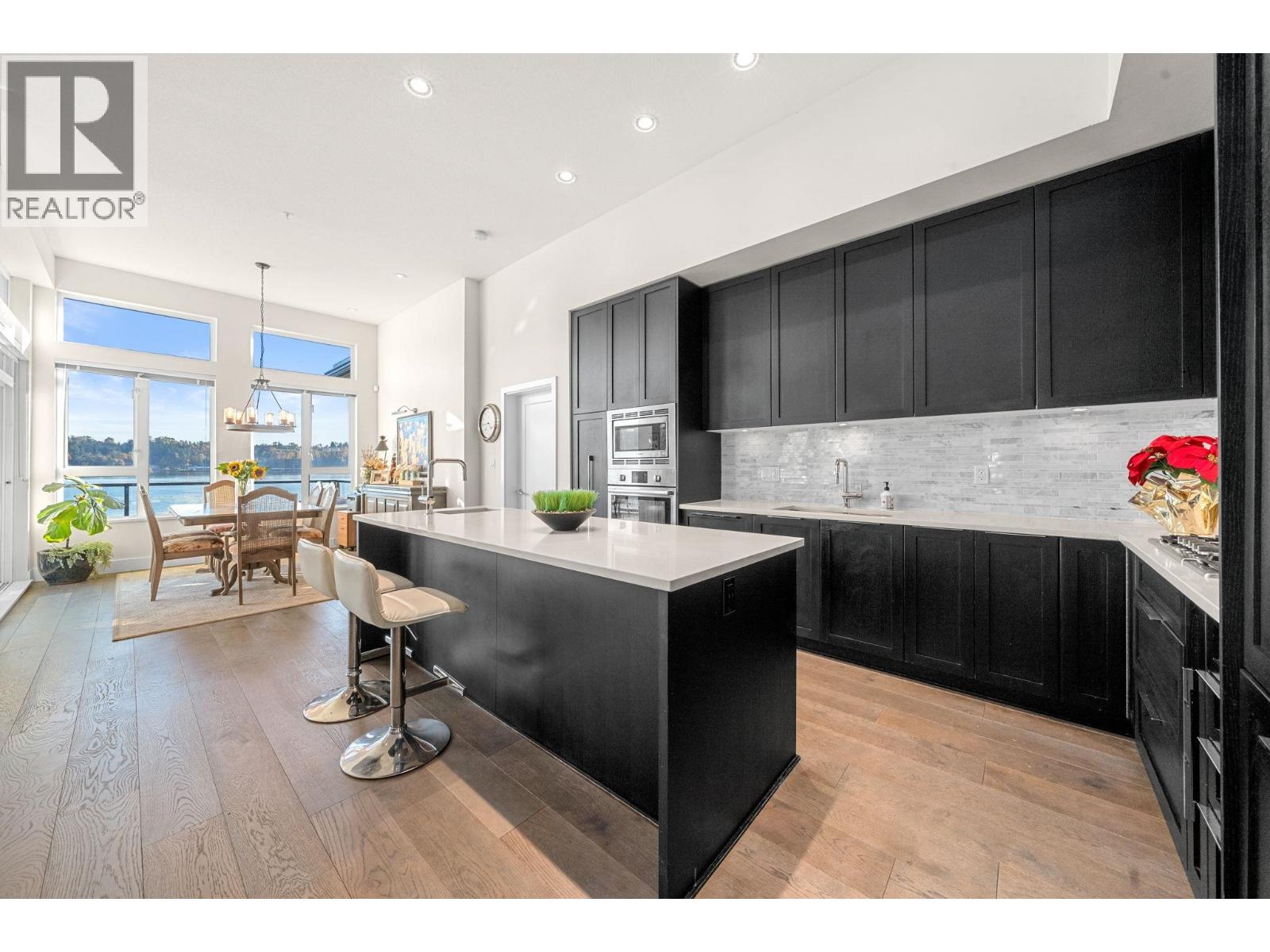 WATERFRONT LUXURY AT CATES LANDING. Experience the ultimate in North Shore waterfront living in this rarely available two-level townhome offering 2,942 sqft of beautifully finished space designed by renowned Keith Hemphill of RHA. Open-concept main showcases Bosch kitchen, stone counters, marble splash, 11´ ceilings, large entertainment island, and French doors seamlessly integrating the oversized view deck perfect for entertaining or taking in ocean views. Main-level offers large office, powder with limestone floor, 2-car garage, and primary suite with panoramic views, spa-inspired 5-pc ensuite, and walk-in closet. Two additional beds + 2 baths down, ample storage, full sized side-by-side laundry, and large family room opening to private fenced yard with direct waterfront access. Radiant in-floor heating, gas fireplace, hardwood flrs and plush carpeting round out this exclusive offering. Step onto the waterfront trail linking directly to Cates Park-or stroll to Deep Cove´s cafés and restaurants. Call today. (32406114)