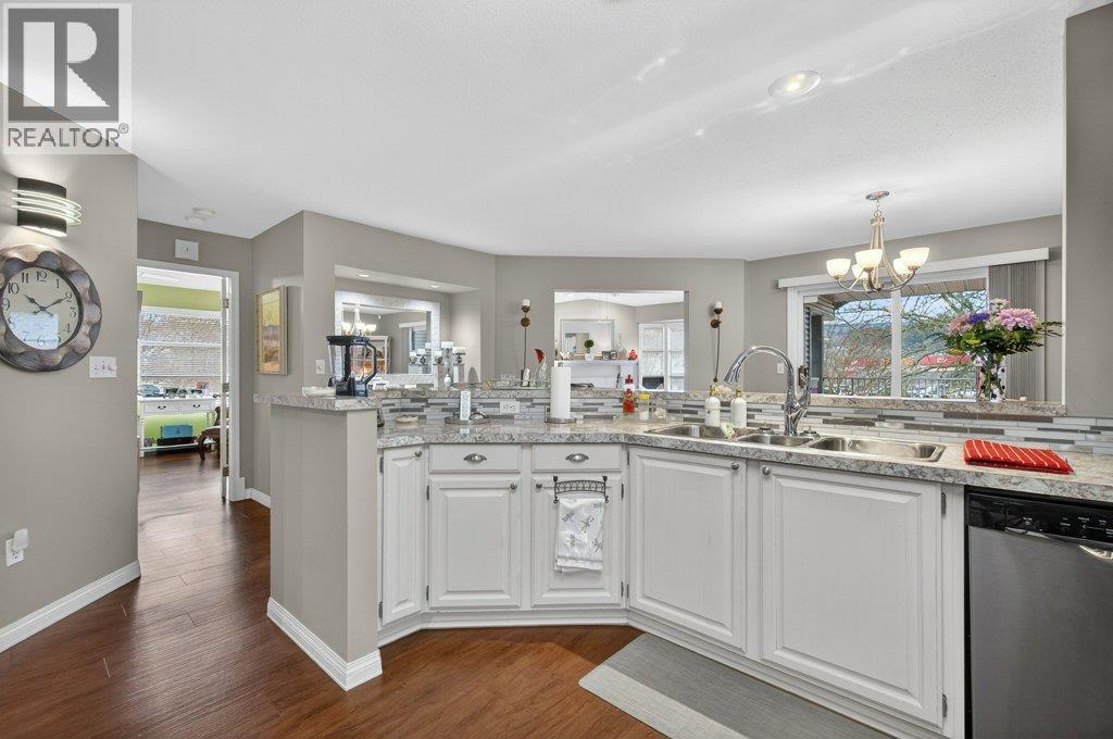 Welcome to Heron View, a quiet & well-maintained 55+ community offering a relaxed lifestyle in a central Salmon Arm location. This bright top-floor home offers 1,505 sq. ft. of thoughtfully designed living space with lake and mountain views. Vaulted ceilings, expansive windows, and a cozy fireplace create a warm and inviting living area, while the open dining space easily accommodates a full sized table and opens onto a balcony, perfect for enjoying morning sun and quiet surroundings. The home features 2 beds and 2 baths, including a spacious primary suite with walk-in closet, updated ensuite, & access to a second private balcony. This outdoor space offers the potential to be enclosed or converted into additional living space, such as expanding the primary bedroom - subject to strata approval. A standout feature is the double garage, providing excellent storage and workspace, along with additional storage room. Centrally located just minutes to the hospital, mall, shopping, dining, walking trails, & bird sanctuary, this move-in-ready home offers comfortable, low-maintenance living in a prime location. Features a spacious, updated kitchen, lots of cabinetry, updated appliances, sound-reducing vinyl plank flooring, In-suite laundry & central vacuum, updated hot water tank, baseboard heating & gas fireplace, security system,, chair lift available (optional inclusion) 2 balconies, one with storage closet, double garage with additional storage under stairs, strata$466.41/month Well-managed 55+ community, long-term rentals permitted, pet-friendly (up to two pets with restrictions). Short-term rentals not permitted. Age exceptions apply for spouses and caregivers per strata bylaws. (39694412)