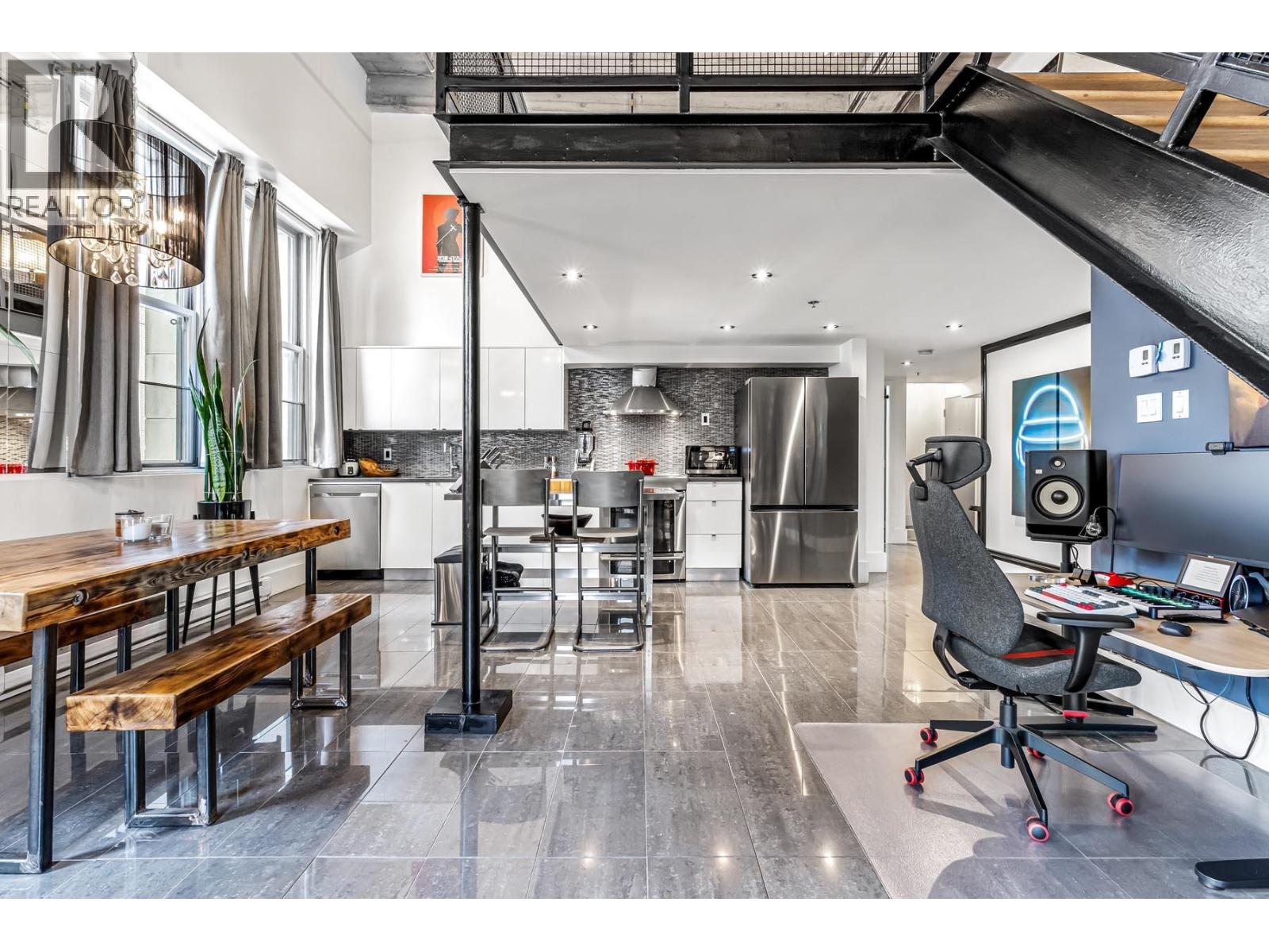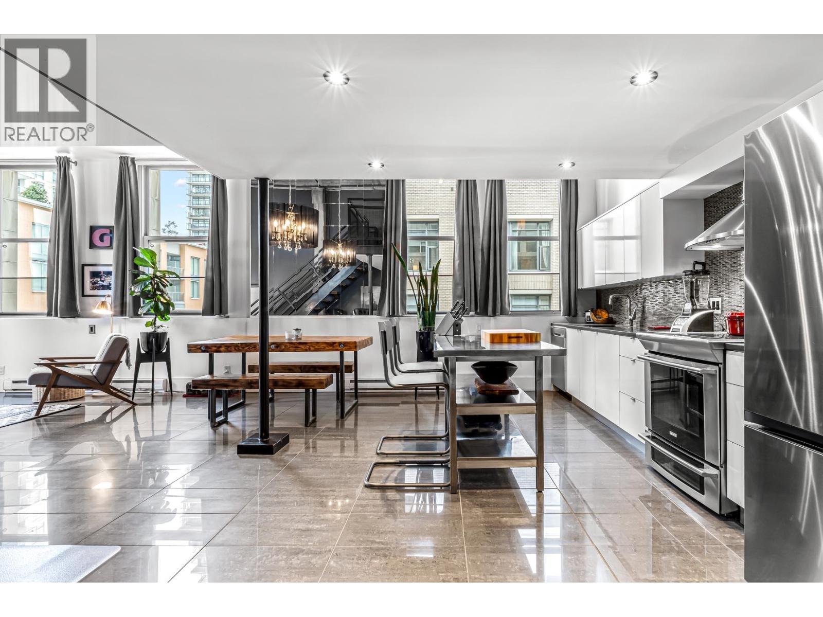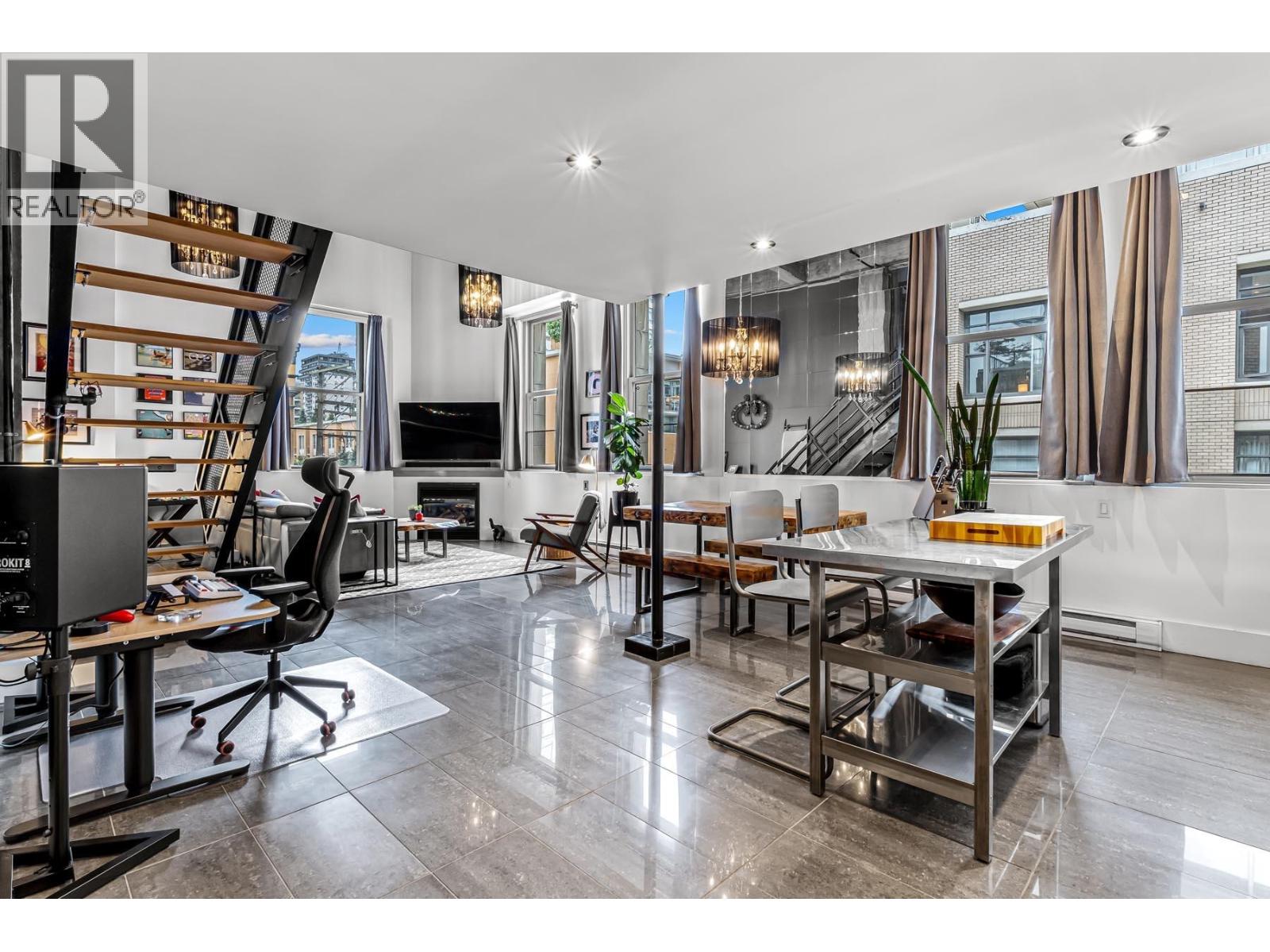 Step into this stunningly updated one bedroom, one and a half baths, loft, where modern elegance meets timeless charm. Featuring soaring ceilings, oversized windows, and an open concept layout, the space is flooded with natural light and thoughtfully designed for both comfort and style. The updated kitchen boasts high-end finishes, sleek cabinetry and stainless steel appliances, while the spacious bedroom offers a peaceful retreat. Ideal for entertaining or relaxing, this loft is a perfect blend of sophistication and function in every detail. Conveniently located in Downtown New West; close to transit, shopping, Skytrain and entertainment district. (32406133)