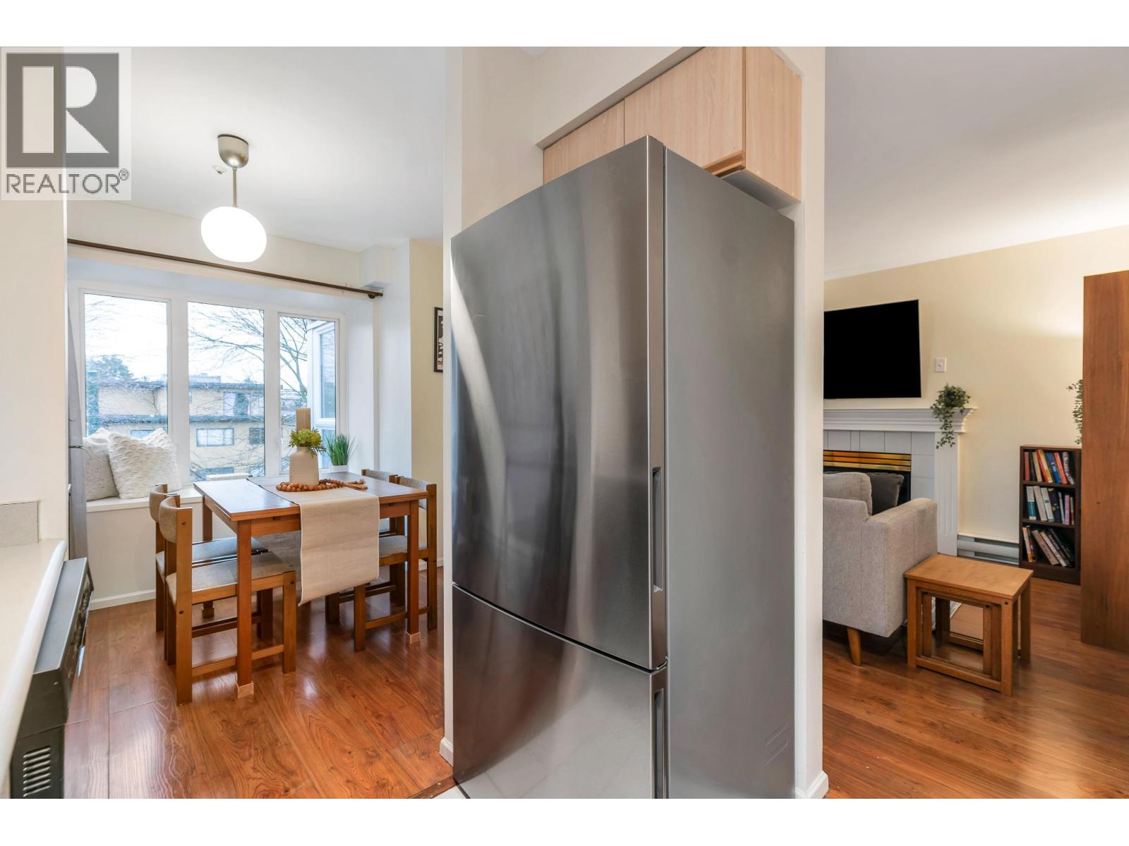 Welcome home to this bright and spacious top-floor, 856 sq ft, 2-bedroom corner unit at Harbourgate. Sunlight pours into this south and west-facing home. Enjoy downtown views and peek-a-boo mountain outlooks from both bedrooms. Large primary bedroom and bonus den/storage area and enclosed solarium offer flexible, year-round living space. You´ll love the unbeatable location-bus service at your doorstep for quick downtown access, Oxford park is just 2 blocks away, walkable schools at all levels, and vibrant breweries, restaurants, and shops along Hastings. Strata fee includes a cozy gas fireplace. Comes with 1 parking and bike storage. Book your private showing today. Open House Sat Feb 7 from 1-3pm. (32406180)