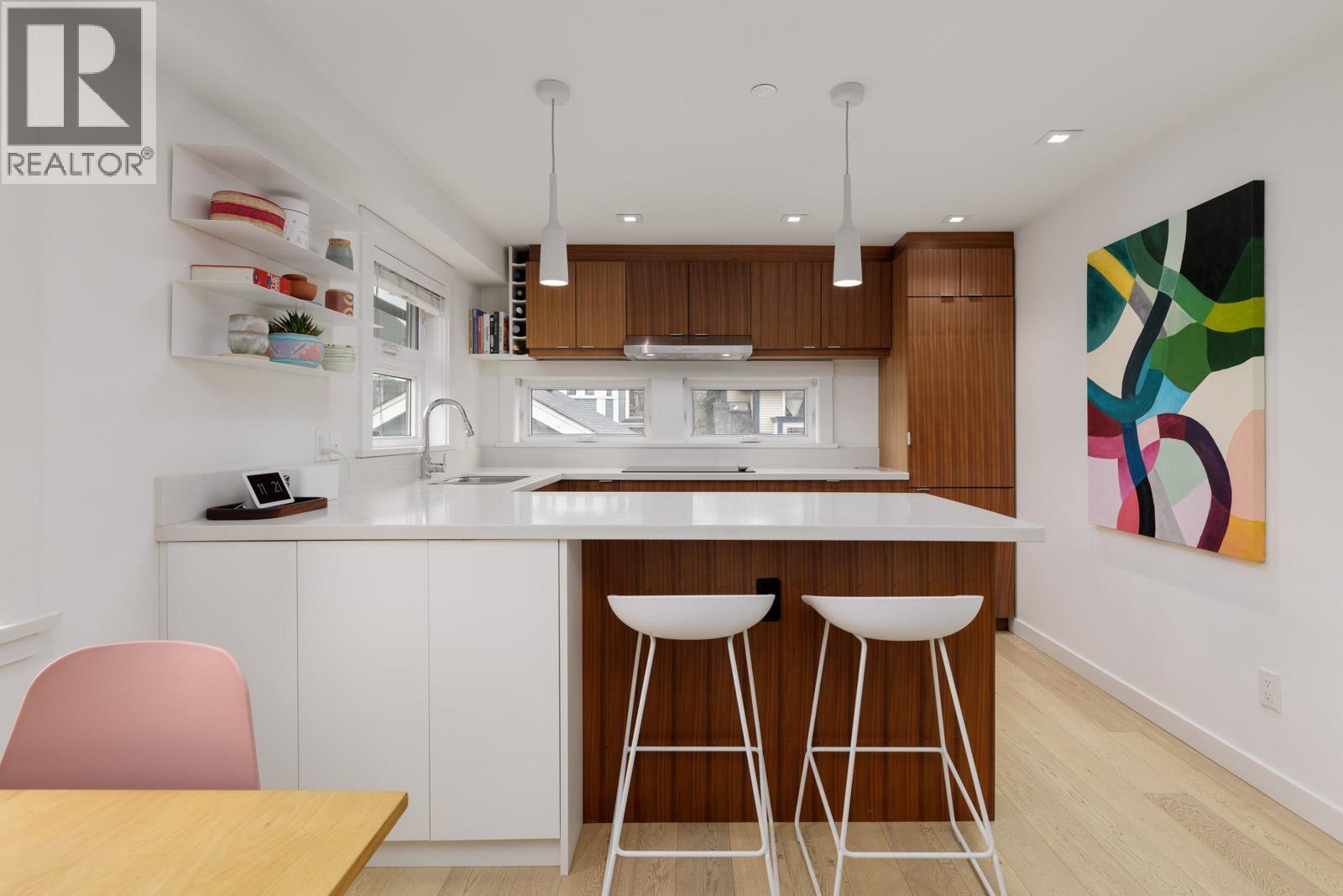 Welcome home to Union Street & Heatley Avenue, situated in the highly sought-after Strathcona neighbourhood. This Craftsman-style coach house offers an open-concept floor plan with engineered wide-plank oak hardwood flooring, over-height ceilings, and windows that flood the space with natural light. The gourmet kitchen offers custom walnut cabinetry, integrated appliances, quartz countertops, and a generous peninsula with bar seating, perfect for everyday living and entertaining. Enjoy seamless indoor-outdoor living with a private 200 square ft patio, or retreat upstairs to the primary bedroom balcony overlooking North-facing mountain views. Nestled in the Strathcona neighbourhood, this home is surrounded by beautiful parks and an abundance of shopping, cafes, and restaurants. (32406205)
