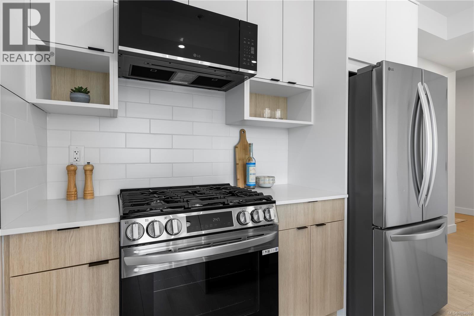 Welcome to Millstream Residences, built by renowned developer Landvision. This functional and thoughtfully designed 1 bedroom home offers 562 sqft of living space as well as a nice sized balcony, perfect to enjoy during the warm summer months. The open living space features oversized windows that flood the space with tons of natural light, durable neutral flooring and matte black hardware and details throughout that anchor the home. The kitchen features SS LG appliances, quartz countertops and island and two-tone cabinetry with ample room for storage. The building features a large outdoor space where you can connect with your neighbours and enjoy the green spaces, seating, BBQ’s and playground. Centrally located in the heart of Langford, you are just minutes from amazing amenities and recreation, schools, hiking trails, parks and lakes. (30345062)