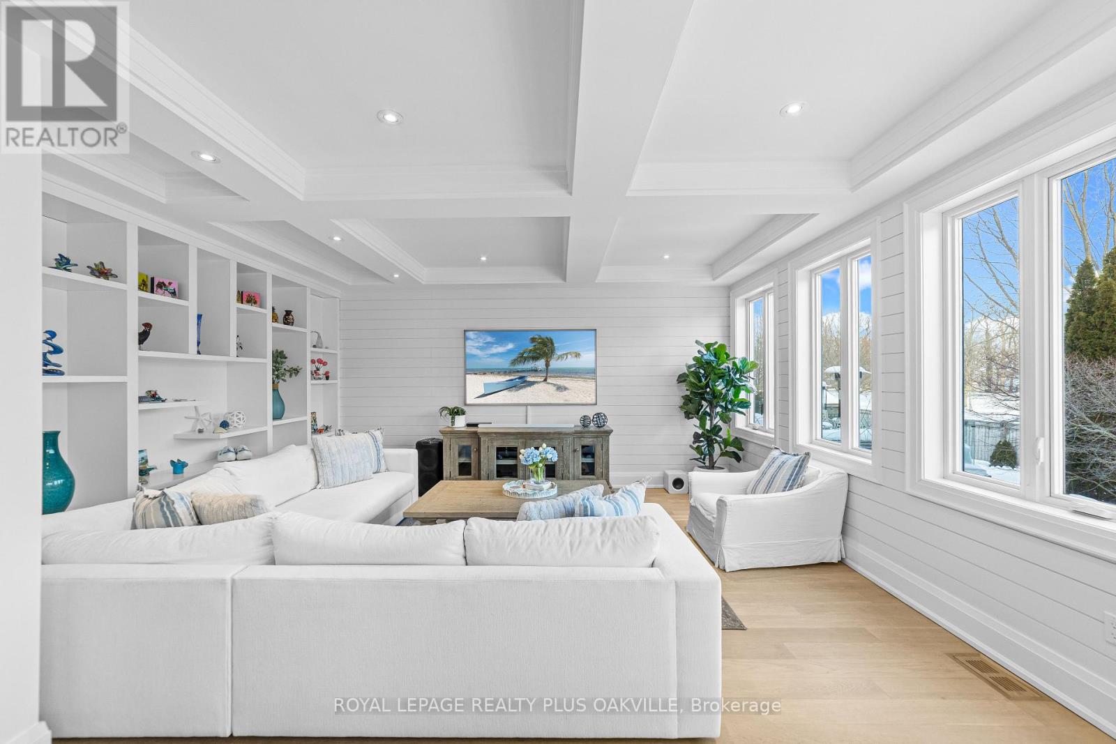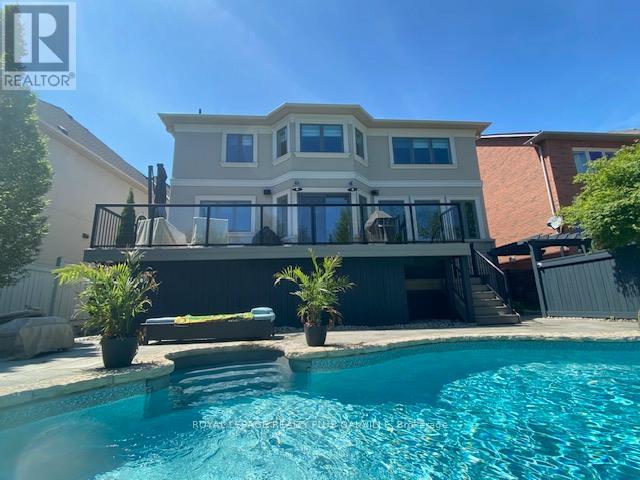 Professionally renovated top to bottom, this exceptional residence showcases refined craftsmanship, thoughtful design & timeless appeal. A dramatic foyer features a floating white oak staircase with glass surround, 9' ceilings, Bellevue brushed white hardwood flooring throughout main floor. Custom kitchen is a true showpiece with Cambria counters, ceramic backsplash, large island with seating, & a premium appliance package including Sub-Zero built-in fridge with freezer drawers, Wolf induction cooktop, built-in microwave & Asko dishwasher. An eat-in area and walkout to the backyard overlooking the pool, ideal for everyday living. Main floor offers a family room with coffered ceilings, shiplap accent walls & custom built-ins. A bright den with built-in desk and shelving & a functional mudroom with inside access to the double garage complete this level. Upstairs the spacious primary suite features a walk-in closet, spa-inspired 5-piece ensuite with double vanity, soaker tub & separate shower. Separate dressing room with center island & built-in organizers (formerly 4th bedroom) adds a boutique-style touch. Additional bedrooms include one with private ensuite, balcony & walk-in closet, plus another with walk-in closet & semi-ensuite. The finished basement includes high ceilings, new carpet, large recreation room with bar, games area, separate exercise room, lower-level laundry, & 2-piece powder room. Originally part of the Waterview Collection, this property backs onto greenspace with winter lake views. The exterior impresses with stone & stucco detailing, extensive hardscaping & outstanding curb appeal. The private, multi-level backyard features a stone patio, composite deck with gas BBQ line, irrigation system, professionally maintained inground saltwater pool with three wall fountains, newer liner, updated heater & salt cell, plus hot tub. Double garage doors replaced with parking for up to four cars. Walk to the lake, waterfront trail, beach & parks. (42075079)
