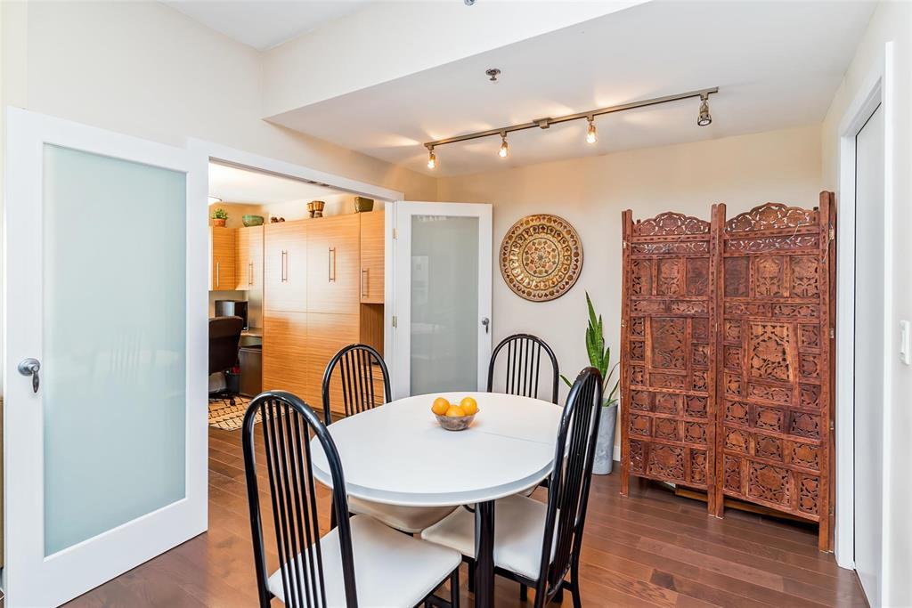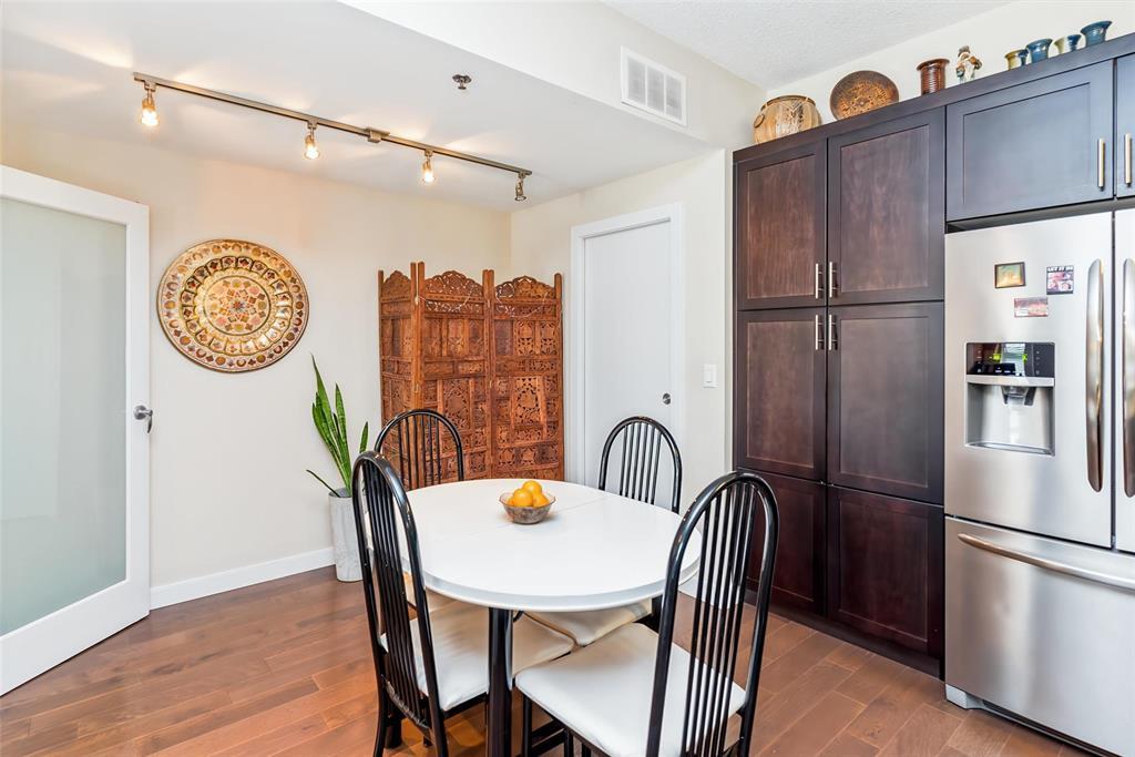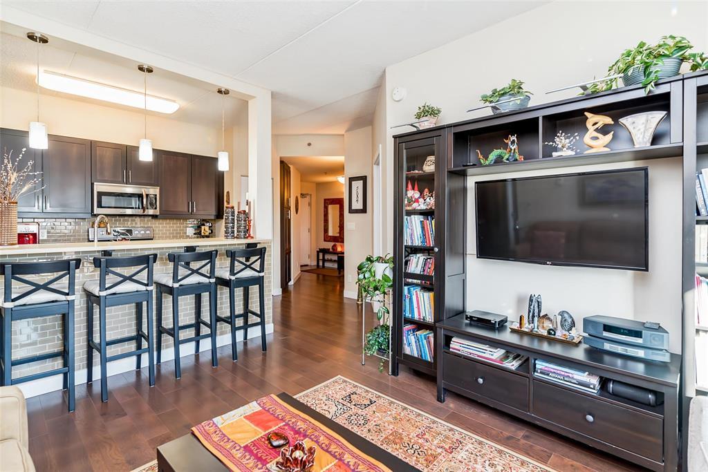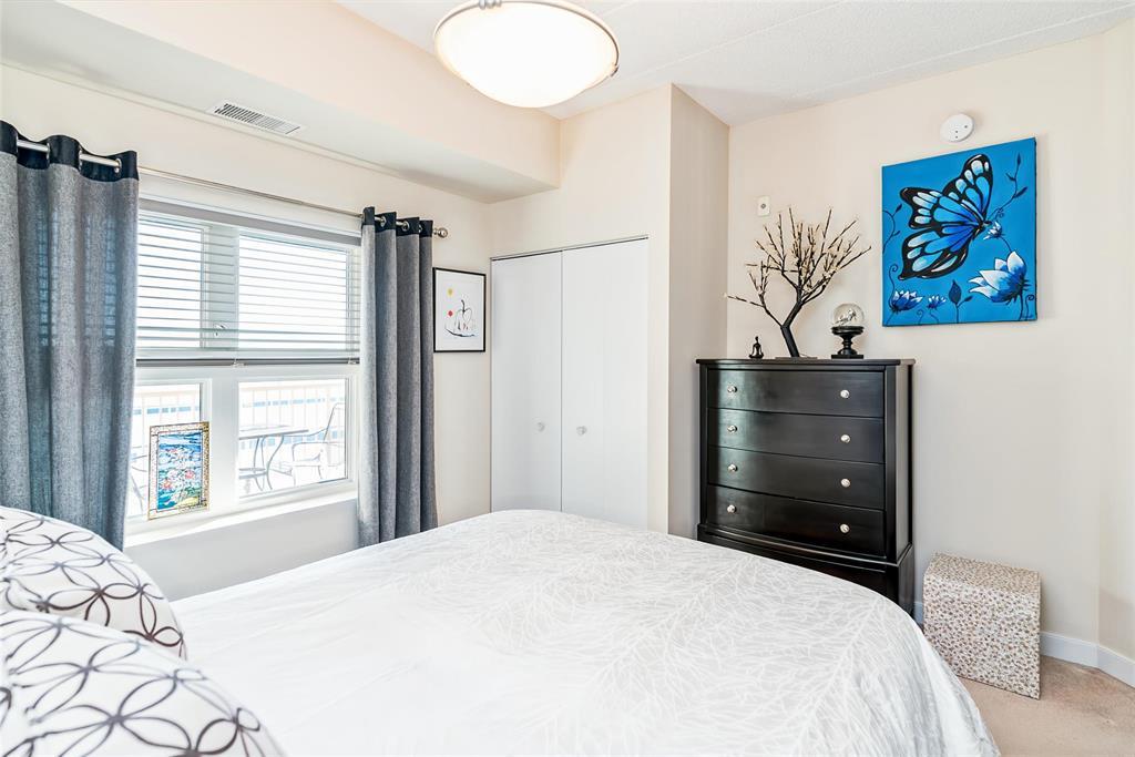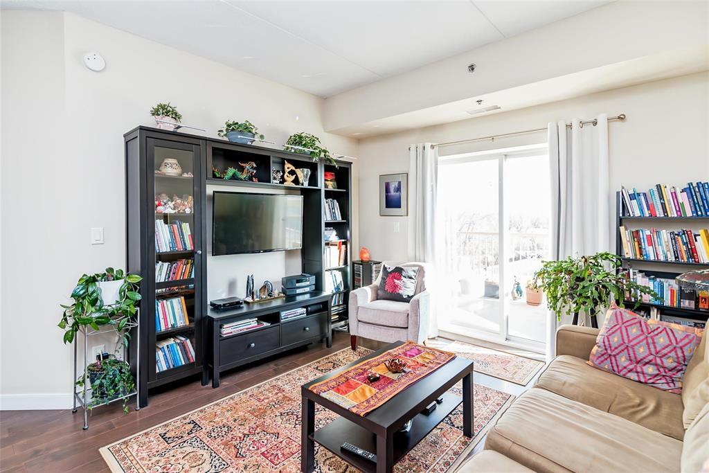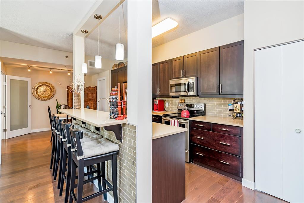 2F//Winnipeg/A beautifully maintained 907 sqft 1-bedroom plus den condo at Oxbow on the Seine, offering 2 parking spots, an open-concept layout, espresso kitchen with quartz counters, a sunny south-facing exposure, superior concrete & steel construction, 2 parking stalls and a prime location steps from Seine River trails. The espresso-toned kitchen features quartz countertops, subway tile backsplash, stainless steel appliances, and a generous breakfast bar with seating for four, perfect for casual meals or entertaining. Hardwood floors, high ceilings, and large windows enhance the airy feel throughout. The primary bedroom is impressively spacious and enjoys sunny south-facing views, while the versatile den, bathed in natural light, is thoughtfully outfitted with a built-in Murphy bed and desk, making it ideal for guests, hobbies, or a home office. The bathroom is well designed, and the unit is complete with a dedicated laundry room offering additional storage + additional storage unit on your floor! Enjoy scenic walking paths, mature trees and frequent wildlife sightings along the Seine River - immediately outside your door. All of this while still enjoying the ease of low-maintenance condo living. Come and see! (231922164)