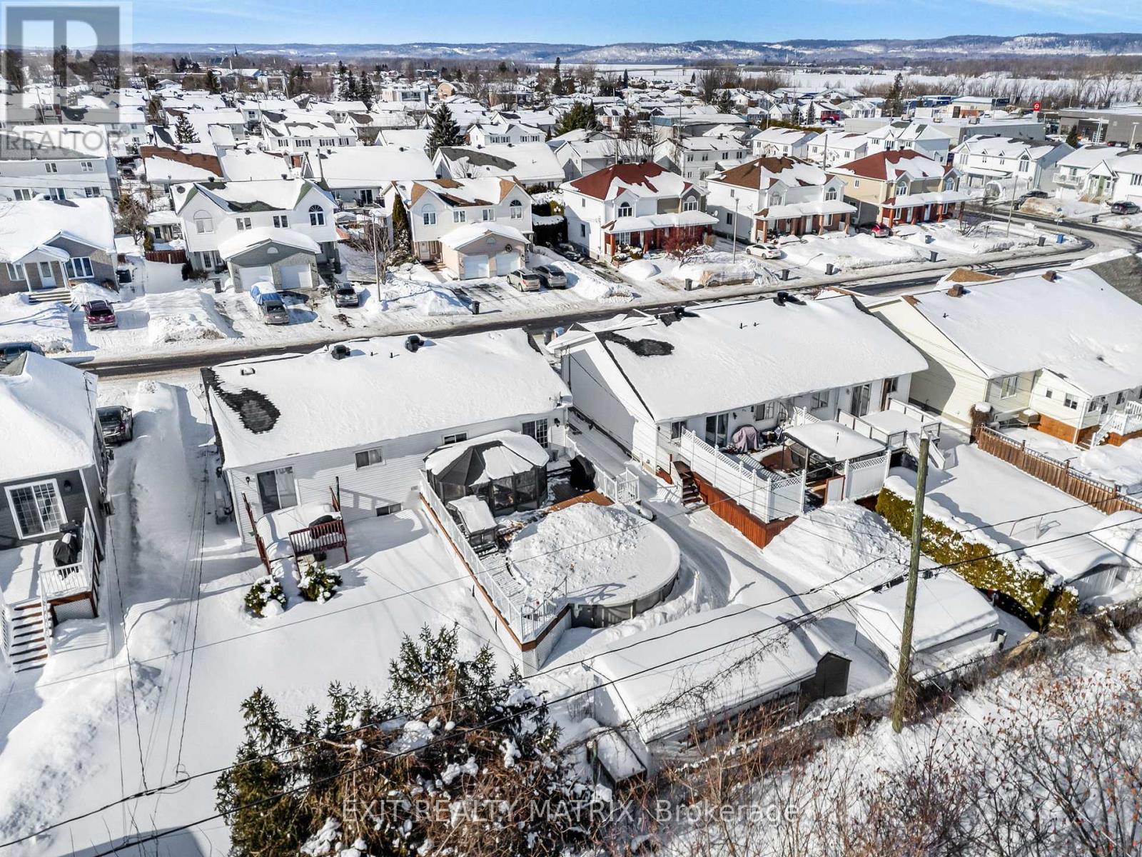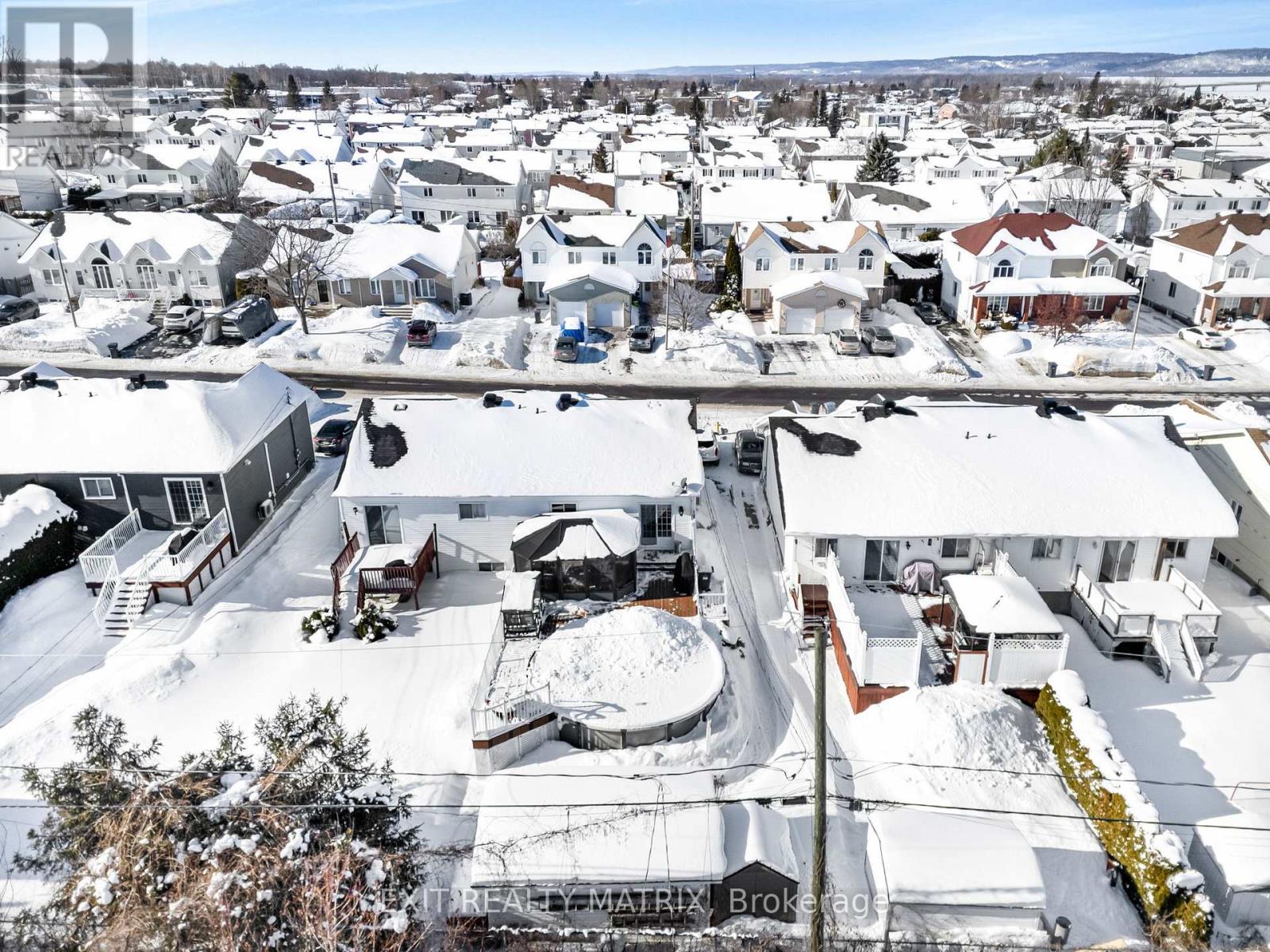 SEMI-DETACHED home, ideally located on a quiet dead-end street at 443 Christine Street in Hawkesbury. The main floor offers a bright open-concept living room with bow window, dining area, and kitchen with epoxy countertops, beautifully redone in 2014 and complete with refrigerator, built-in cooktop & stove, and dishwasher. The primary bedroom and a full bathroom are also conveniently located on the main level. This home is designed for everyday comfort with features such as central vacuum and a wall-mounted air conditioning unit. The fully finished basement provides two additional bedrooms, a partial bathroom, and extra space perfect for a family room or recreational area. Step outside to enjoy a private backyard oasis featuring extensive hardscaping, a composite deck, a natural gas Napoleon BBQ, an above-ground pool, and a 10 x 20 storage shed. The roof was redone in 2011, adding peace of mind for future owners. A great opportunity to own a move-in-ready home in a desirable, family-friendly neighborhood. (42075341)