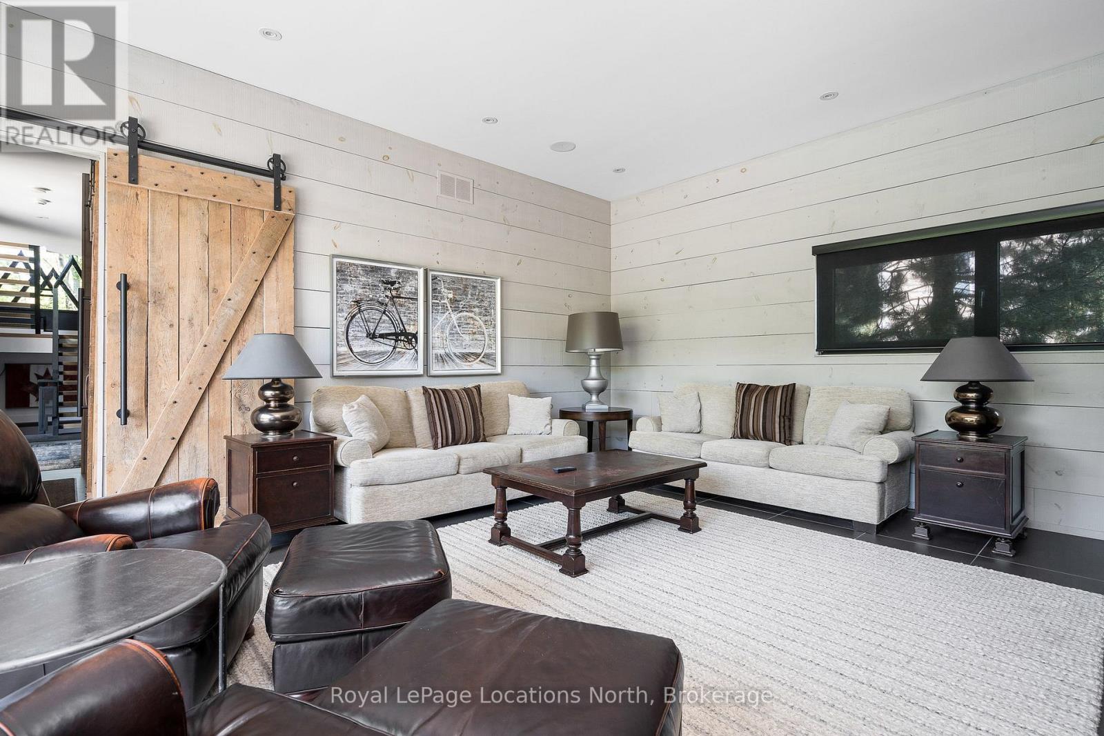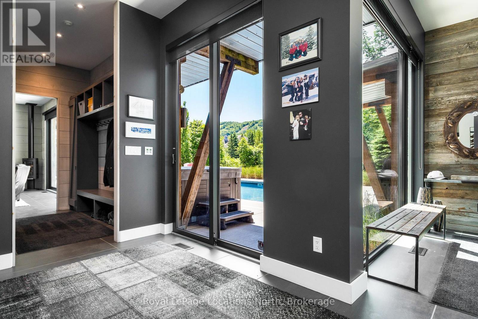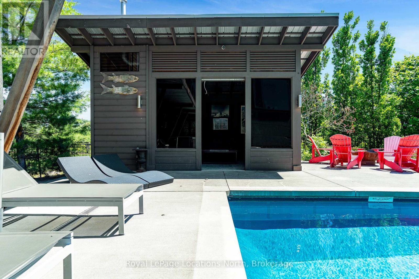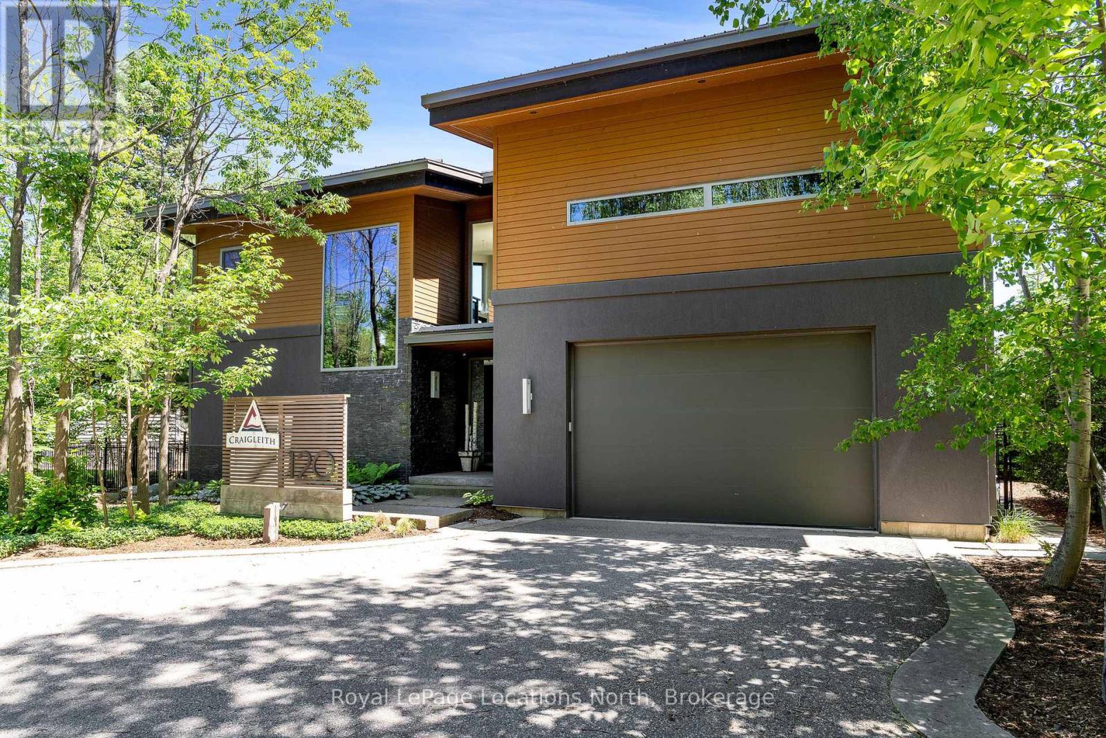 An Architecturally Iconic Luxury Ski Chalet, just steps from Craigleith. This celebrated retreat offers a rare balance of total privacy and effortless access, moments from the ski hills and tennis courts. Set on an expansive 100' x 159' lot backing onto tranquil green space, the property is beautifully landscaped to create a true four-season sanctuary. Designed for elevated mountain living, the chalet features a resort-style swimming pool, pool house, and hot tub, all framed by dramatic TILCO lift-and-slide window walls across two levels, capturing sweeping views of the ski hills and grounds beyond. Spanning three levels, the residence offers six luxurious bedrooms and four bathrooms. The upper-level great room is a showpiece, with soaring 22-foot ceilings, a Rumford-style gas fireplace, and a cantilevered walk-out deck-perfect for après-ski gatherings. The chef's kitchen is outfitted with premium appliances, a striking island, and a walk-in pantry, seamlessly blending form and function.The private primary suite occupies the upper level as well, featuring a distinctive walk-in closet and serene views. On the main floor, a sophisticated media lounge opens directly to the pool deck through expansive sliding doors and includes a wet bar / kitchenette, and fireplace, along with two additional bedrooms and full bath. The lower level completes the home with three generously sized bedrooms and another bath, ideal for hosting family and guests. This exceptional ski chalet is offered for immediate possession - an unparalleled opportunity to own a landmark retreat in one of the area's most coveted locations. (42075247)