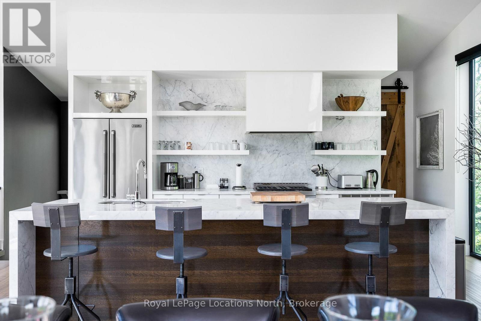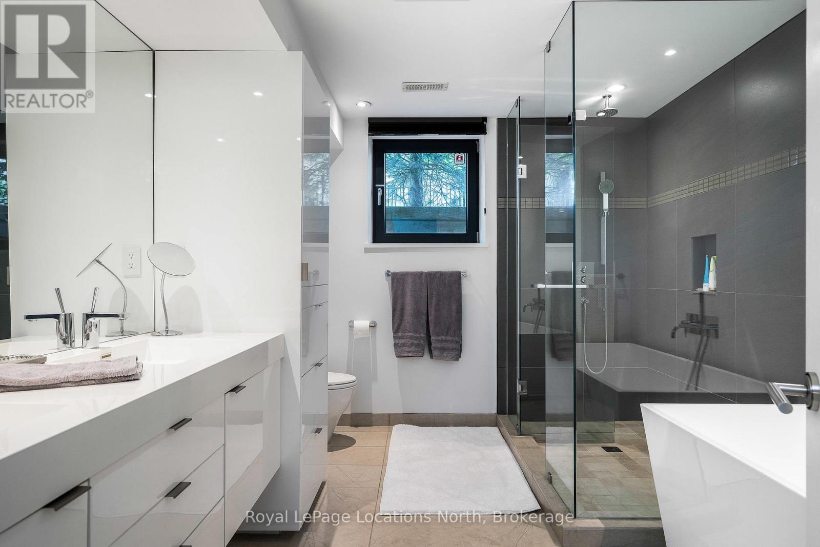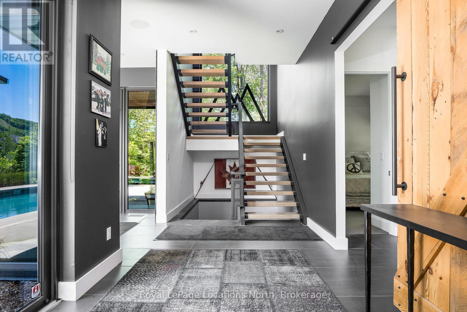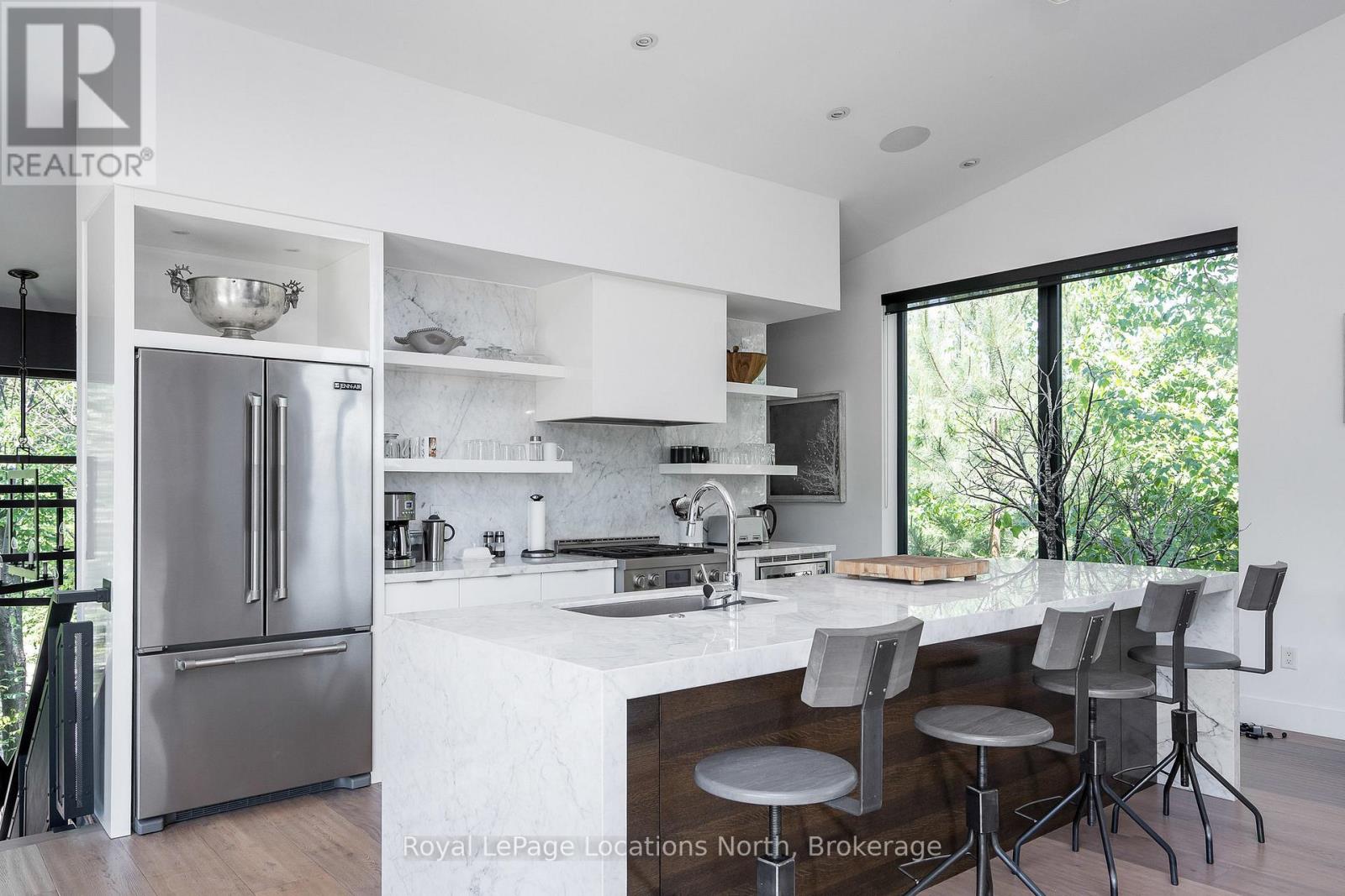 An Architecturally Iconic Luxury Ski Chalet, just steps from Craigleith. This celebrated retreat offers a rare balance of total privacy and effortless access, moments from the ski hills and tennis courts. Set on an expansive 100' x 159' lot backing onto tranquil green space, the property is beautifully landscaped to create a true four-season sanctuary. Designed for elevated mountain living, the chalet features a resort-style swimming pool, pool house, and hot tub, all framed by dramatic TILCO lift-and-slide window walls across two levels, capturing sweeping views of the ski hills and grounds beyond. Spanning three levels, the residence offers six luxurious bedrooms and four bathrooms. The upper-level great room is a showpiece, with soaring 22-foot ceilings, a Rumford-style gas fireplace, and a cantilevered walk-out deck-perfect for après-ski gatherings. The chef's kitchen is outfitted with premium appliances, a striking island, and a walk-in pantry, seamlessly blending form and function.The private primary suite occupies the upper level as well, featuring a distinctive walk-in closet and serene views. On the main floor, a sophisticated media lounge opens directly to the pool deck through expansive sliding doors and includes a wet bar / kitchenette, and fireplace, along with two additional bedrooms and full bath. The lower level completes the home with three generously sized bedrooms and another bath, ideal for hosting family and guests. This exceptional ski chalet is offered for immediate possession - an unparalleled opportunity to own a landmark retreat in one of the area's most coveted locations. (42075247)