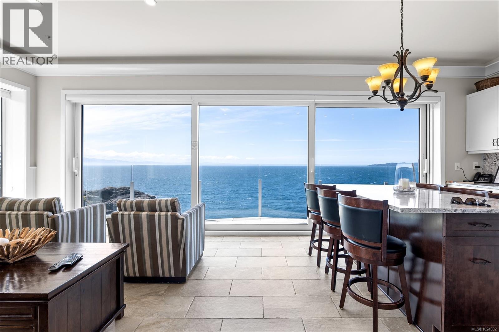 Immerse yourself in the epitome of coastal luxury at this stunning south-west facing SookePoint Cottage, perched directly above a vibrantly active marine panorama. Revel in an architecturally elegant open-concept living and kitchen area, framed by an expansive tri-panel sliding glass wall that invites uninterrupted views toward the Olympic Mountains, out to the vast Pacific, and over to the picturesque Sooke Hills. Breathe in the fresh sea air and marvel as the waves roll in on the rock formations below. This exquisitely furnished and fully equipped two-bedroom, two-bathroom waterfront haven spans 1035 square feet of single-level opulence, featuring state-of-the-art Insulated Concrete Form (ICF) construction for superior efficiency and soundproofing. Luxuriate in the sophisticated interior adorned with top-tier cabinetry, sleek stainless steel appliances, and pristine quartz countertops. Each bedroom is a sanctuary, complete with a snug electric fireplace. While the master suite boasts a lovely ensuite with separate shower, the main bath features shower and freestanding soaking tub. SookePoint offers an exclusive ''lock & go'' lifestyle, combining sublime luxury with the flexibility of a rental option when away. (30345045)