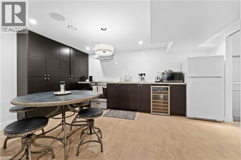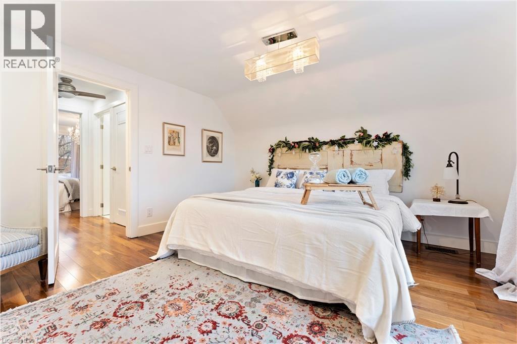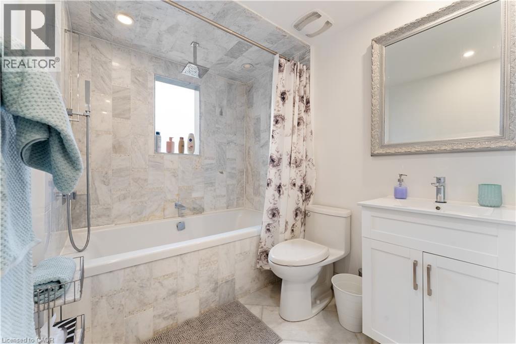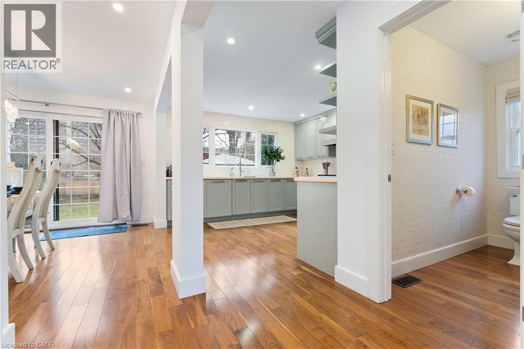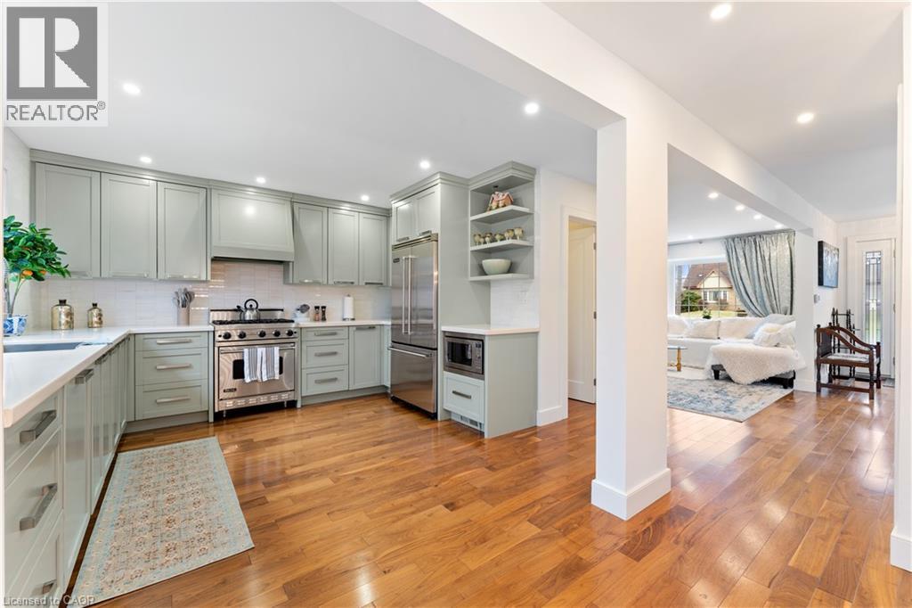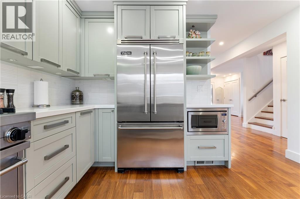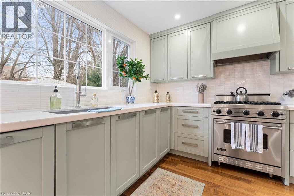 Walk to downtown and the lake from this beautifully renovated home on a quiet cul-de-sac. Set on an oversized 150-ft deep private lot, the property features mature perennial gardens and an interlock walkway leading to the front entrance. The open-concept main floor offers large windows, a gas fireplace, and a custom kitchen equipped with premium Viking appliances, including a gas range, dual-door refrigerator, panelled dishwasher, and built-in microwave. Patio doors off the dining area open to a private backyard with a custom wood deck and generous lawn surrounded by mature trees. Upstairs are two spacious bedrooms and a fully renovated 4-piece bathroom. The finished basement includes a separate entrance, kitchen space, open layout, and laundry, offering excellent flexibility. Ideally located within walking distance to Spencer Smith Park and Brant Street's shops and restaurants, with quick access to the QEW, Mapleview Mall, and daily amenities. (70120978)