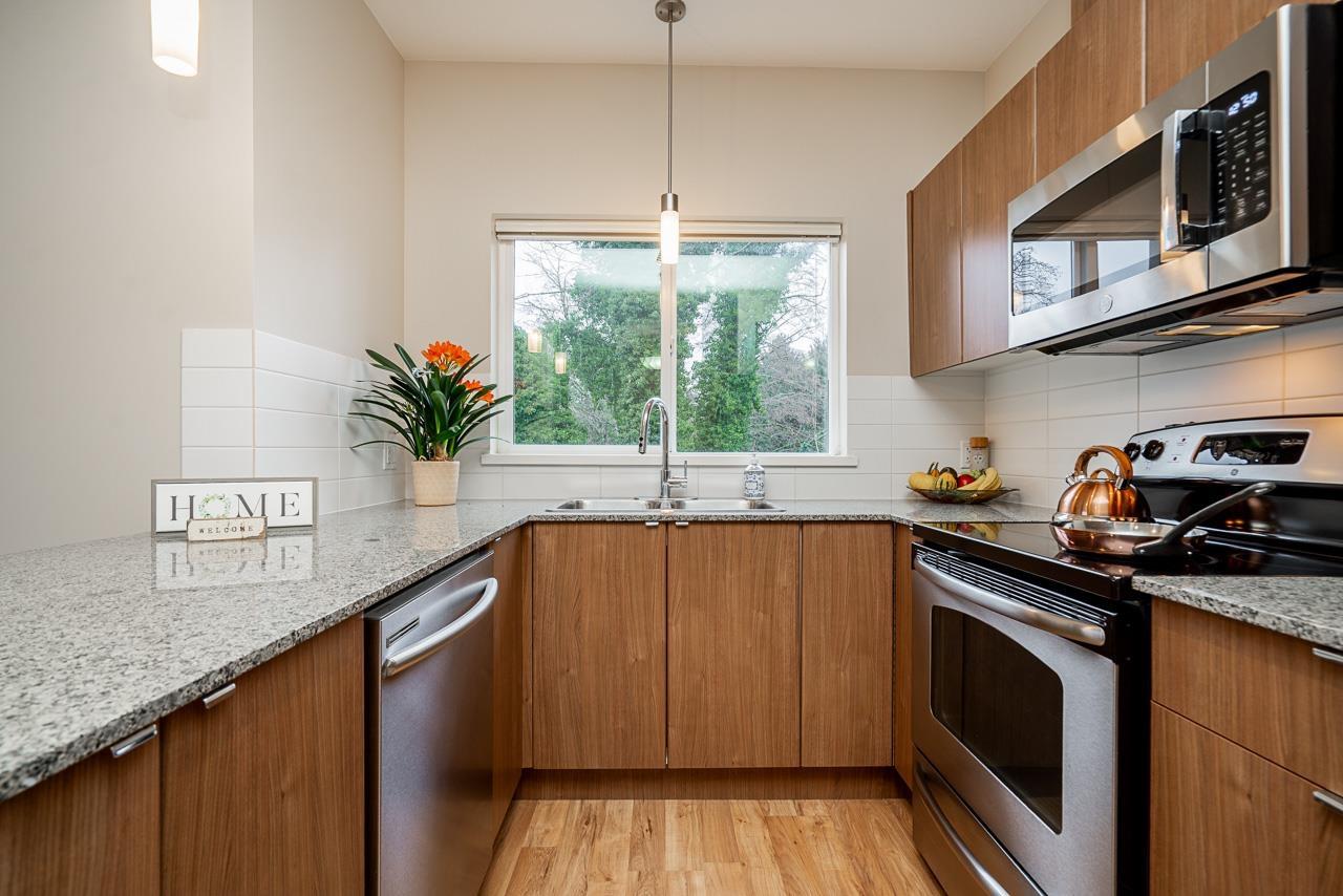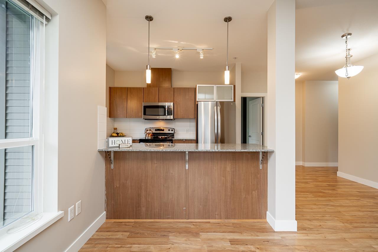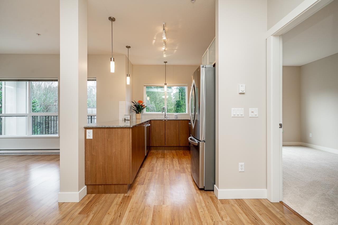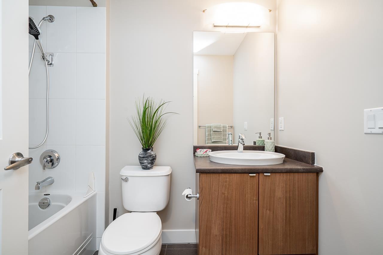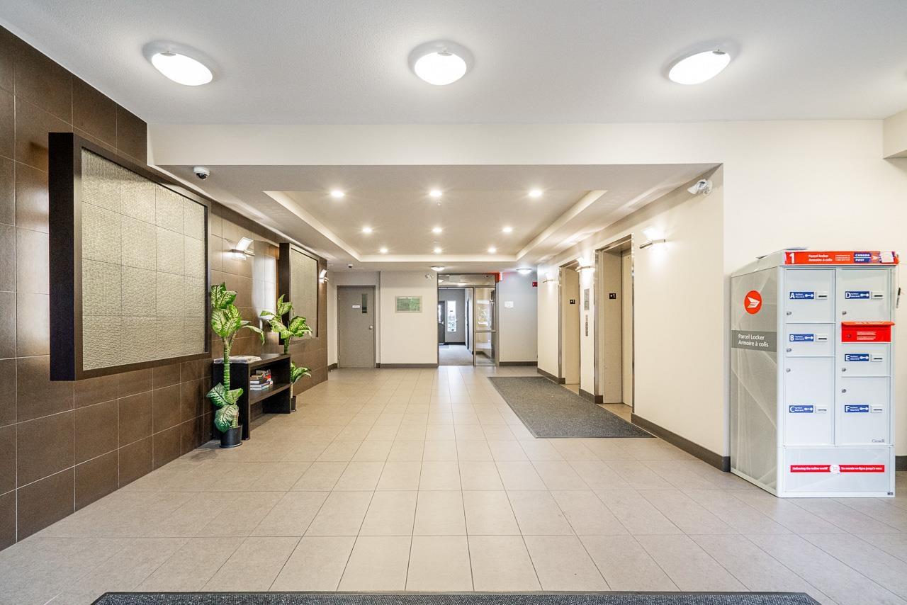 Hurry to view this spotless, quiet, corner apartment at GRUV. Like new condition, both bedrooms are spacious and both have their own bathrooms. Large wrap around covered NW facing balcony overlooking peaceful greenbelt. Stainless steel appliances, granite countertops, new carpets in bedrooms and fresh interior paint throughout. Open plan with breakfast bar, window in kitchen and plenty of natural light. Walk through closet in primary bedroom. Gym and amenity room, central hot water. Plenty of visitor parking with ample EV outlets. Walk to King George Station, SFU, Central City Mall, Holland Park and Surrey Memorial Hospital. Possession anytime. Underground secure parking and bike area. Pet friendly. Competitive price you won't be disappointed. (32406623)