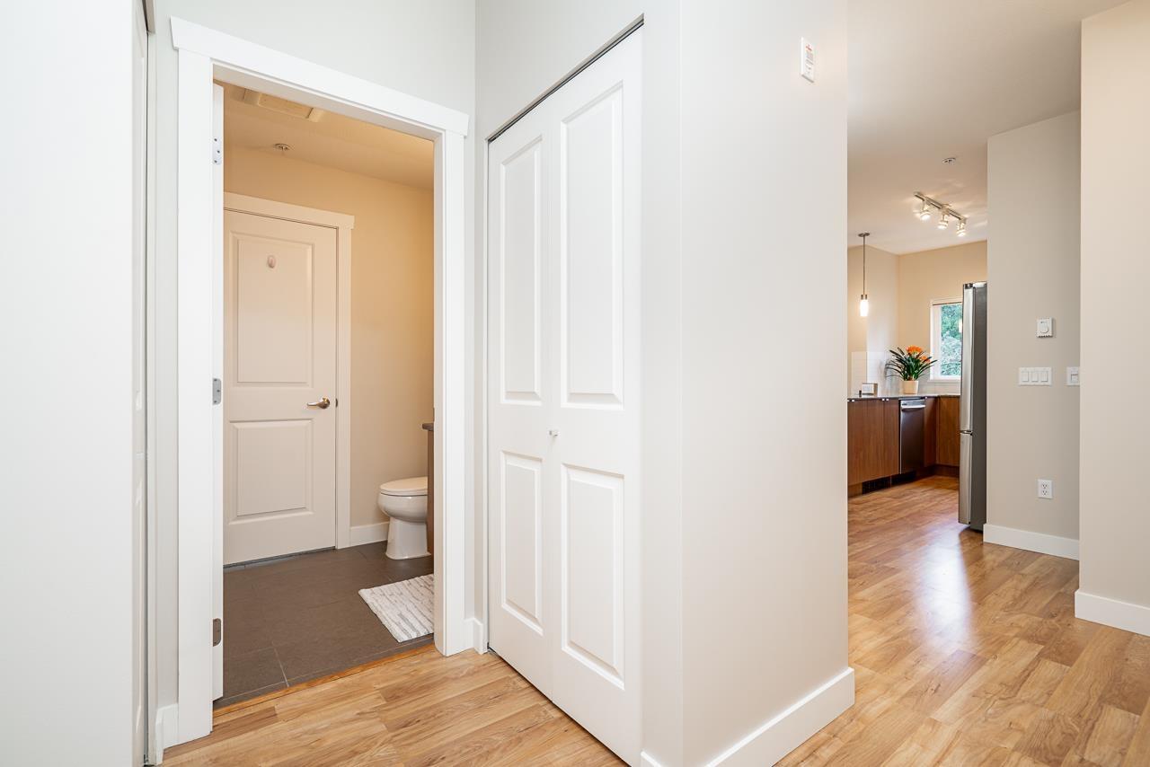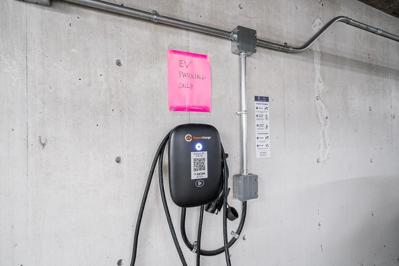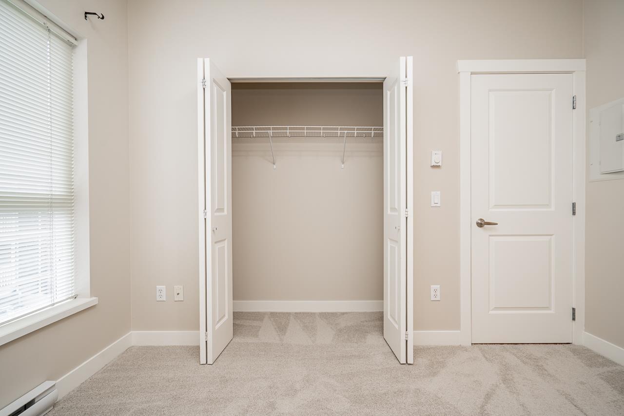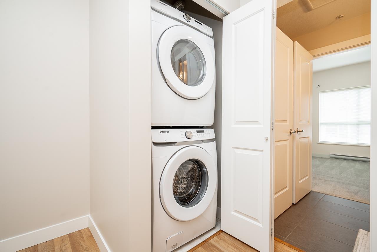 Hurry to view this spotless, quiet, corner apartment at GRUV. Like new condition, both bedrooms are spacious and both have their own bathrooms. Large wrap around covered NW facing balcony overlooking peaceful greenbelt. Stainless steel appliances, granite countertops, new carpets in bedrooms and fresh interior paint throughout. Open plan with breakfast bar, window in kitchen and plenty of natural light. Walk through closet in primary bedroom. Gym and amenity room, central hot water. Plenty of visitor parking with ample EV outlets. Walk to King George Station, SFU, Central City Mall, Holland Park and Surrey Memorial Hospital. Possession anytime. Underground secure parking and bike area. Pet friendly. Competitive price you won't be disappointed. (32406623)