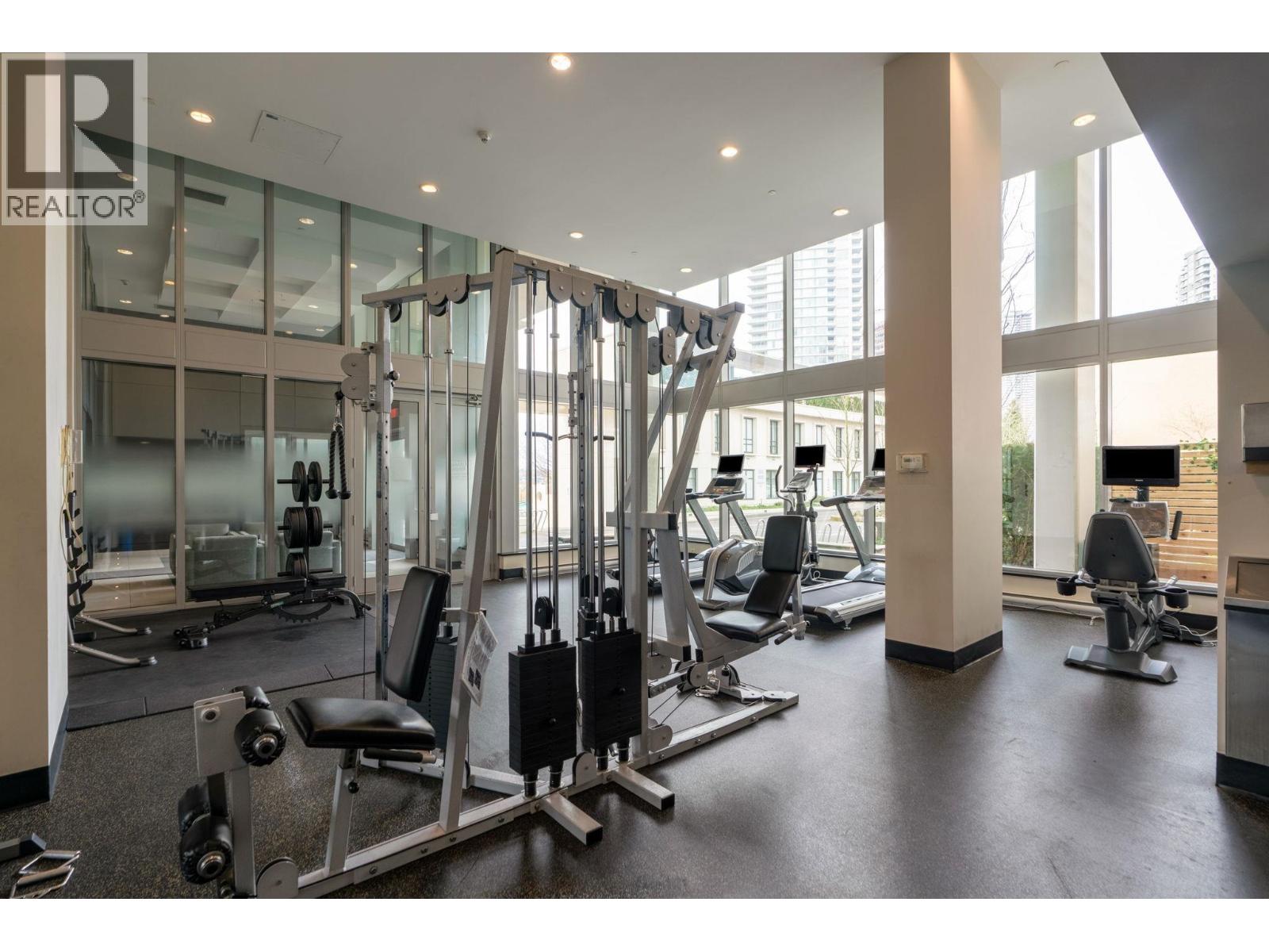 Welcome to Affinity II by BOSA, offering quality construction and exceptional convenience. This bright, well-maintained south-facing 1-bedroom plus large den features an open-concept layout designed for modern living. The versatile den is ideal for a home office. The gourmet kitchen is appointed with granite countertops, gas cooktop, and stainless steel appliances. Building amenities include a fully equipped fitness centre, party room, guest suite, and landscaped garden terrace with ample green space. Prime location steps to SkyTrain, Brentwood Mall, shopping, dining, and more. OPEN HOUSE: Sat & Sun, Feb 7th/8th, 2-4PM (32406614)