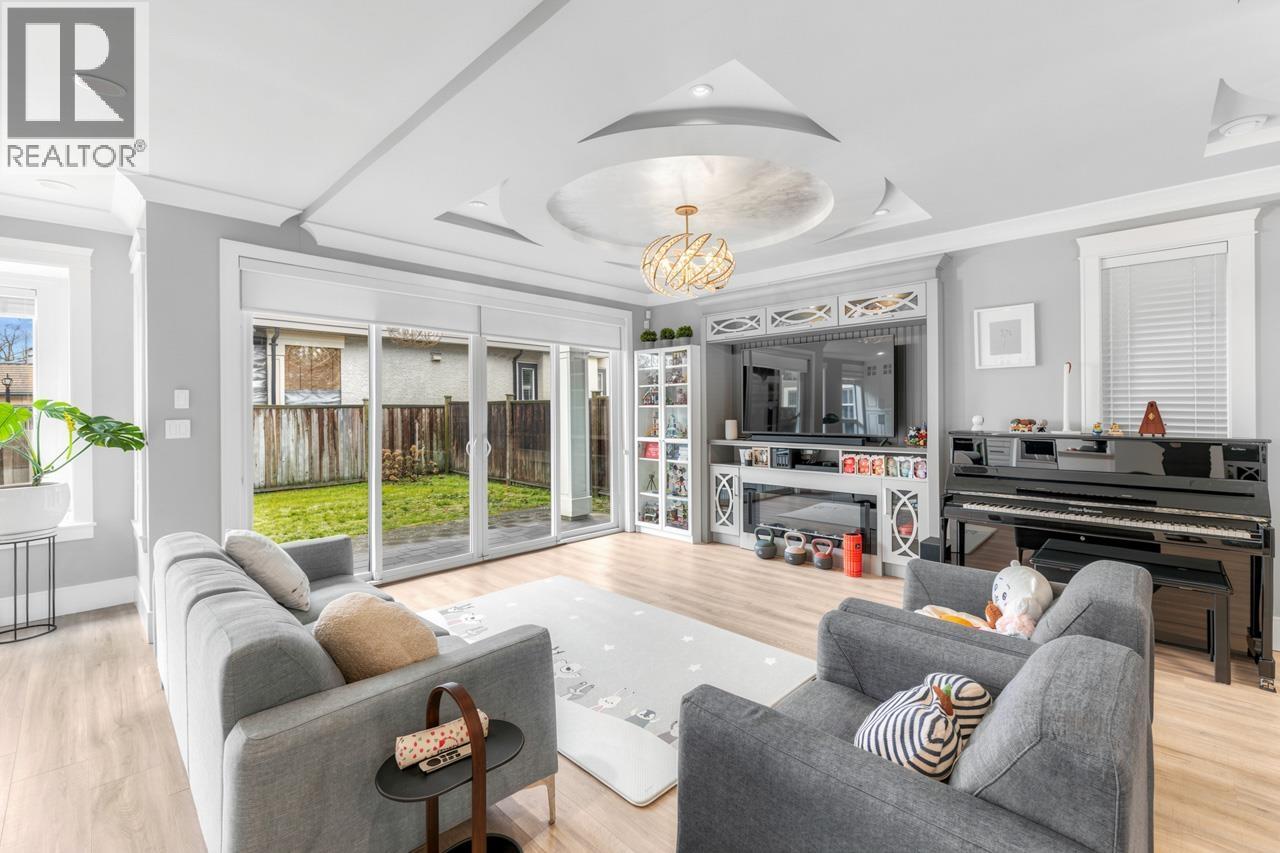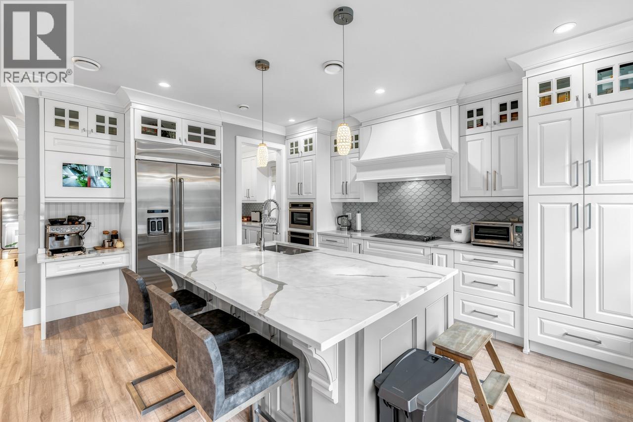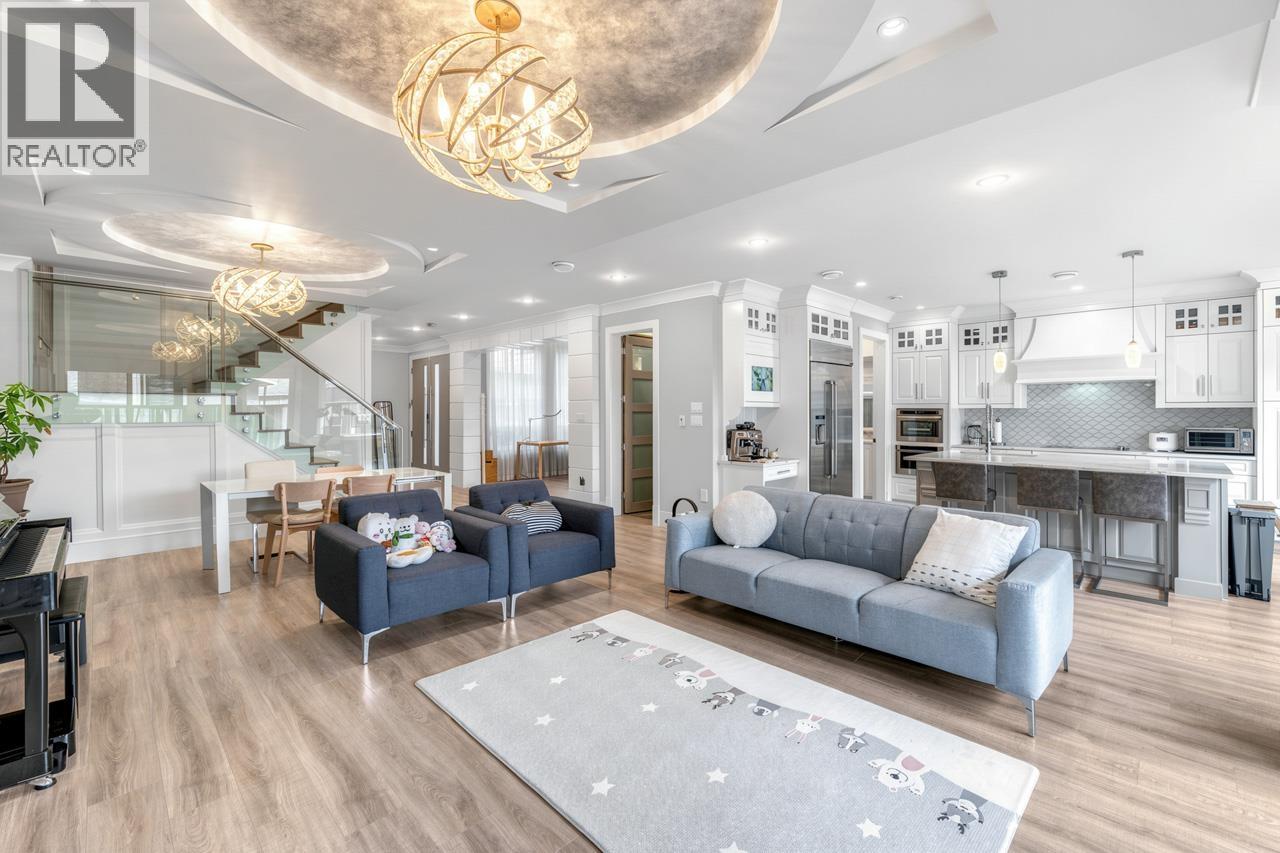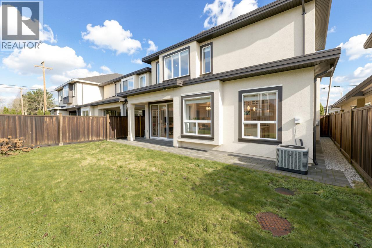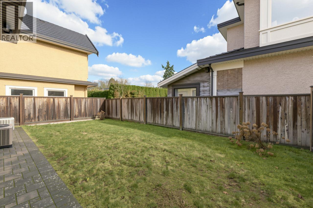 This meticulously crafted residence offers over 2,400sf of refined living space with 4 generously sized bedrooms & 3.5 elegant bathrooms, thoughtfully designed to max. comfort, function, & natural light, all complemented by a desirable south-facing backyard. The open-concept layout showcases soaring ceilings in the living & dining areas, creating a bright & expansive atmosphere ideal for both everyday living & sophisticated entertaining. Premium finishes are evident throughout, including top-tier Grohe, Kohler, & Toto fixtures, German-engineered laminate flooring, imported tilework, & luxurious granite & quartz countertops. The chef-inspired kitchen is equipped with a Pro Series Jen-Air s/s appliance package, featuring a built-in refrigerator & drawer microwave, seamlessly blending performance & style. Modern conveniences include radiant in-floor heating, AC, an HRV system, & a CCTV security camera system, offering year-round comfort & peace of mind. School catchment: Jessie Wowk Elem & Steveston-London 2ndary. (32407411)
