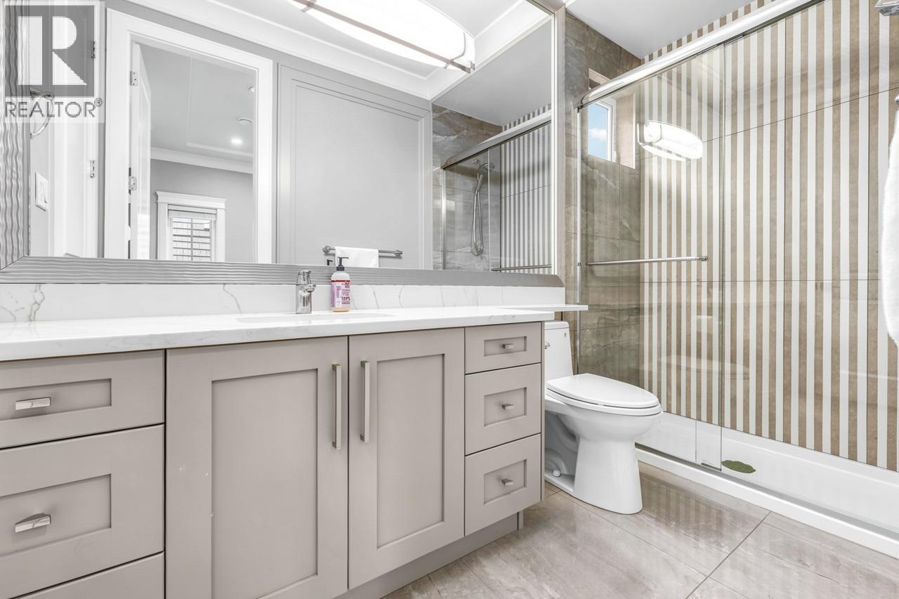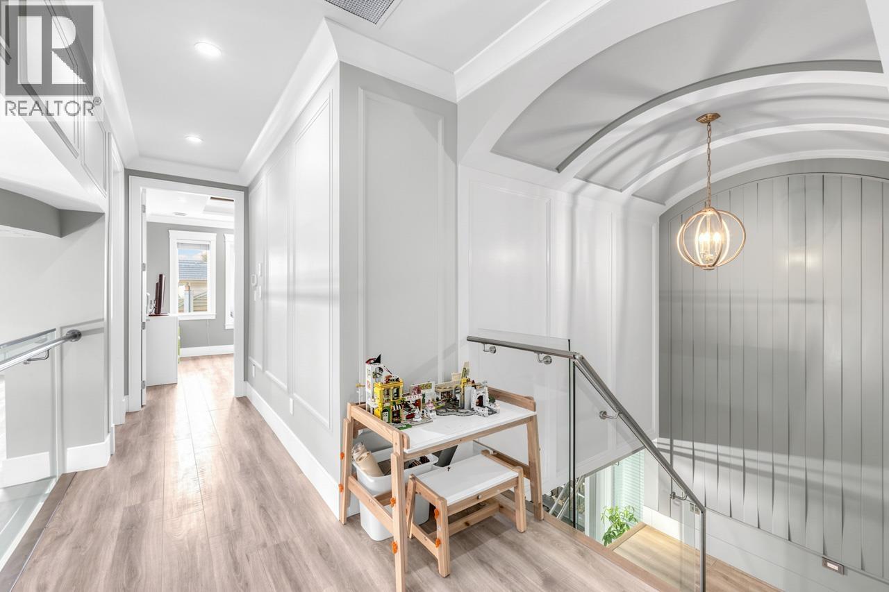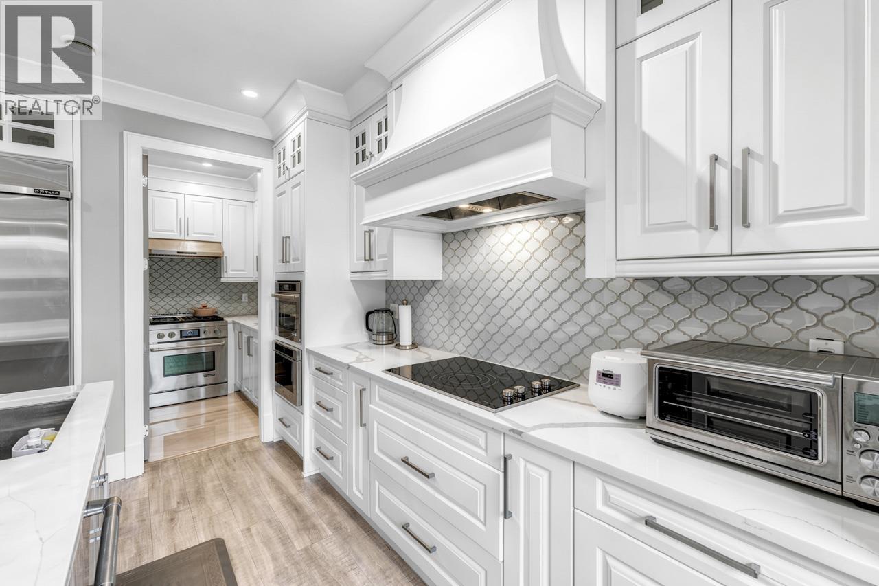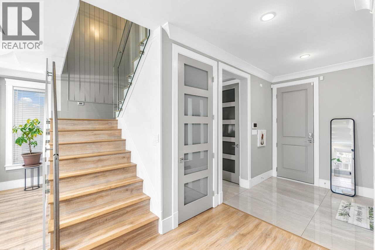 This meticulously crafted residence offers over 2,400sf of refined living space with 4 generously sized bedrooms & 3.5 elegant bathrooms, thoughtfully designed to max. comfort, function, & natural light, all complemented by a desirable south-facing backyard. The open-concept layout showcases soaring ceilings in the living & dining areas, creating a bright & expansive atmosphere ideal for both everyday living & sophisticated entertaining. Premium finishes are evident throughout, including top-tier Grohe, Kohler, & Toto fixtures, German-engineered laminate flooring, imported tilework, & luxurious granite & quartz countertops. The chef-inspired kitchen is equipped with a Pro Series Jen-Air s/s appliance package, featuring a built-in refrigerator & drawer microwave, seamlessly blending performance & style. Modern conveniences include radiant in-floor heating, AC, an HRV system, & a CCTV security camera system, offering year-round comfort & peace of mind. School catchment: Jessie Wowk Elem & Steveston-London 2ndary. (32407411)