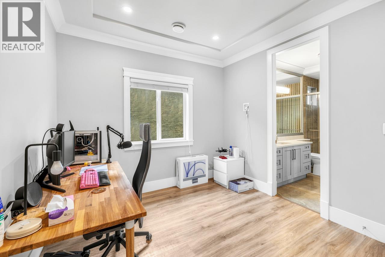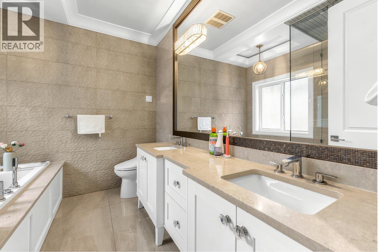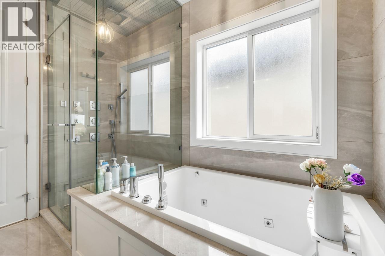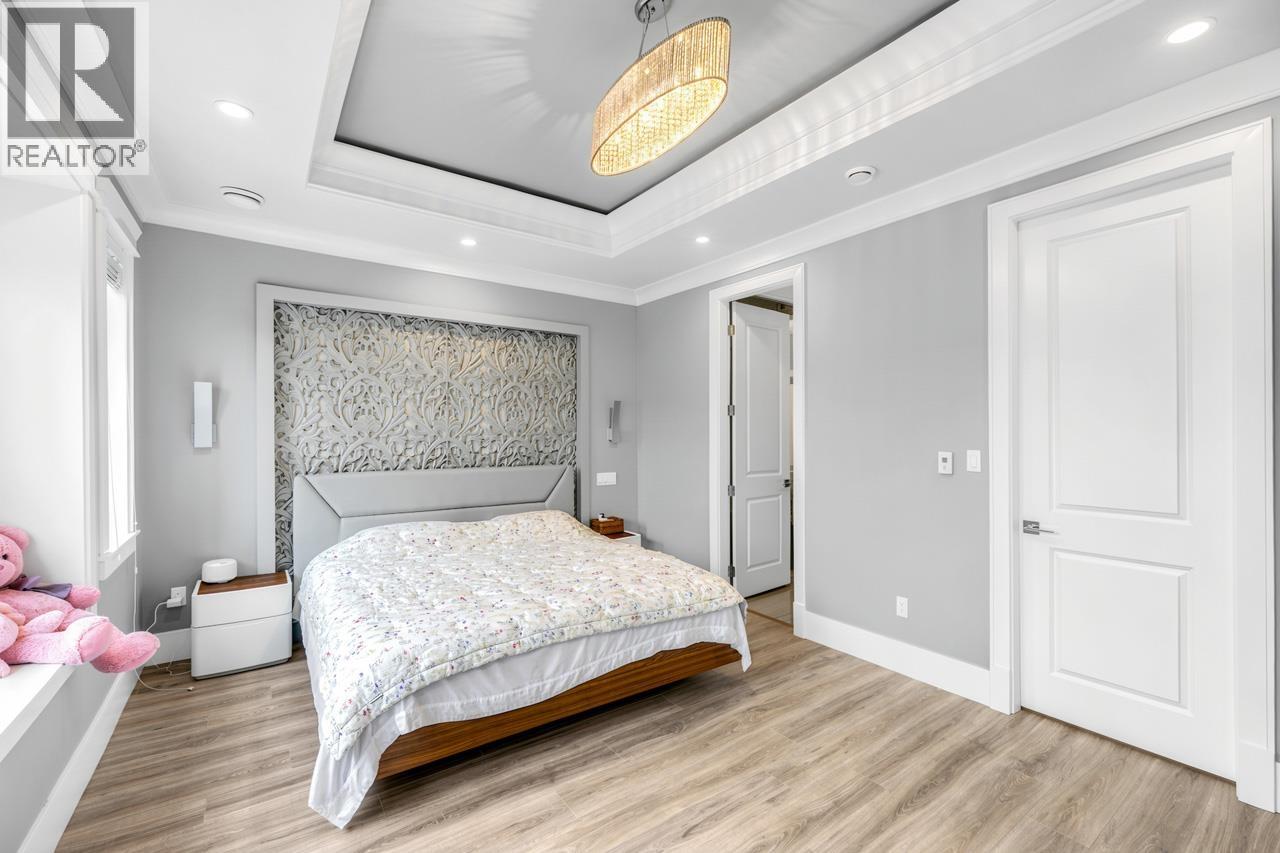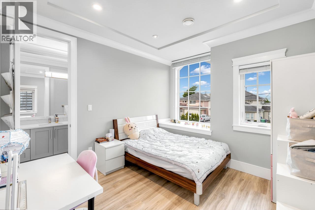 This meticulously crafted residence offers over 2,400sf of refined living space with 4 generously sized bedrooms & 3.5 elegant bathrooms, thoughtfully designed to max. comfort, function, & natural light, all complemented by a desirable south-facing backyard. The open-concept layout showcases soaring ceilings in the living & dining areas, creating a bright & expansive atmosphere ideal for both everyday living & sophisticated entertaining. Premium finishes are evident throughout, including top-tier Grohe, Kohler, & Toto fixtures, German-engineered laminate flooring, imported tilework, & luxurious granite & quartz countertops. The chef-inspired kitchen is equipped with a Pro Series Jen-Air s/s appliance package, featuring a built-in refrigerator & drawer microwave, seamlessly blending performance & style. Modern conveniences include radiant in-floor heating, AC, an HRV system, & a CCTV security camera system, offering year-round comfort & peace of mind. School catchment: Jessie Wowk Elem & Steveston-London 2ndary. (32407411)