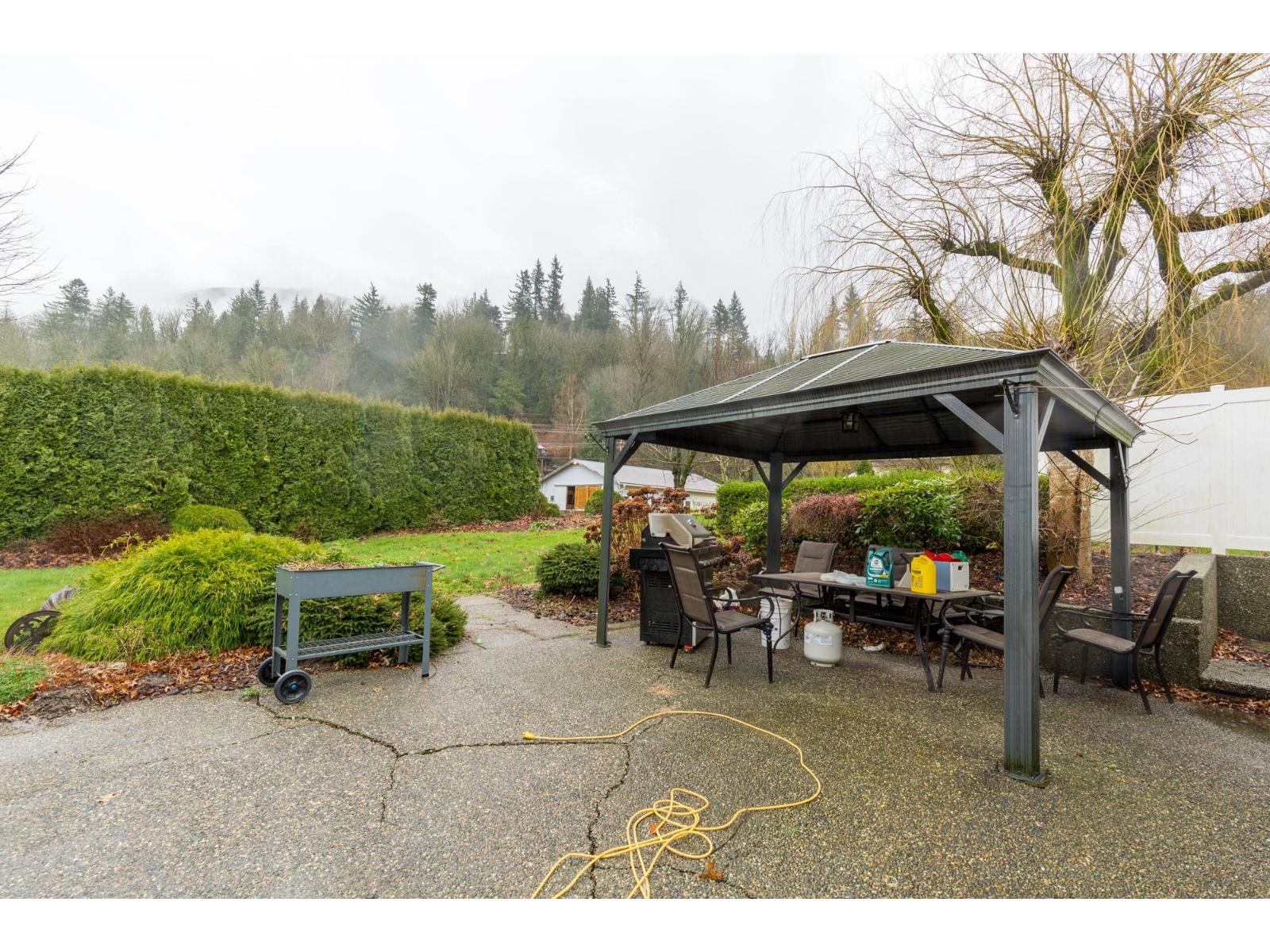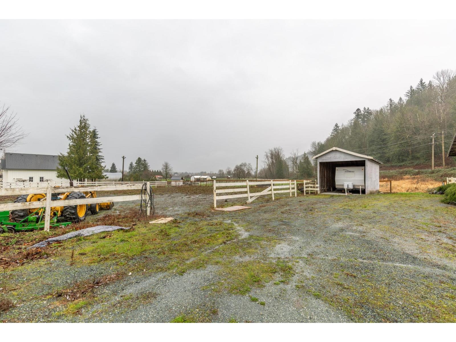 4.21 acres in the quiet community of Yarrow! This 5 bed / 3 bath 2,391 sq.ft. home offers a bright, open concept layout. The fully updated kitchen features quartz countertops, oversized island with bar fridge, soft close cabinetry, and new stainless steel appliances. The inviting living area includes a natural gas fireplace with built-ins, while the dining room opens to a large deck ideal for entertaining. Outdoor amenities include a covered patio, hot tub, and above ground pool. The basement has a separate entry, offering excellent in-law suite potential. 11'10 x 25'5 horse barn with six 12' x 11' box stalls, turnouts, floor mats, hay storage, and tack room, plus a 36' x 36' riding ring and fenced pasture. Separate business access driveway offers potential for a small boarding operation. (32406626)