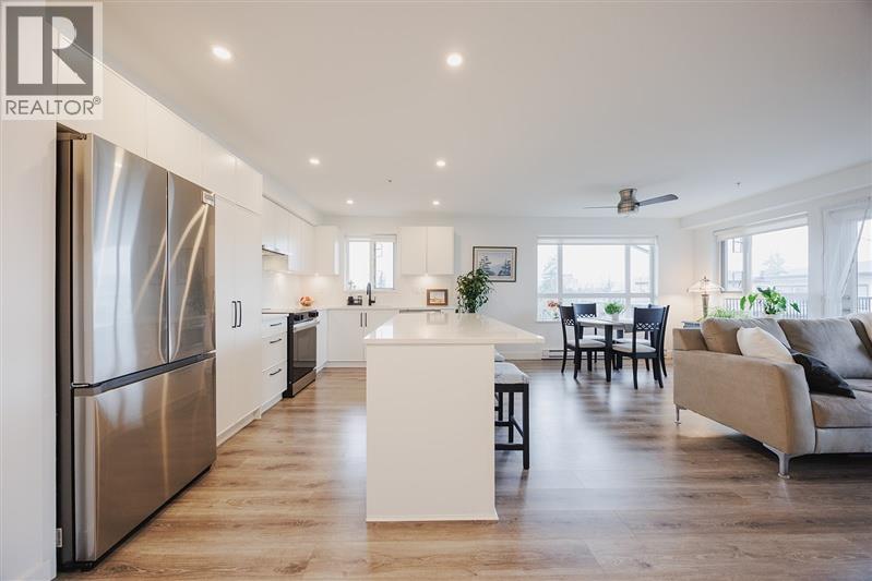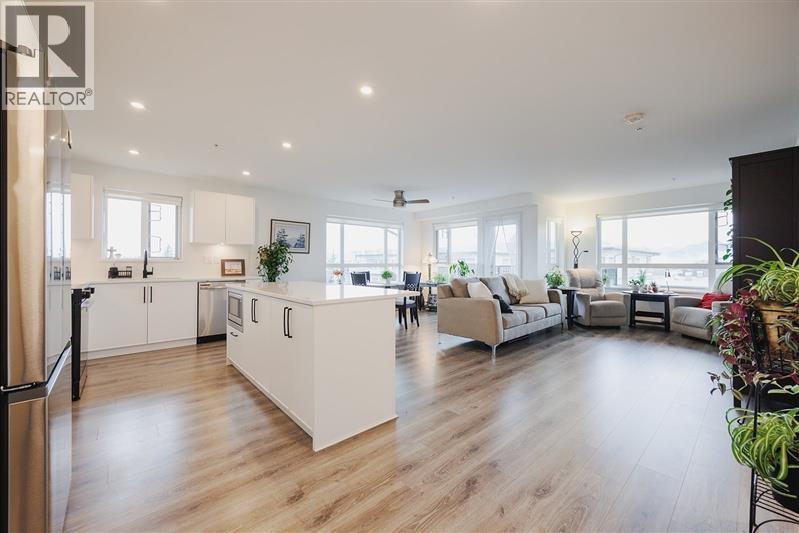 SIMPLY THE BEST! This top floor corner unit on the Northwest corner in "Edge 3" by Maclean Homes enjoys mountain views to the North and sunsets to the West. The unit is just over 1 year old, and in pristine condition with gleaming wood floors, white stone countertops and ample white shaker style cabinets. Large kitchen island ideal for entertaining and stainless appliances which complete the modern look. There's a large partially covered sundeck which makes a great extension to the living space to take in the stunning view of the Golden Ears mountains. Walking distance to the Leisure Centre, Trevor Linden Fitness, Shopping, Restaurants, and the new Eric Langton Elementary School. One designated parking stall and storage locker in the secure underground, and one pet permitted. (32407571)
