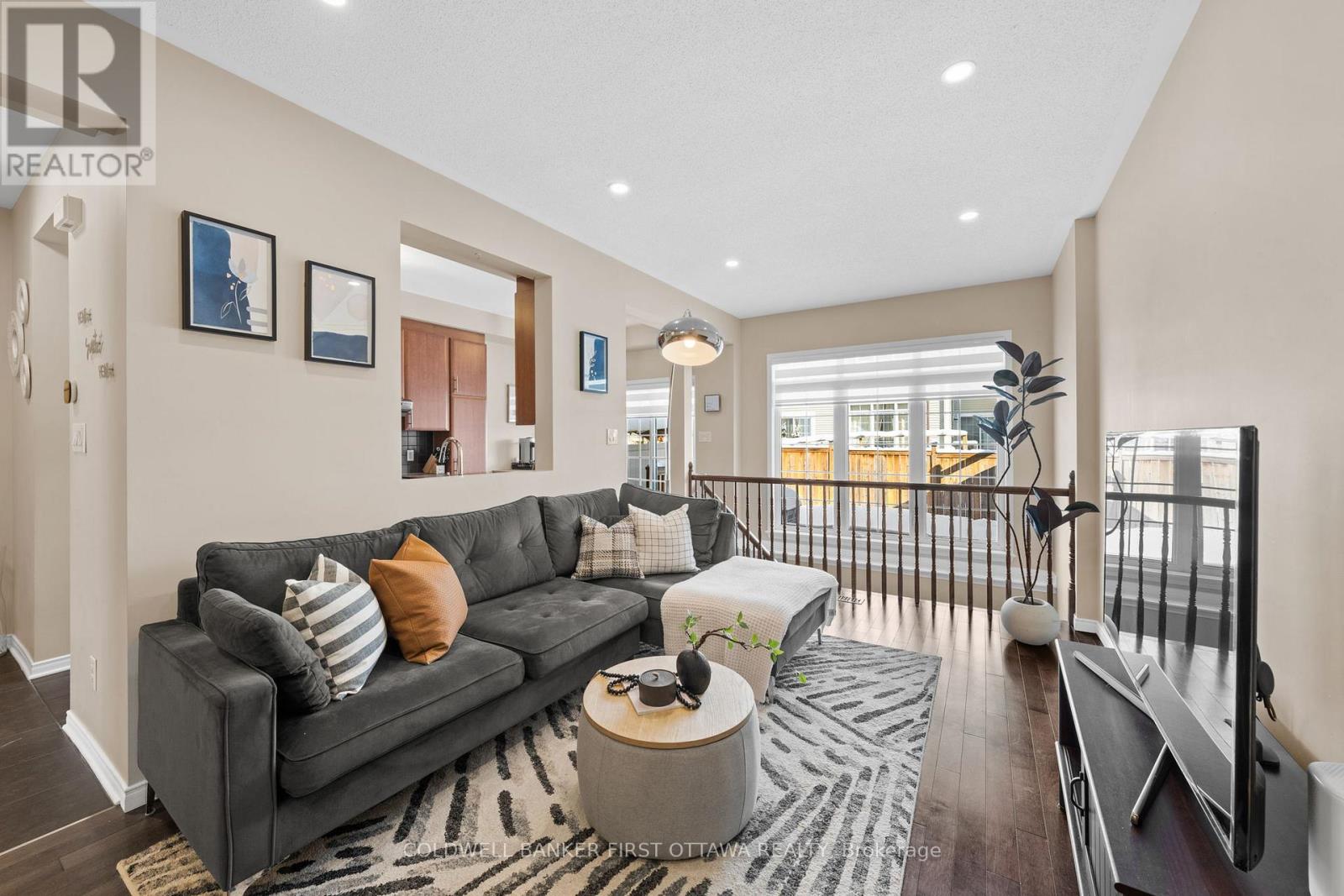 Beautifully maintained executive freehold townhome located in the highly sought-after Stonebridge community. This elegant 3-bedroom, 3-bathroom residence offers a thoughtfully designed layout complemented by a professionally finished builder's basement and abundant natural light throughout the home. The main level features a well-appointed kitchen with ample cabinetry and a convenient breakfast area, ideal for both everyday living and entertaining. The home showcases over 1,600 sq. ft. of intelligently designed living space, enhanced by 9-foot ceilings, a desirable rear southeast exposure, and excellent energy efficiency resulting in low utility costs. With no monthly condo fees, this property offers exceptional value and convenience. Situated on quiet, family-friendly streets surrounded by parks, walking trails, and expansive green space, the location is truly outstanding. Enjoy immediate proximity to St. Cecilia Elementary School (K-6) and the Minto Recreation Centre, offering a wide range of family-oriented programs, many at no cost. Residents also benefit from easy access to public transit, shopping, banking, medical offices, schools, recreational amenities, and a world-class golf course. Ideally positioned just 15 minutes from Ottawa International Airport and offering a seamless commute to downtown Ottawa, this turn-key home represents an exceptional opportunity in one of Stonebridge's most desirable enclaves. (42077178)