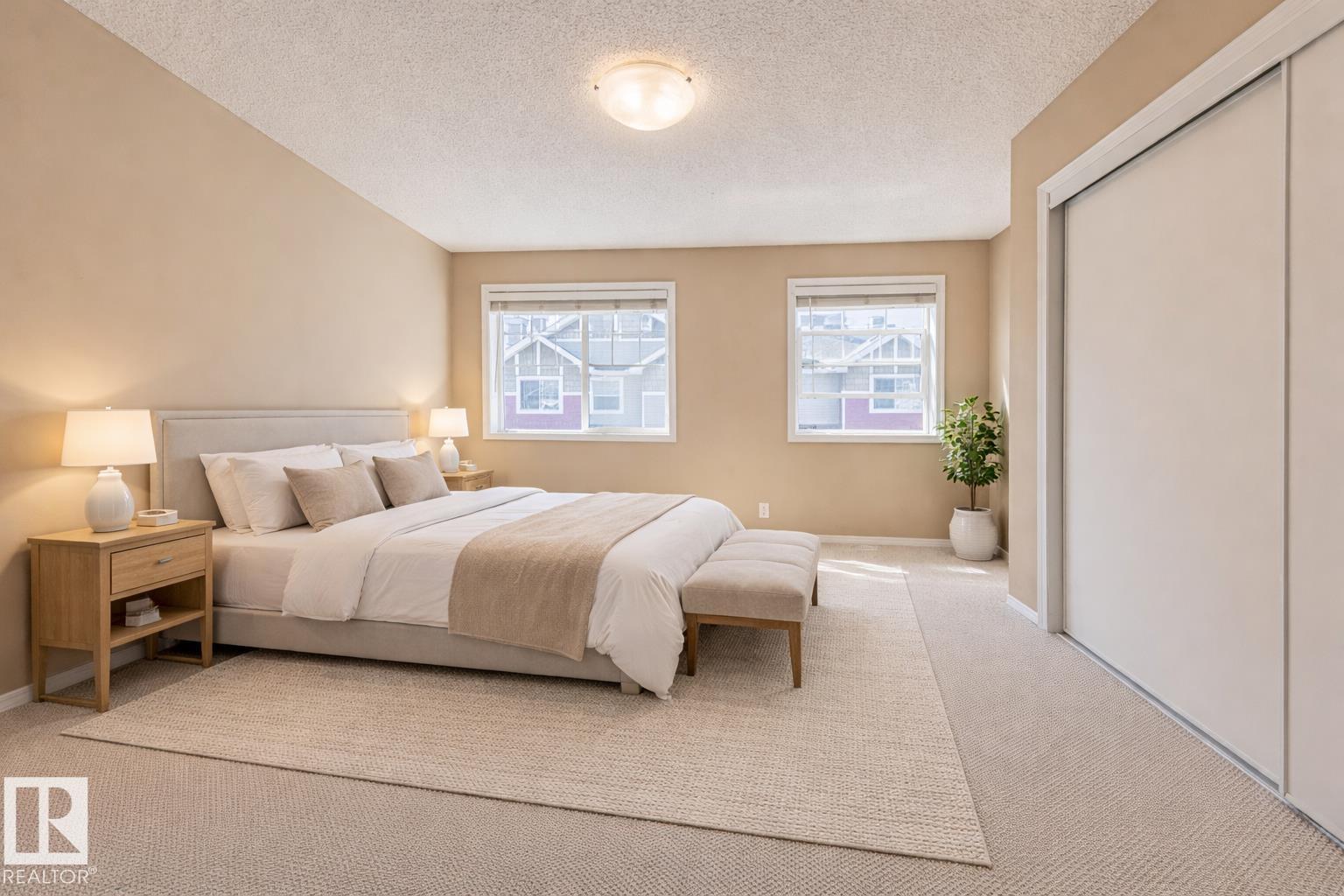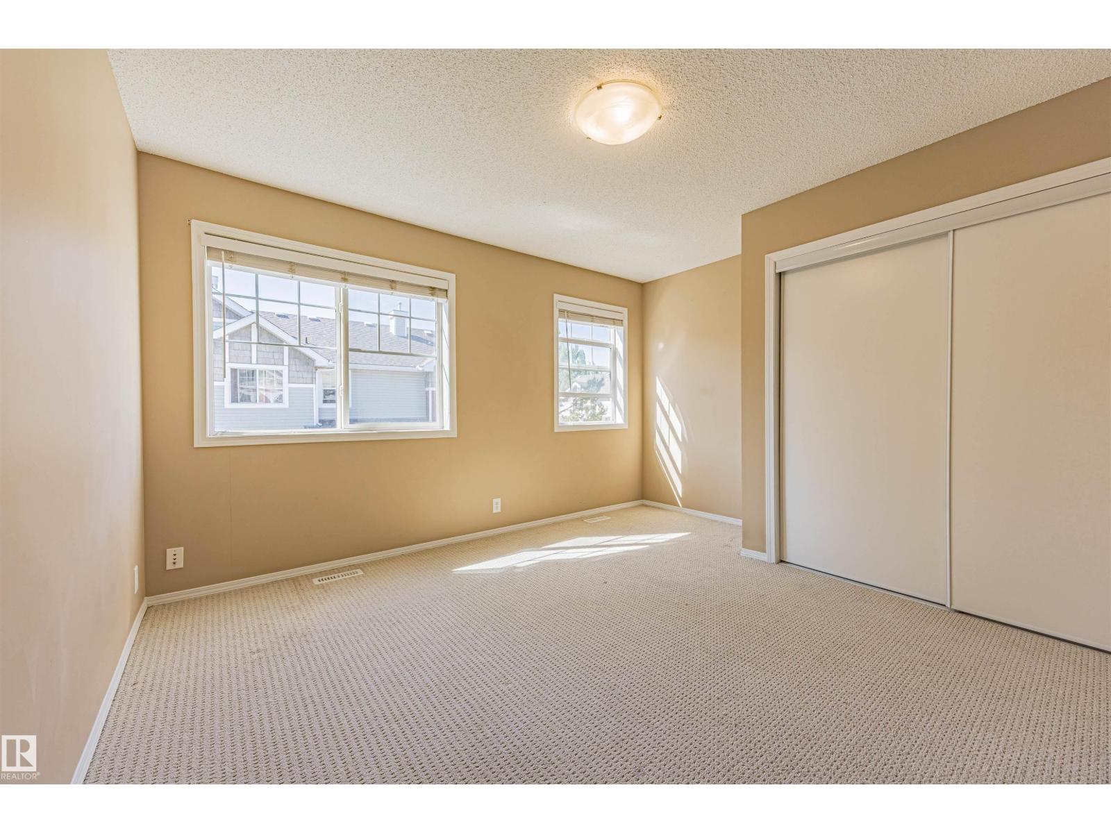 Why rent when you can own? This affordable, pet friendly townhouse offers the space, privacy, and stability renting simply can’t. This bright & inviting 2-storey townhouse features open-concept main floor design w/ spacious kitchen featuring peninsula, ample cabinetry & generous counter space. The dining area & living room flow seamlessly together, enhanced by rich hardwood flooring & large windows. Convenient 2-piece bath completes the main level. Upper level is home to two large primary bedrooms, perfect for those who prefer larger rooms (over 3 small ones). Fenced front yard w/ charming front porch, gas hookup & space for patio furniture—ideal for relaxing or entertaining! This property is ideally located near Costco, River Cree, the future LRT station & several schools. Low condo fees of $320.91/month & taxes of $2,146.66/year make this an excellent option for first-time home buyers & investors at this new LOW price! *Some photos virtually staged* (33793819)