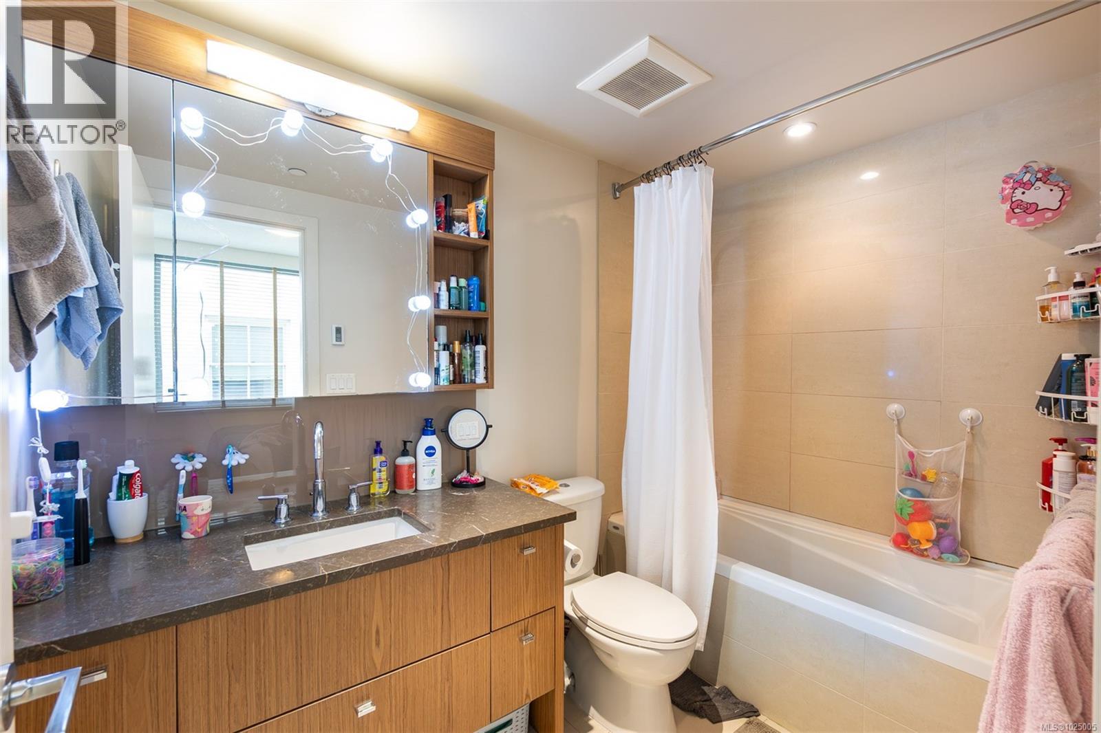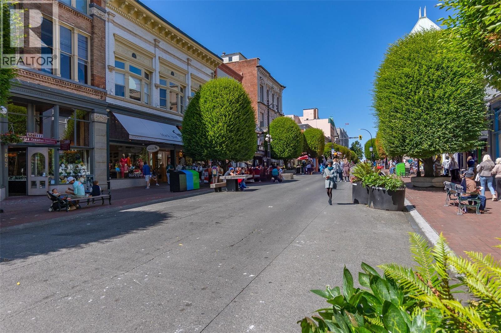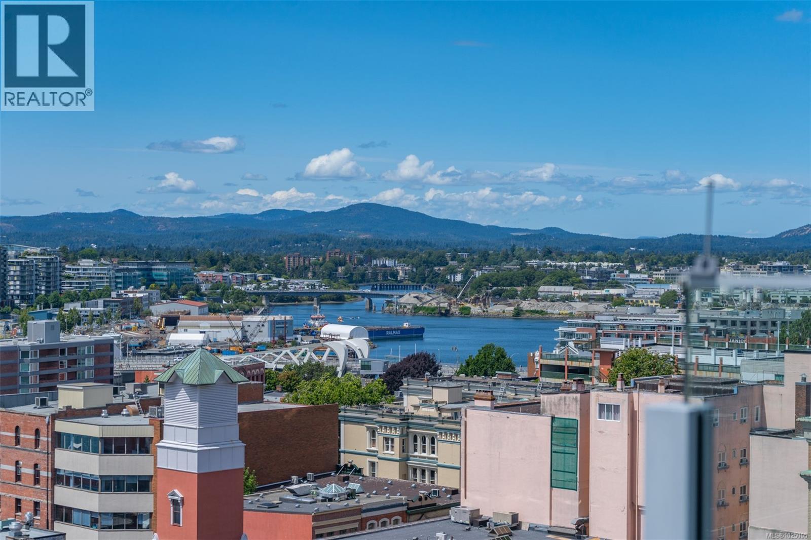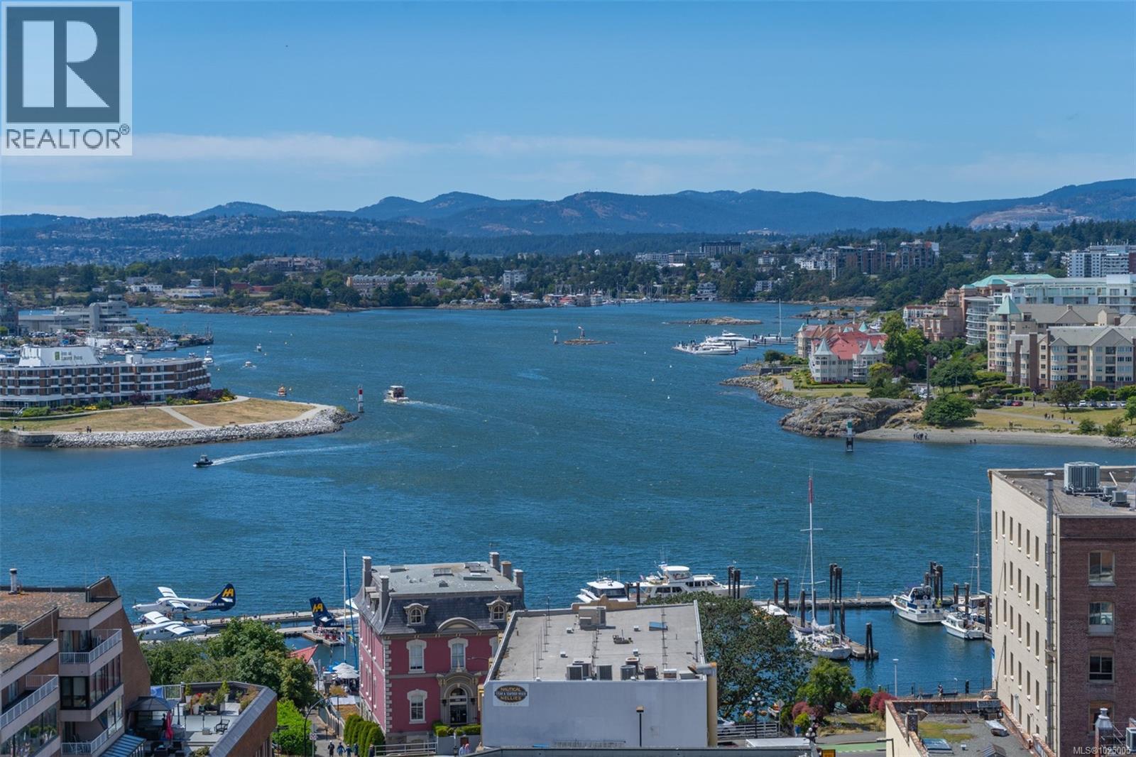 Enjoy city, mountain, and harbour views from this beautifully appointed 2-bedroom, 2-bathroom condo in the prestigious Sovereign, ideally located in the heart of downtown Victoria. Offering nearly 1,000 sq ft of refined living space, this home combines luxury, functionality, and unbeatable walkability—just steps from the Inner Harbour, shops, restaurants, and cultural landmarks. The bright, open-concept layout includes a covered balcony and office nook, while the gourmet kitchen features high-end stainless steel appliances including a gas range, stone countertops, a peninsula with seating for four, full-height cabinetry, and a spacious pantry. The generous primary suite boasts a walk-in closet and a 4 piece ensuite with heated floors and soaker tub. A second full bathroom offers a large walk-in shower, and comfort is assured year-round with energy-efficient air conditioning and perimeter hot water radiant heat. Residents enjoy premium amenities, including a fully furnished guest suite and an impressive 12th-floor rooftop terrace complete with heaters, a gas barbecue, fireplace, and ample seating to take in the panoramic harbour views. Additional features include one secure underground parking stall, a storage locker, secure bike storage, and utilities such as heat, A/C, hot water, and natural gas all included. Pets are welcome. Don’t miss this rare opportunity—book your private viewing today! (30346715)