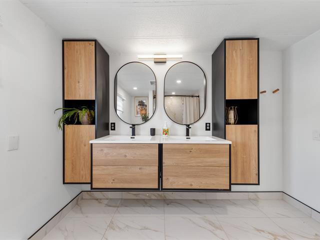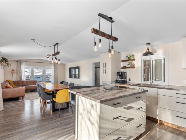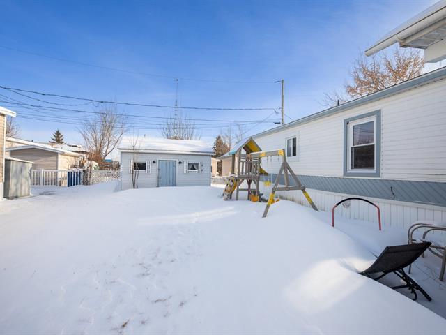 Chaleureuse et lumineuse, cette maison mobile sise sur un coin de rue sans voisin à sa gauche, vous offre 3 chambres à coucher, idéale pour la vie de famille ou le télétravail. La cuisine conviviale avec îlot se partage une aire ouverte avec la salle à manger et le salon, parfait pour les moments partagés en famille et entre amis. Vous serez aussi charmé par son coin feu accueillant à l'extérieur, parfait pour se détendre tout en profitant d'une vue imprenable sur le coucher de soleil. *** Une propriété où confort et douceur de vivre se rencontrent. (52045527)